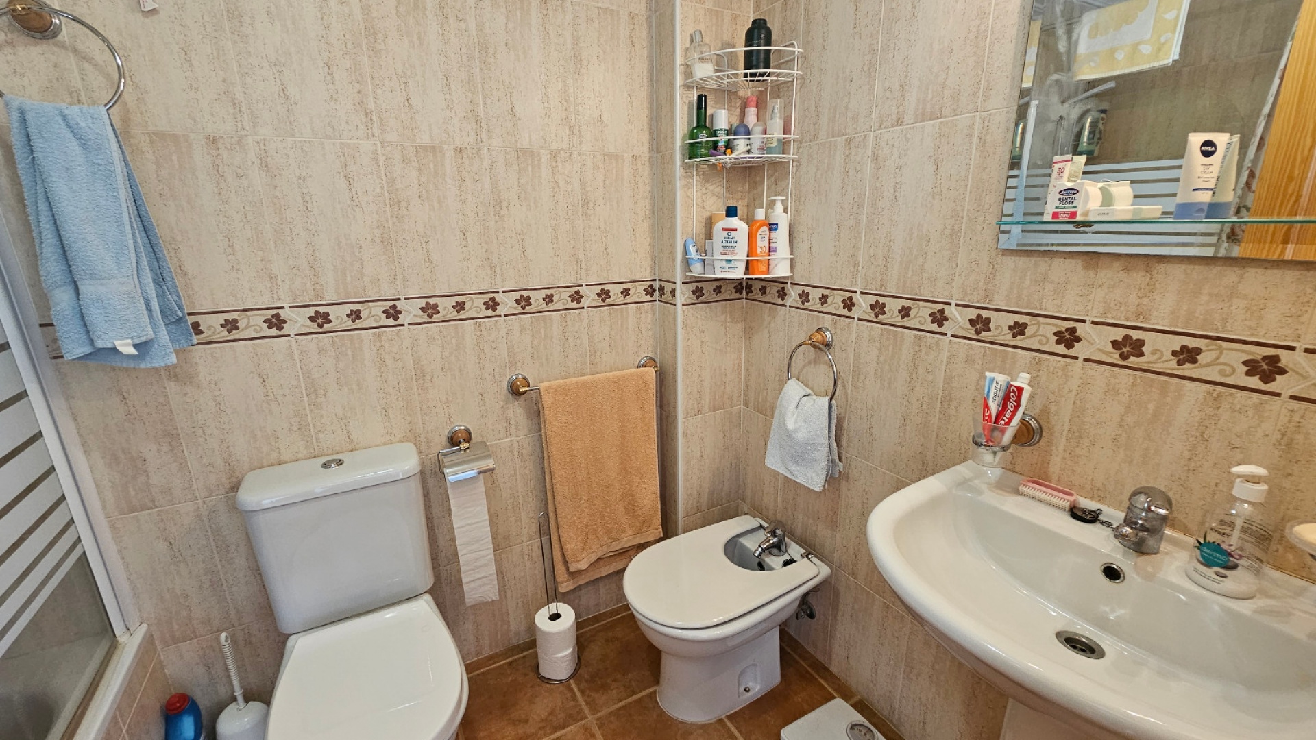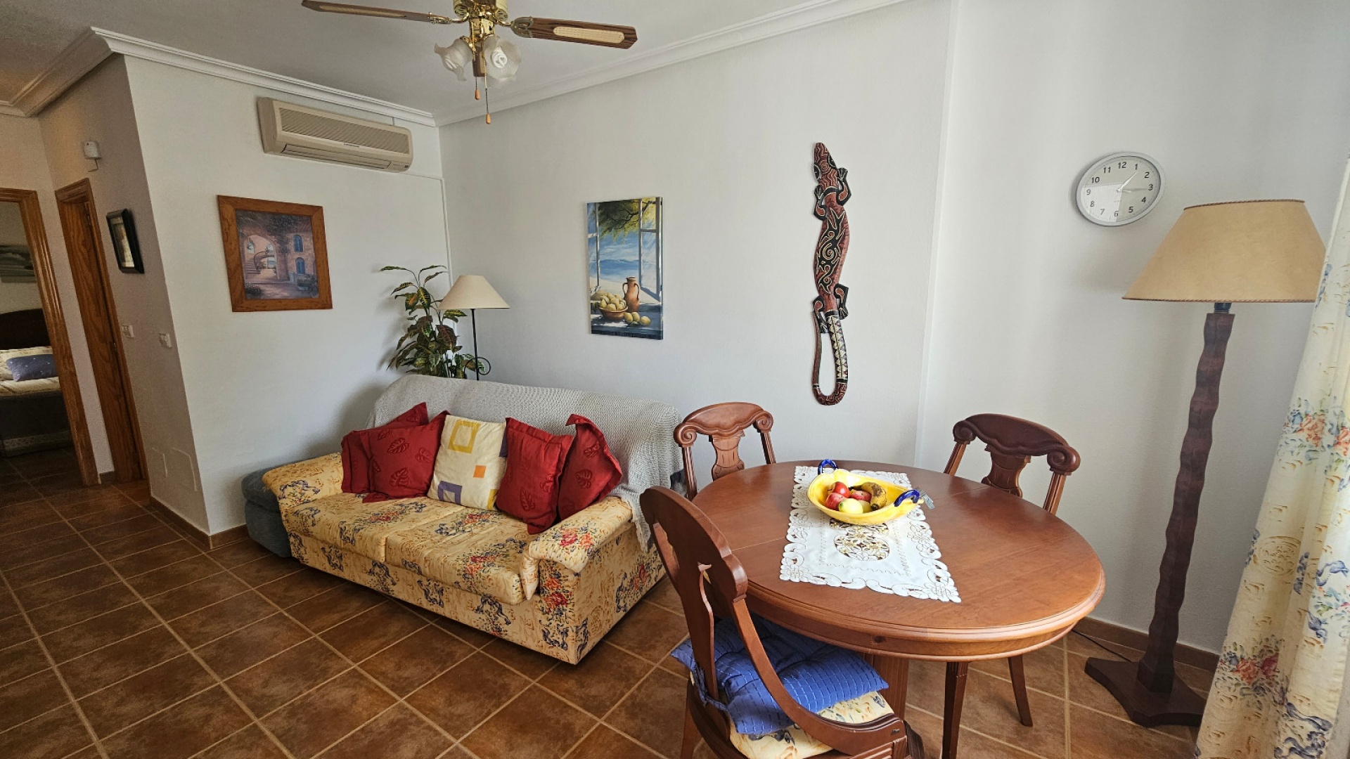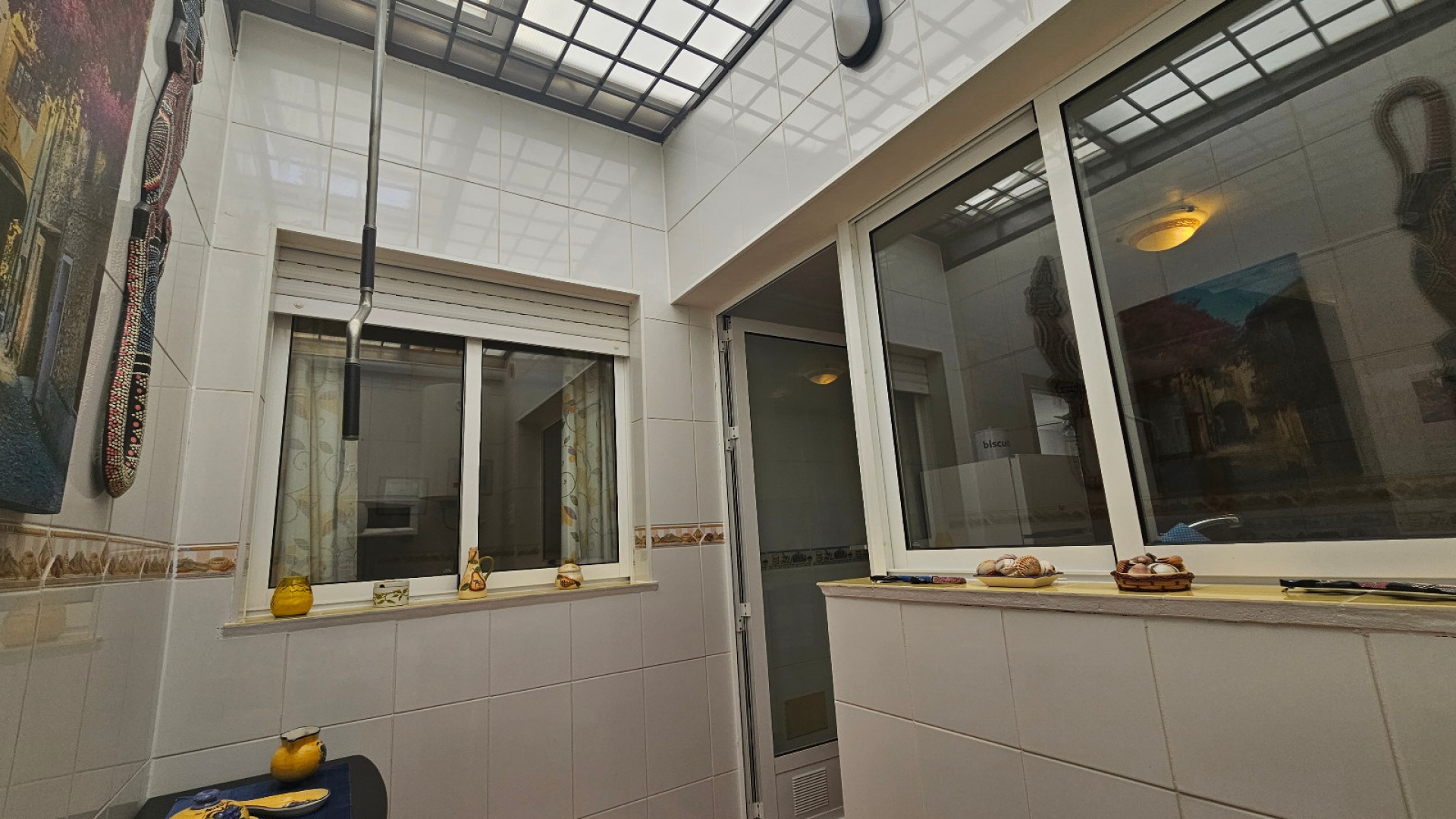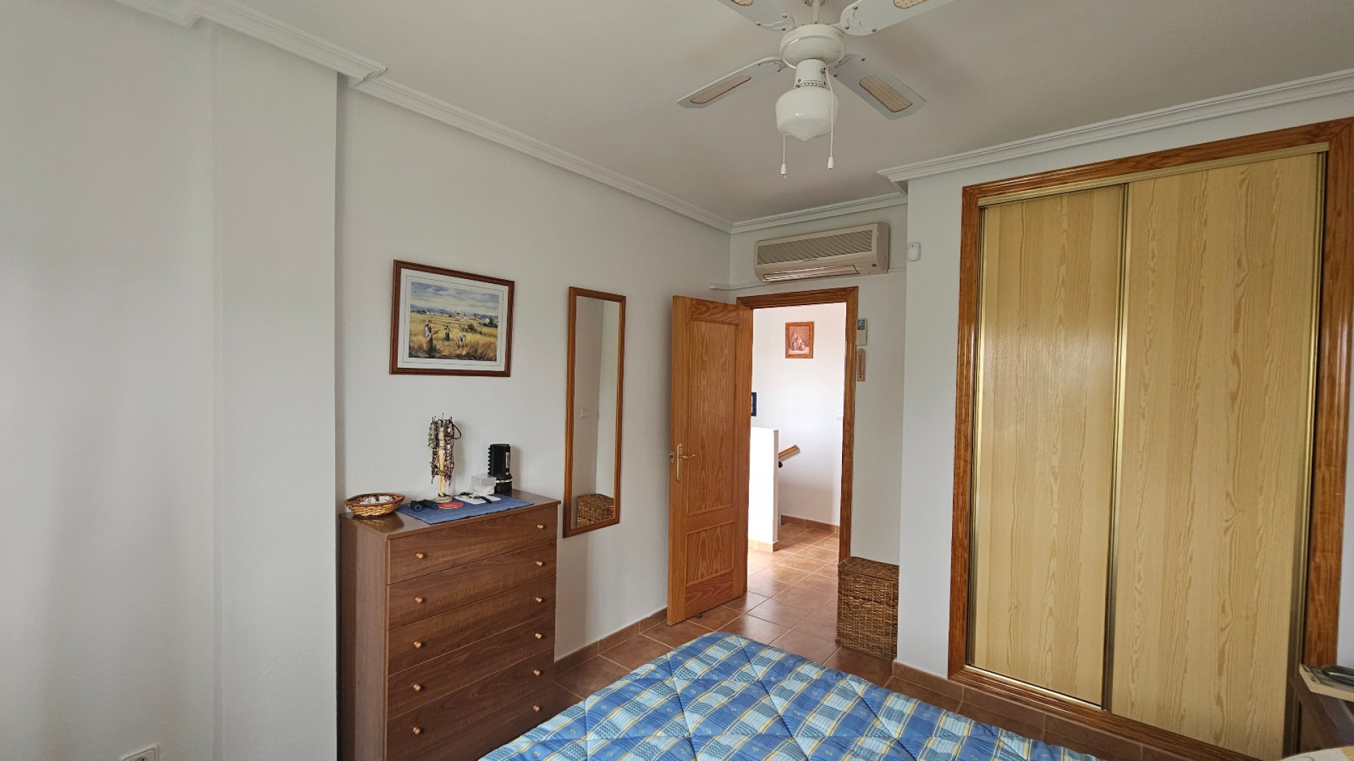Ett radhus med 3 sovrum och 2 badrum i sydvästläge med garage och ett stort förråd, beläget i Laderas del Sol, Los Altos, södra Costa Blanca. Denna härliga, rymliga fastighet bjuds ut till försäljning i mycket gott skick, möblerad och består mycket kortfattat av följande: - På bottenvåningen finns ett stort vardagsrum/matrum med bäddsoffa, varm och kall luftkonditionering och en takfläkt , ett separat fullt utrustat nytt kök med ett separat täckt bruksområde och 1 x stort dubbelrum med varm och kall A/C. Det finns också ett duschrum på bottenvåningen. På första våningen finns 2 x dubbelrum som båda har varm och kall A/C och ett med en inbyggd garderob och en takfläkt och ett med en stor klädkammare/förråd. Det finns också ett stort familjebadrum på första våningen och en balkong med öppen utsikt. Fastigheten har en täckt terrass på framsidan med öppen utsikt och en solmarkis, en liten trädgård på framsidan och en 13m2 underjordisk parkeringsplats med ett 10m2 låsbart förråd. Du kan också parkera på den stora off-road kommunala parkeringen. Det ligger på en säker gated community med en vacker gemensam pool och trädgård. Denna vackra fastighet är mycket väl presenterad, ett superhus till ett mycket bra pris. Denna fastighet ligger mindre än 4 km från stränderna Playa Flamenca och Punta Prima och cirka 50 minuters bilresa till Alicantes flygplats. Lokala restauranger, barer, butiker, stormarknader och den lokala busshållplatsen ligger alla inom gångavstånd. * Alla möbler eller elektriska föremål (inklusive luftkonditioneringsenheter) som ingår i rean säljs som begagnade föremål utan garanti. All information ges endast som vägledning *