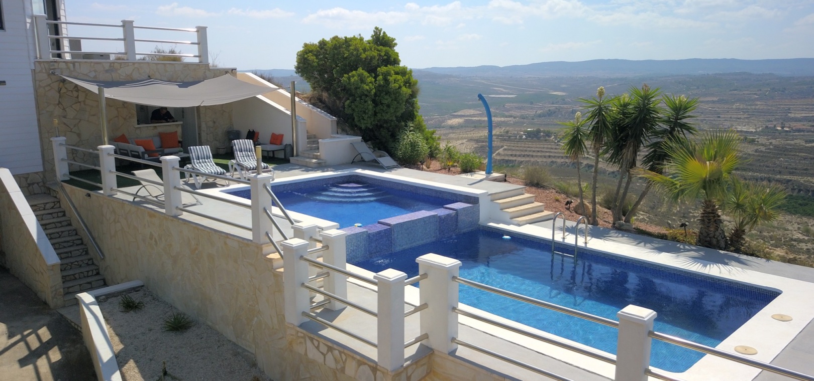 Denna unika och fantastiska, sydostvända, lantliga fastighet med tre sovrum + två sovrum Casita, i Torremendo ligger på det mest prestigefyllda läget och erbjuder fantastisk utsikt över den fantastiska landsbygden och det stora omgivningen. Endast 4 kilometer från närmaste butiker och bekvämligheter, nära den välkända staden San Miguel de Salinas. Huvudvillan består av ett separat fullt utrustat kök, mycket modernt och elegant; rymligt och lyxigt vardagsrum/matsal med välvt tak och dubbla dörrar ut till terrassen, där det finns de fantastiska vyerna; tre dubbelrum, master med klädkammare och badrum; förråd; ett familjebadrum; och en garderob. Poolen är en sommarlyx, delvis oändlig med bar, grillplats och naturligtvis 360·-vyerna! Casita består av ytterligare ett kök; vardagsrum; två sovrum; och ett badrum. Extra till huvudegendomen är att inkludera luftkonditionering i sovrummet, centralvärme, takfläktar, uppdaterad septiktank enligt de senaste reglerna, elnät och mer... Helt enkelt fantastiskt!!!