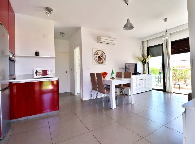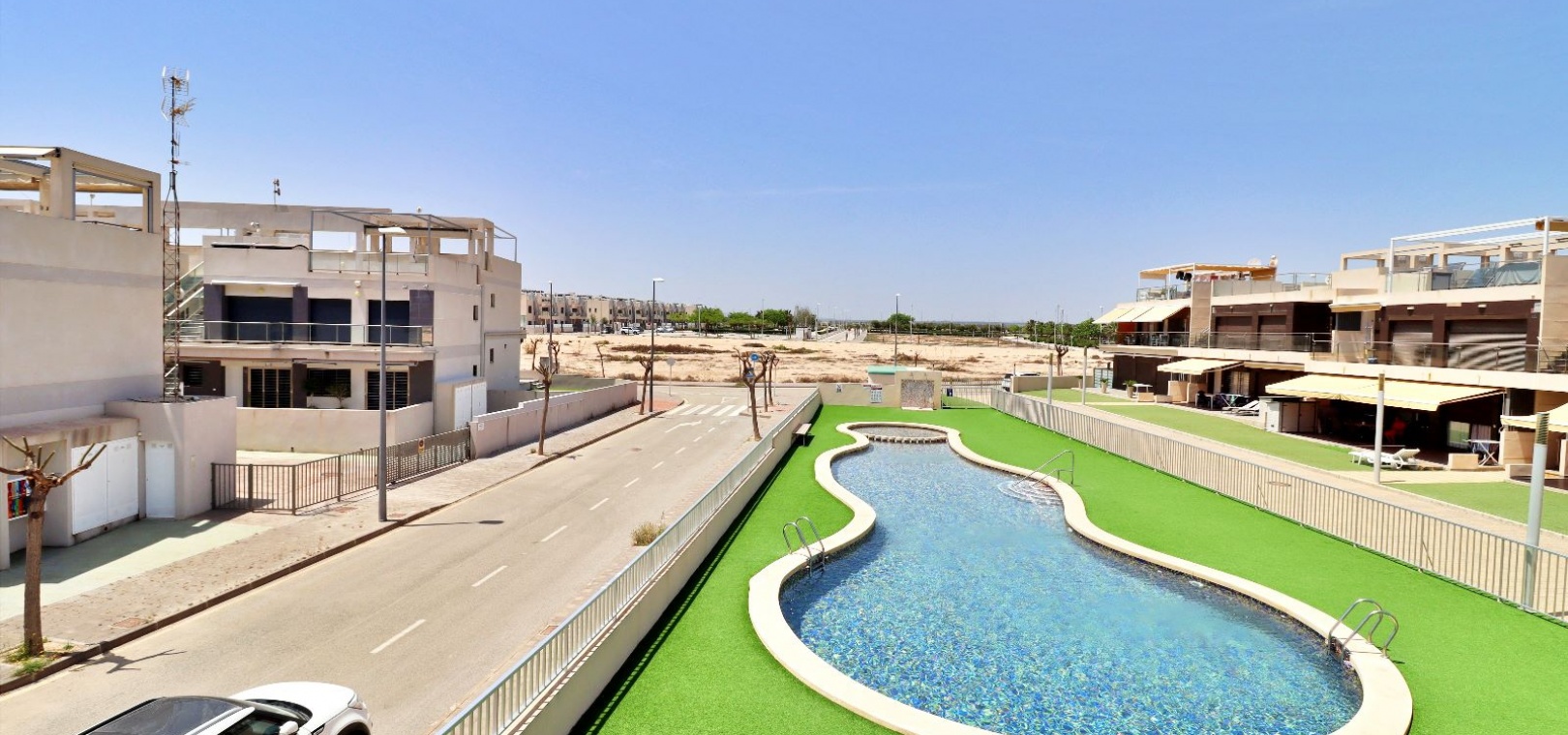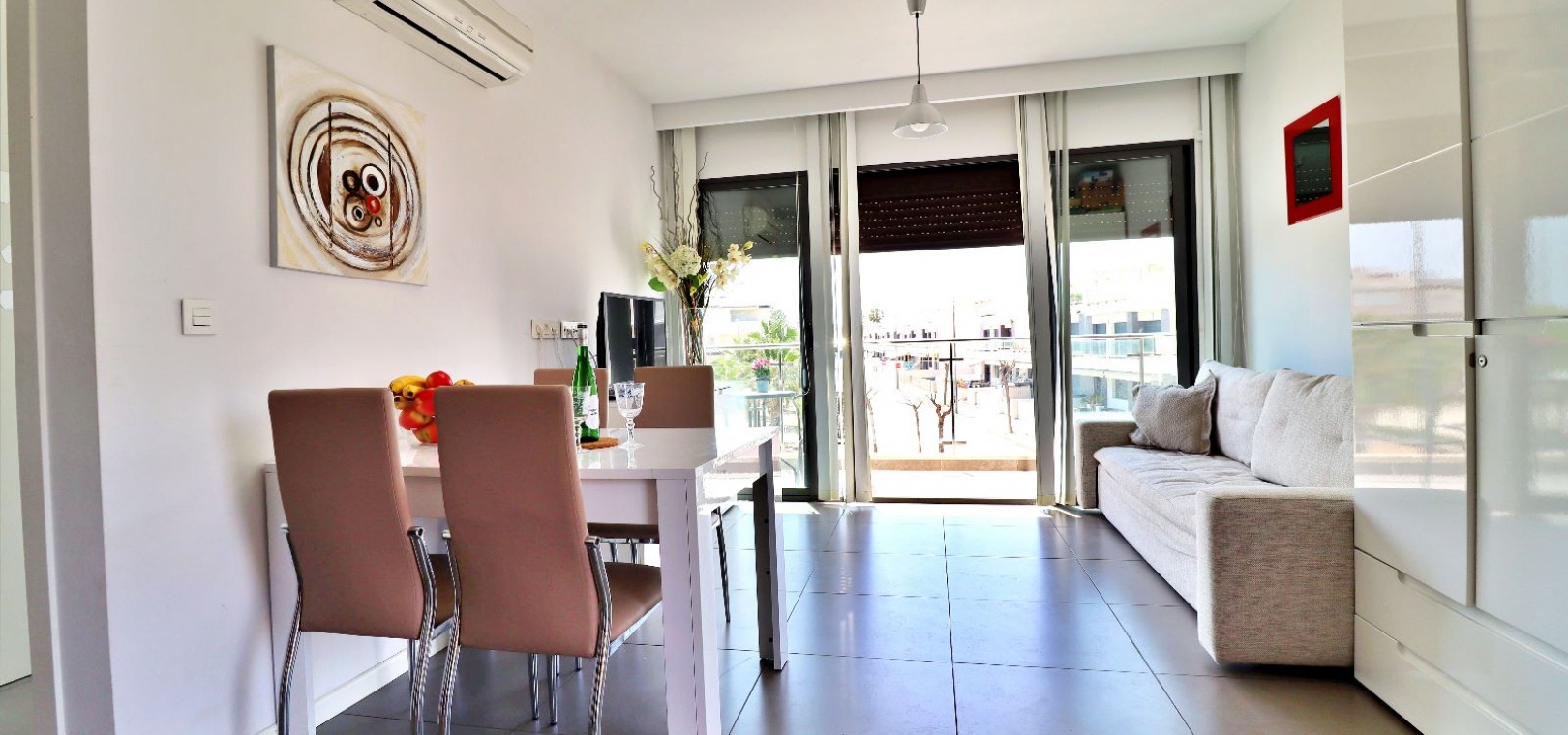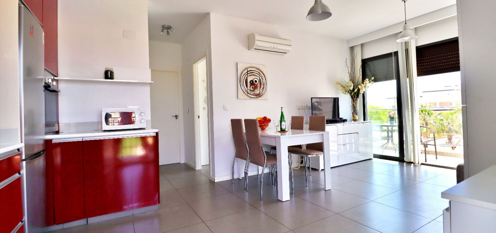 Det finns en ljus och luftig solstol/matsal med varm och kall luftkonditionering, fullt utrustat kök med öppen planlösning, 2 dubbelrum med inbyggda garderober, 1 x duschrum, balkong, stort privat takterrass, gemensam pool och trädgårdar, barnrum park och mycket mer.