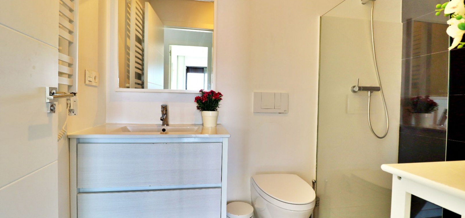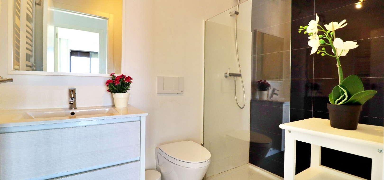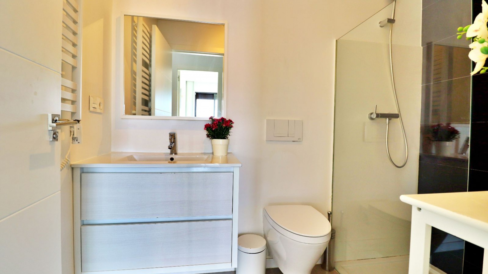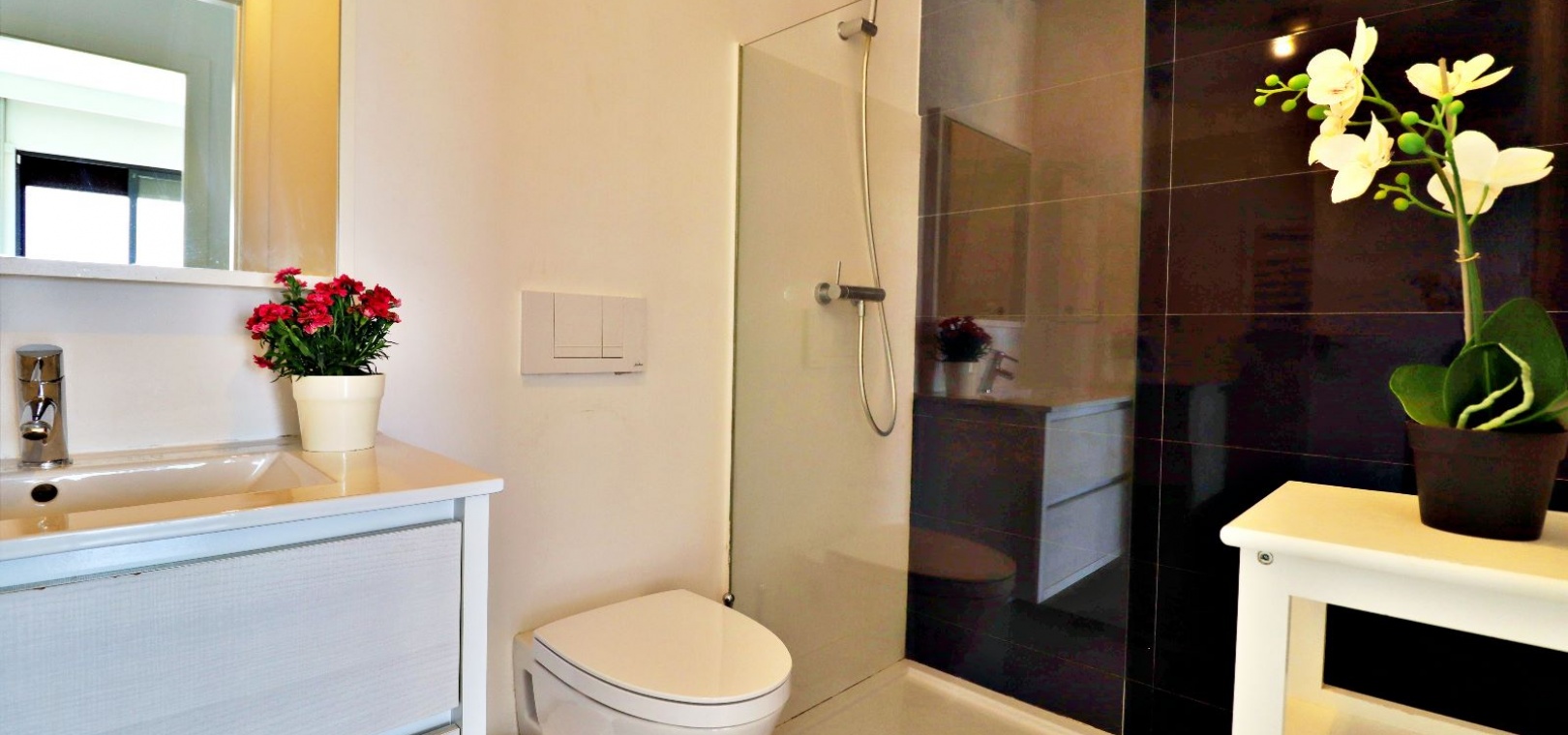 Det finns en ljus och luftig solstol/matsal med varm och kall luftkonditionering, fullt utrustat kök med öppen planlösning, 2 dubbelrum med inbyggda garderober, 1 x duschrum, balkong, stort privat takterrass, gemensam pool och trädgårdar, barnrum park och mycket mer.