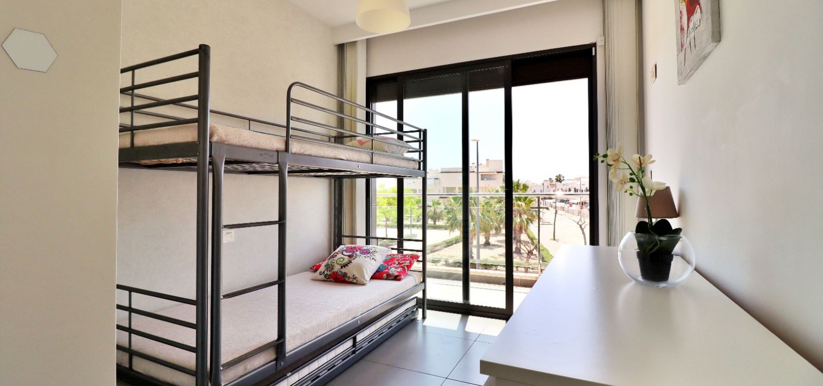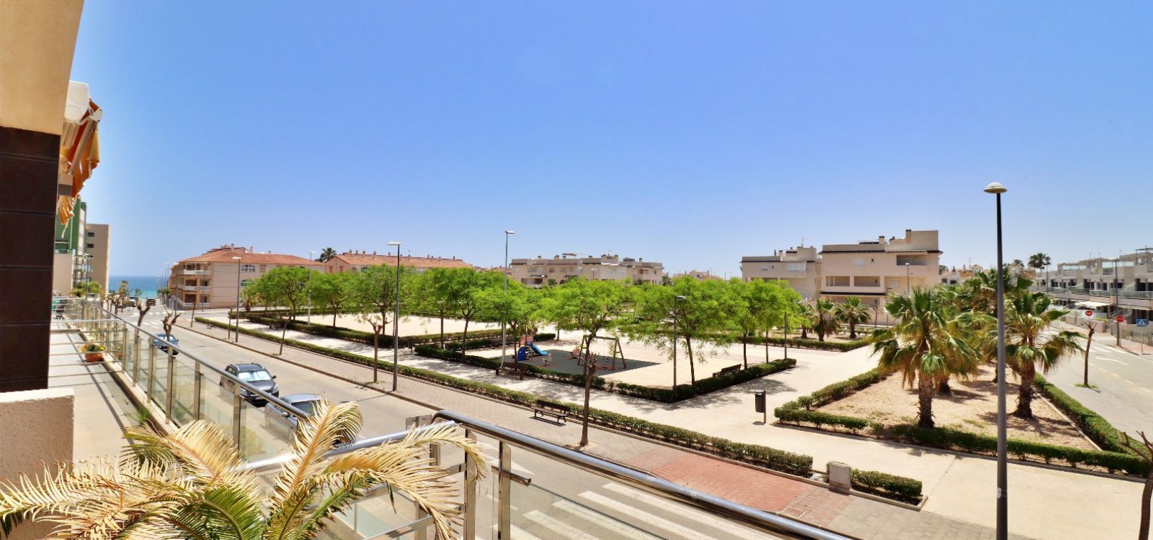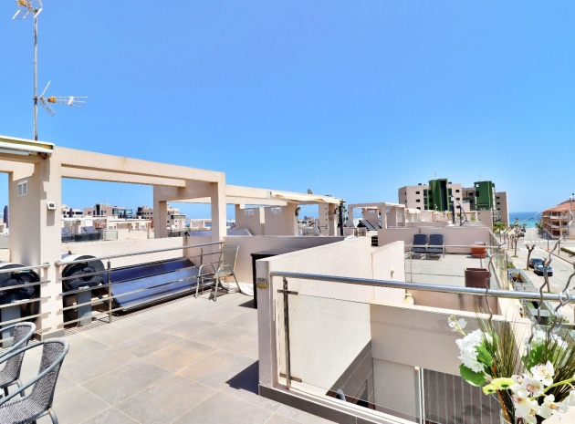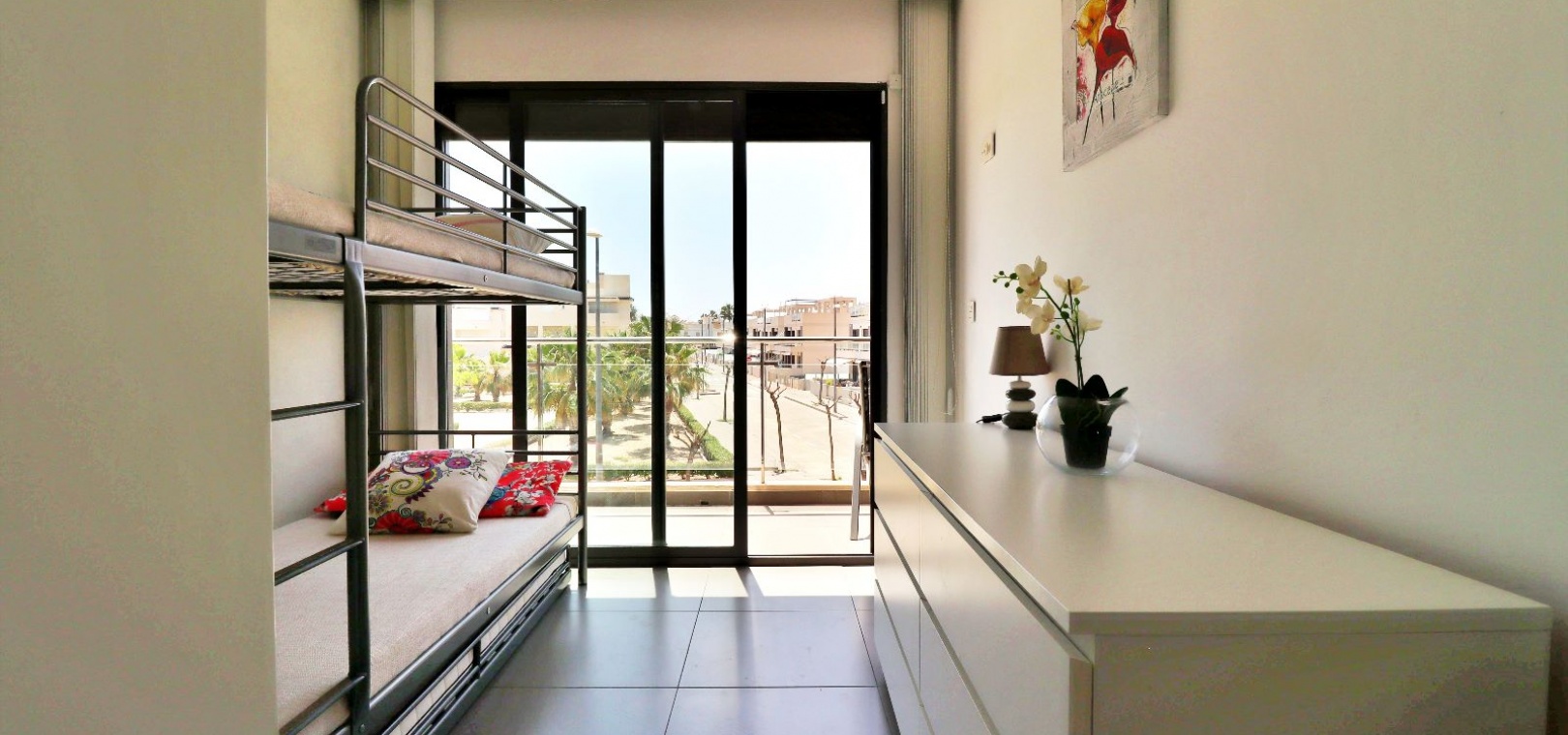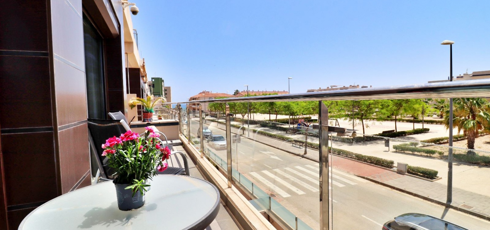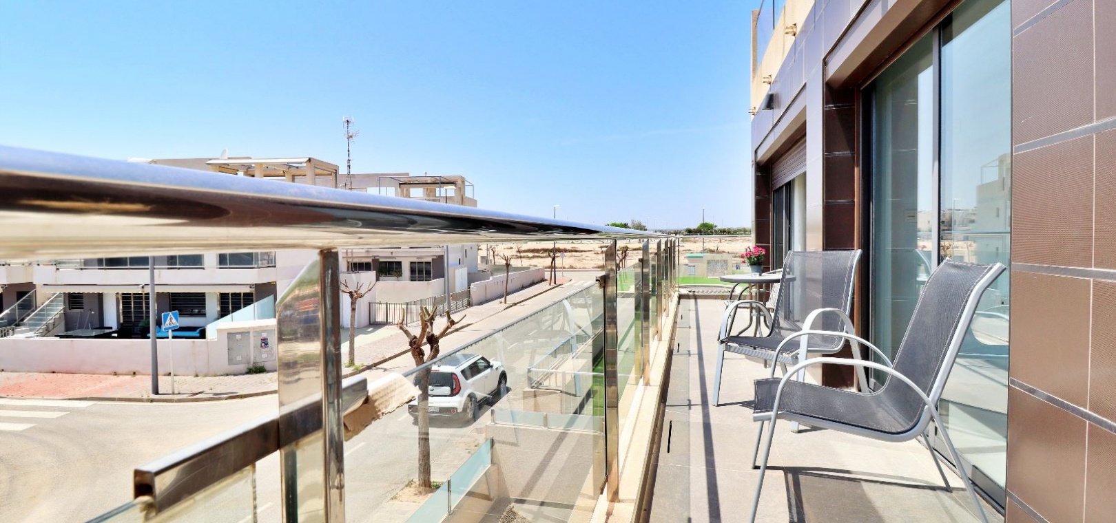 En ultramodern lägenhet med 2 sovrum och 1 badrum i söderläge på översta våningen med ett privat takterrass vid stranden Mil Palmeras, Costa Blanca.
