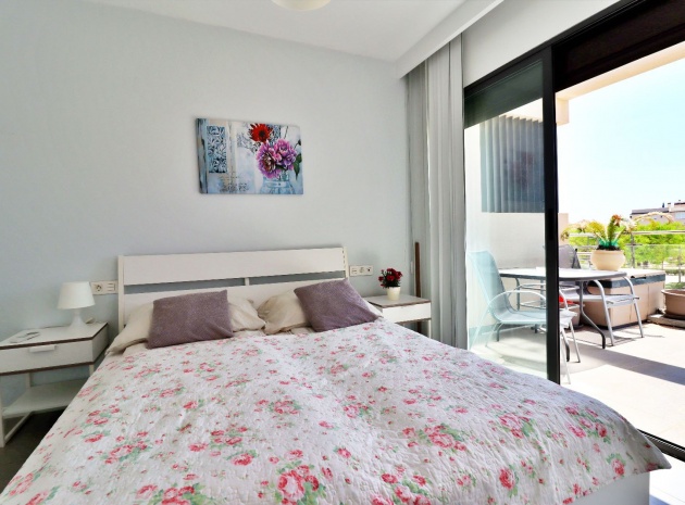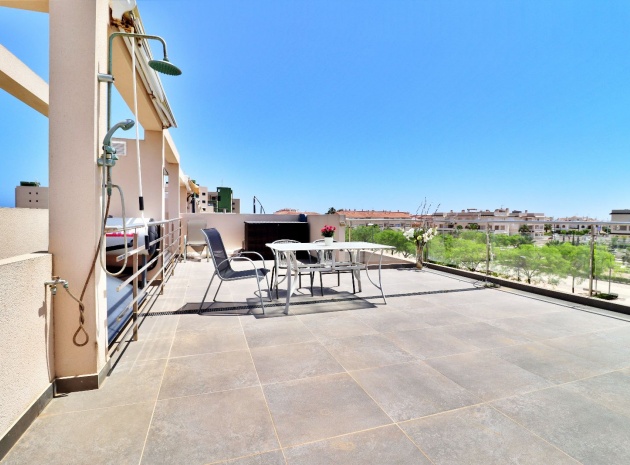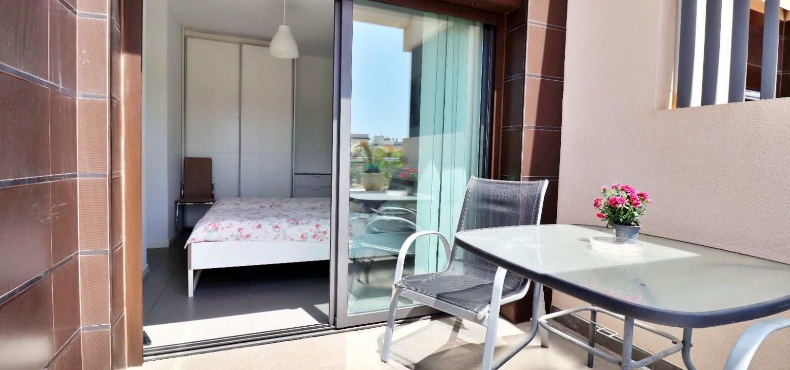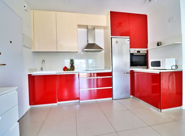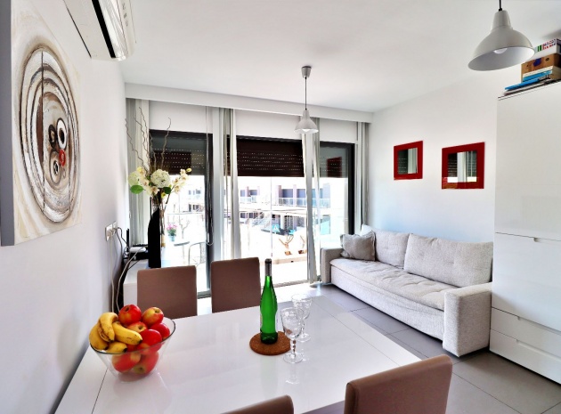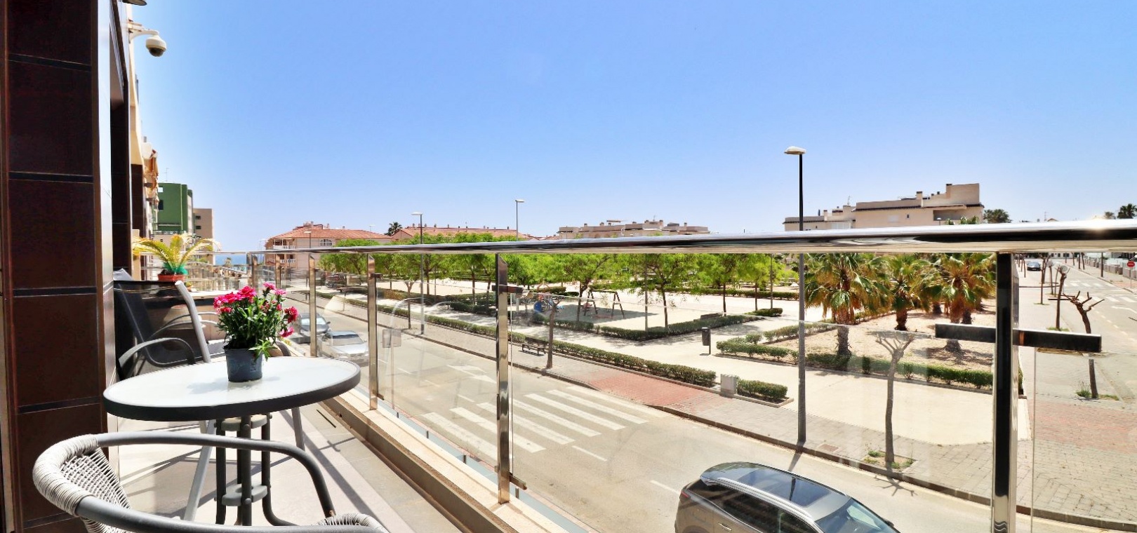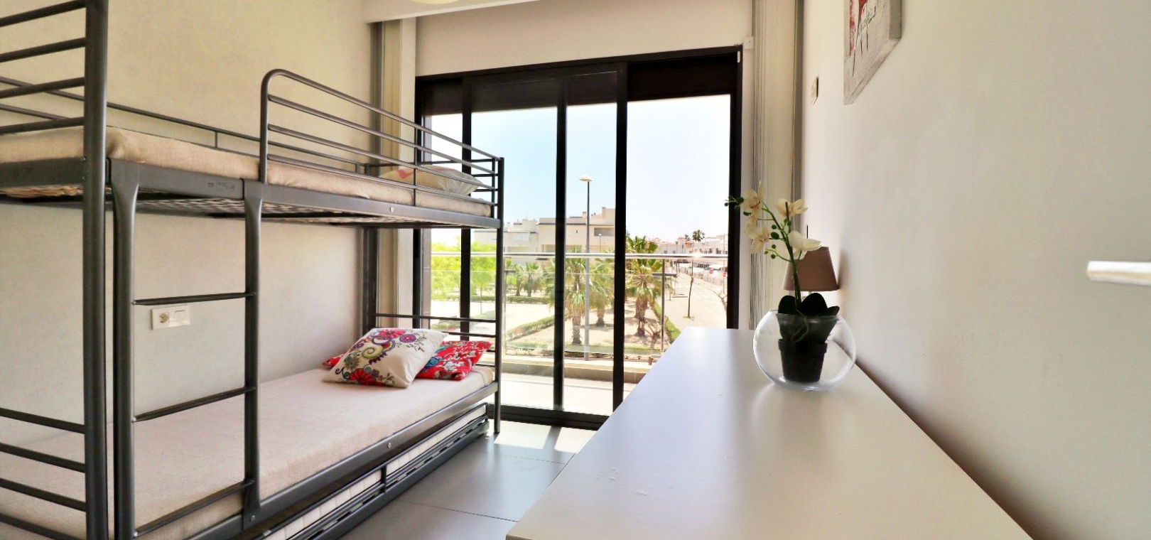 En ultramodern lägenhet med 2 sovrum och 1 badrum i söderläge på översta våningen med ett privat takterrass vid stranden Mil Palmeras, Costa Blanca.