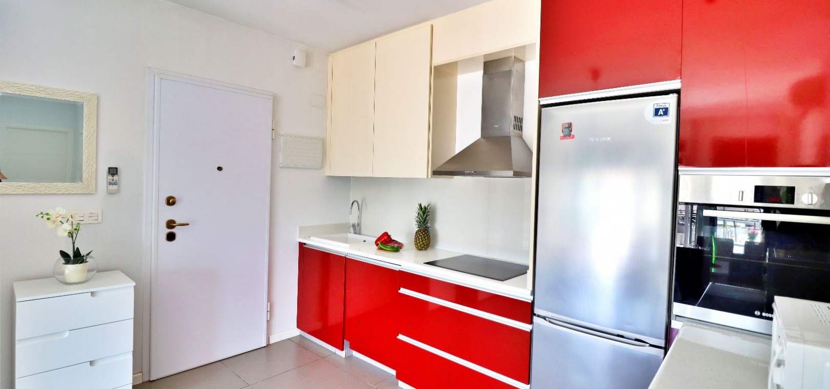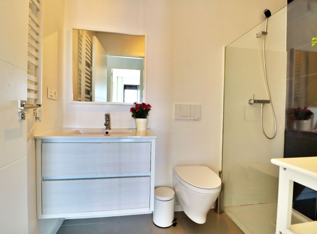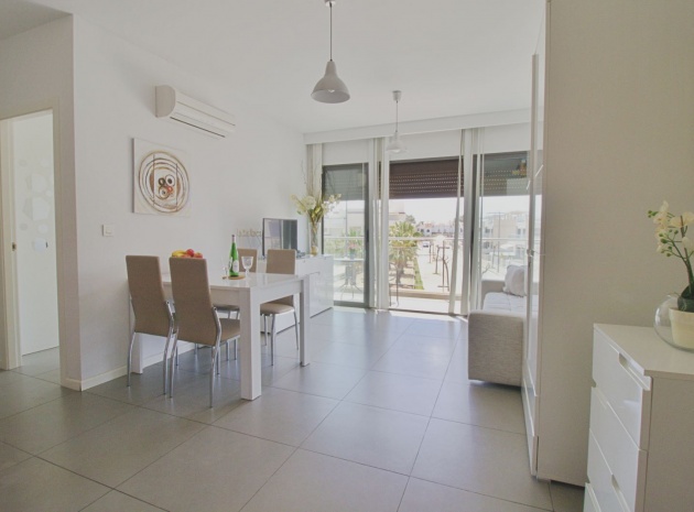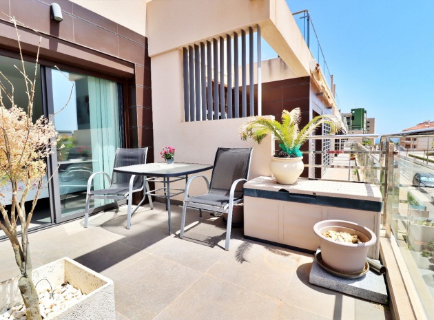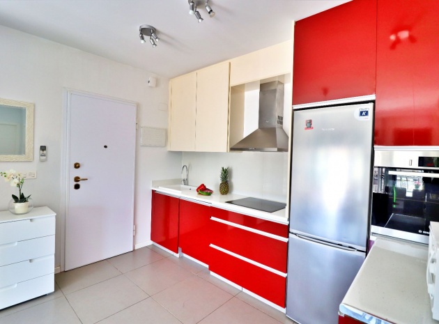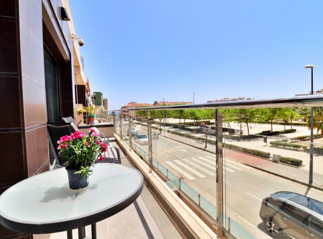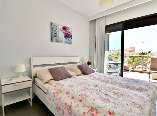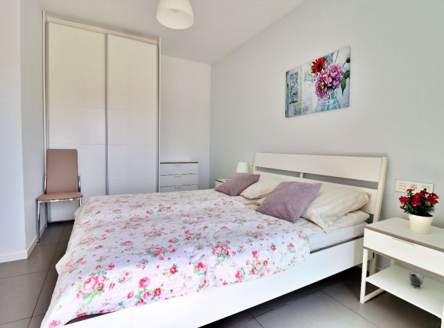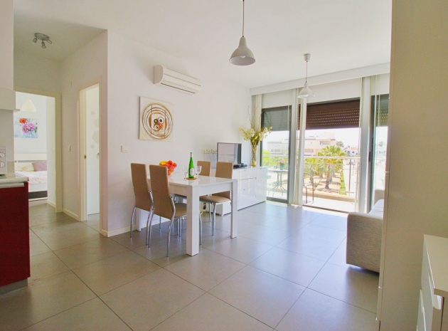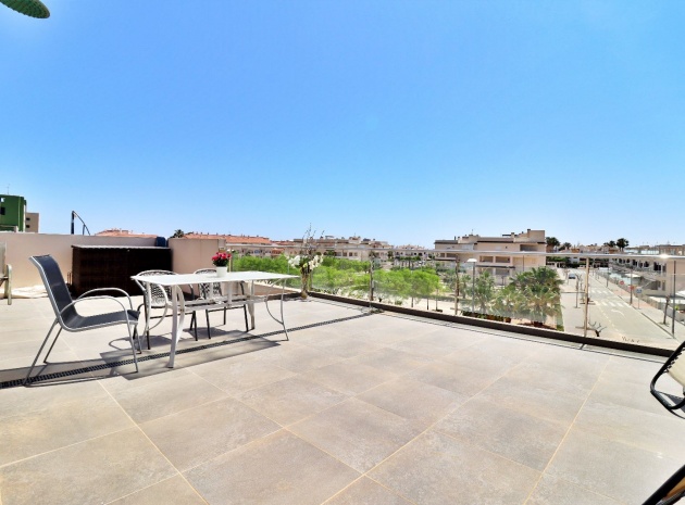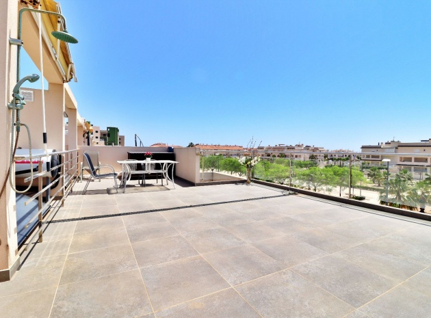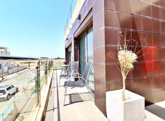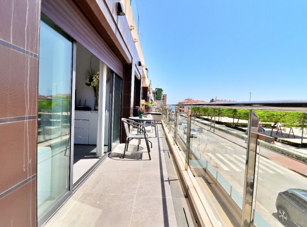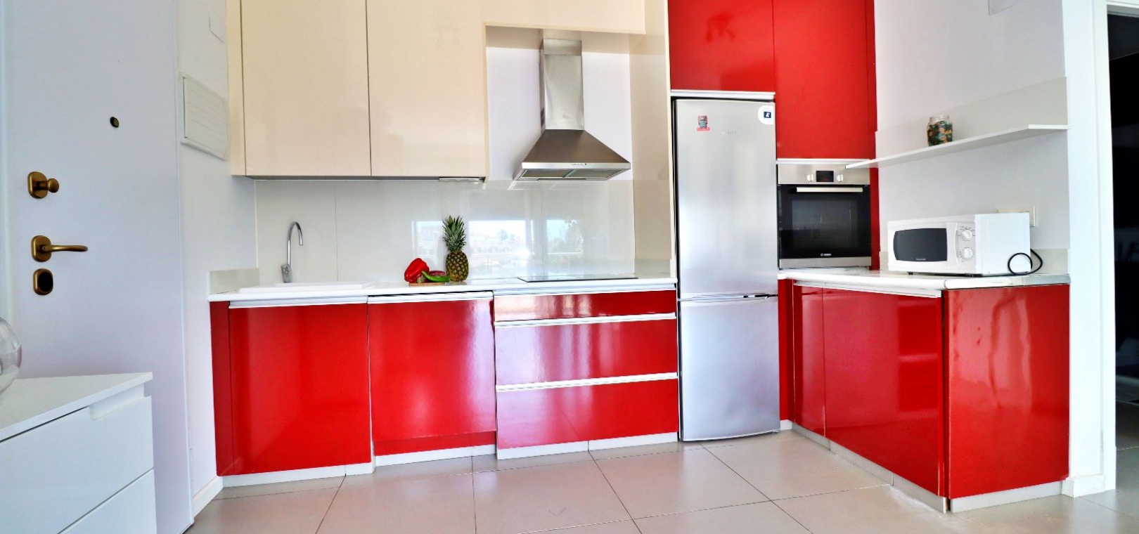En ultramodern lägenhet med 2 sovrum och 1 badrum i söderläge på översta våningen med ett privat takterrass vid stranden Mil Palmeras, Costa Blanca.