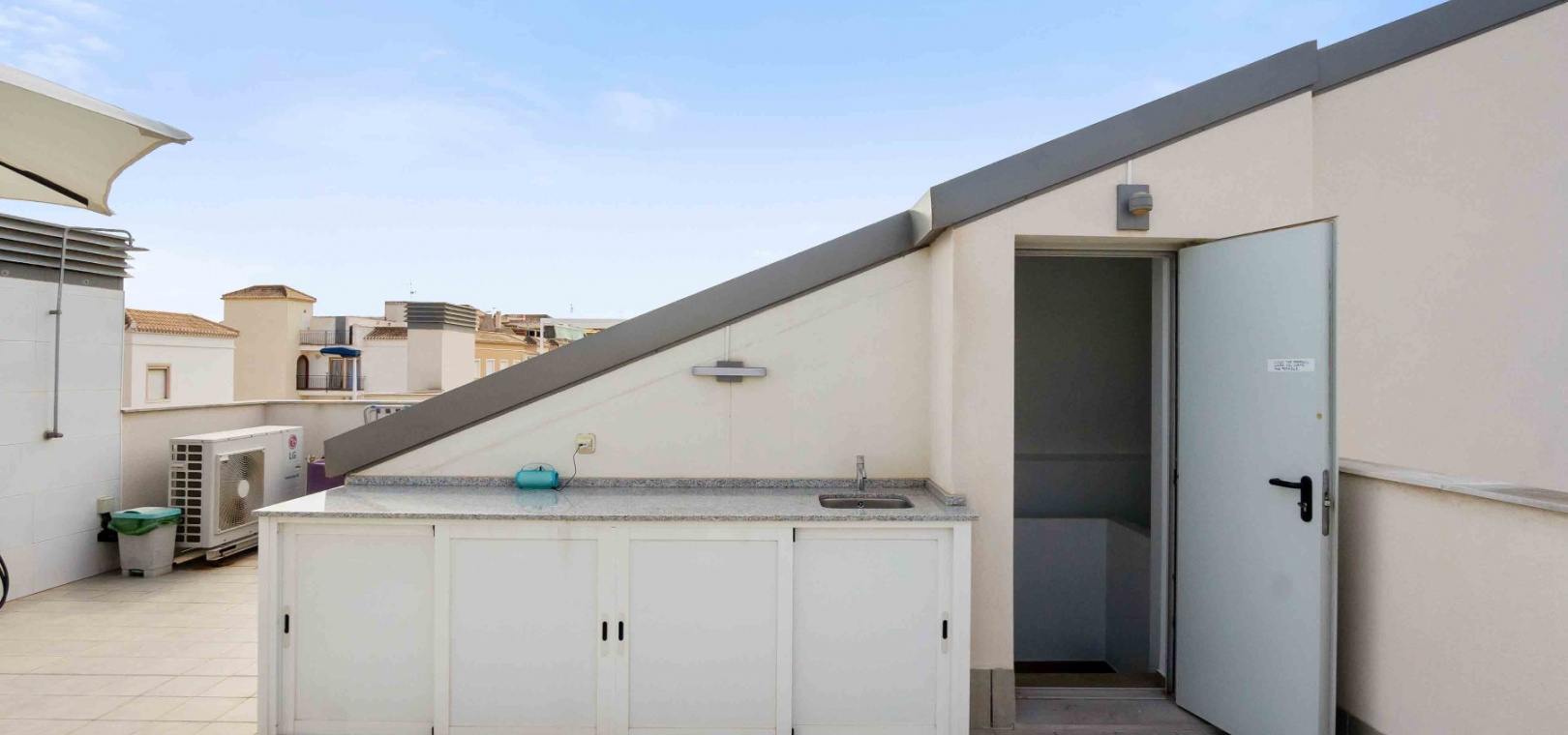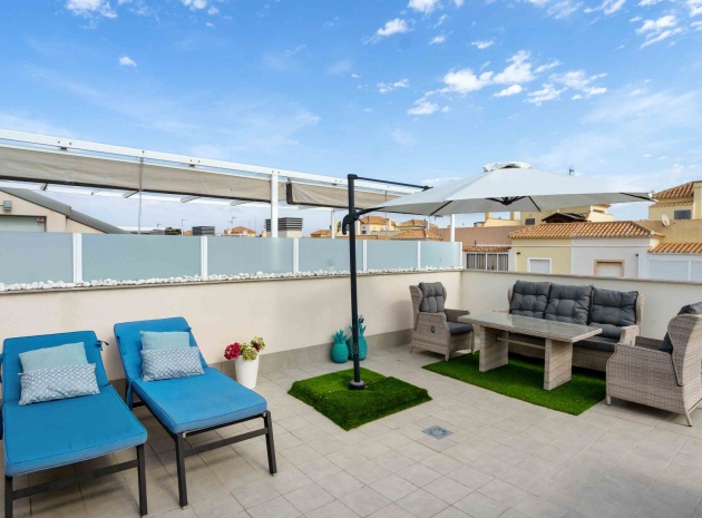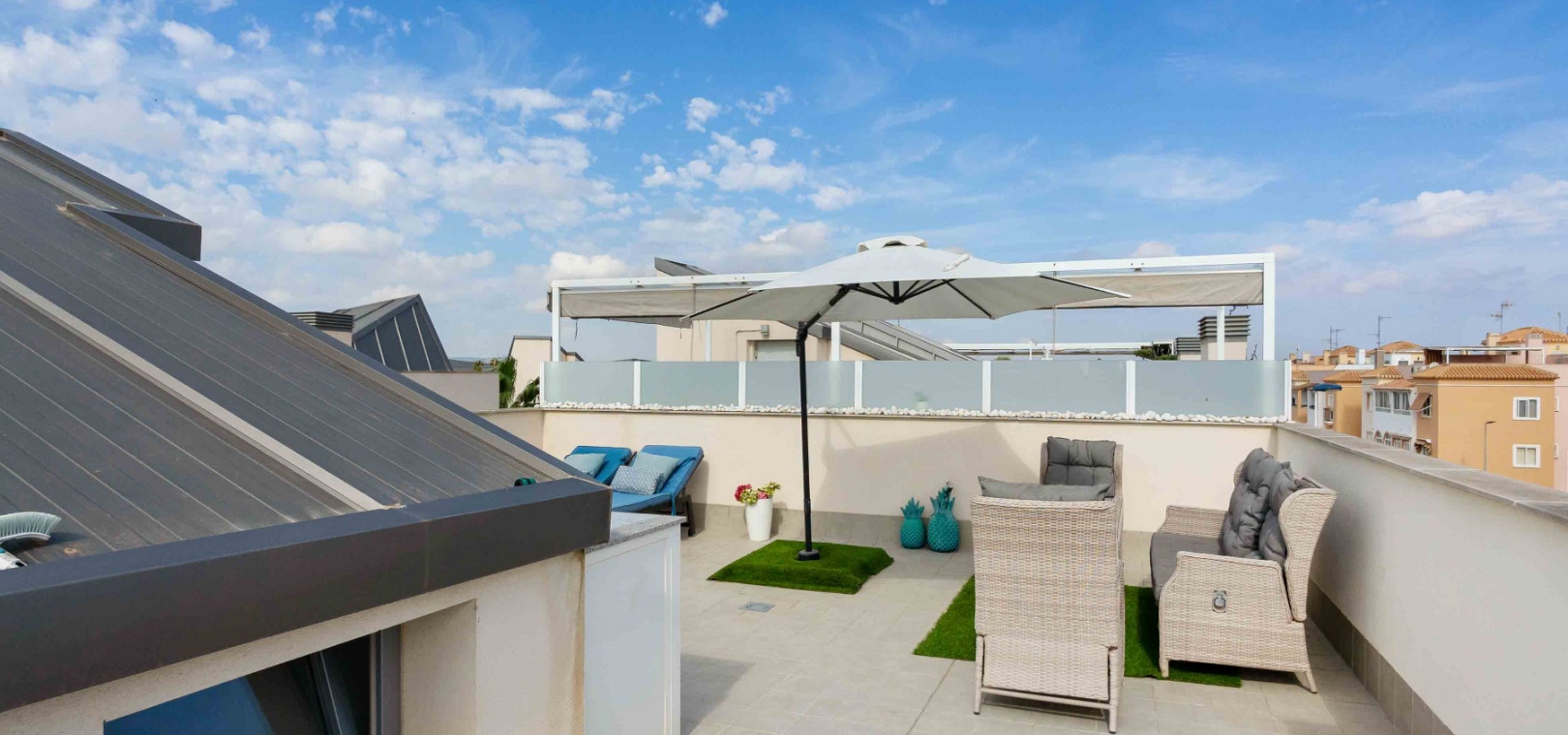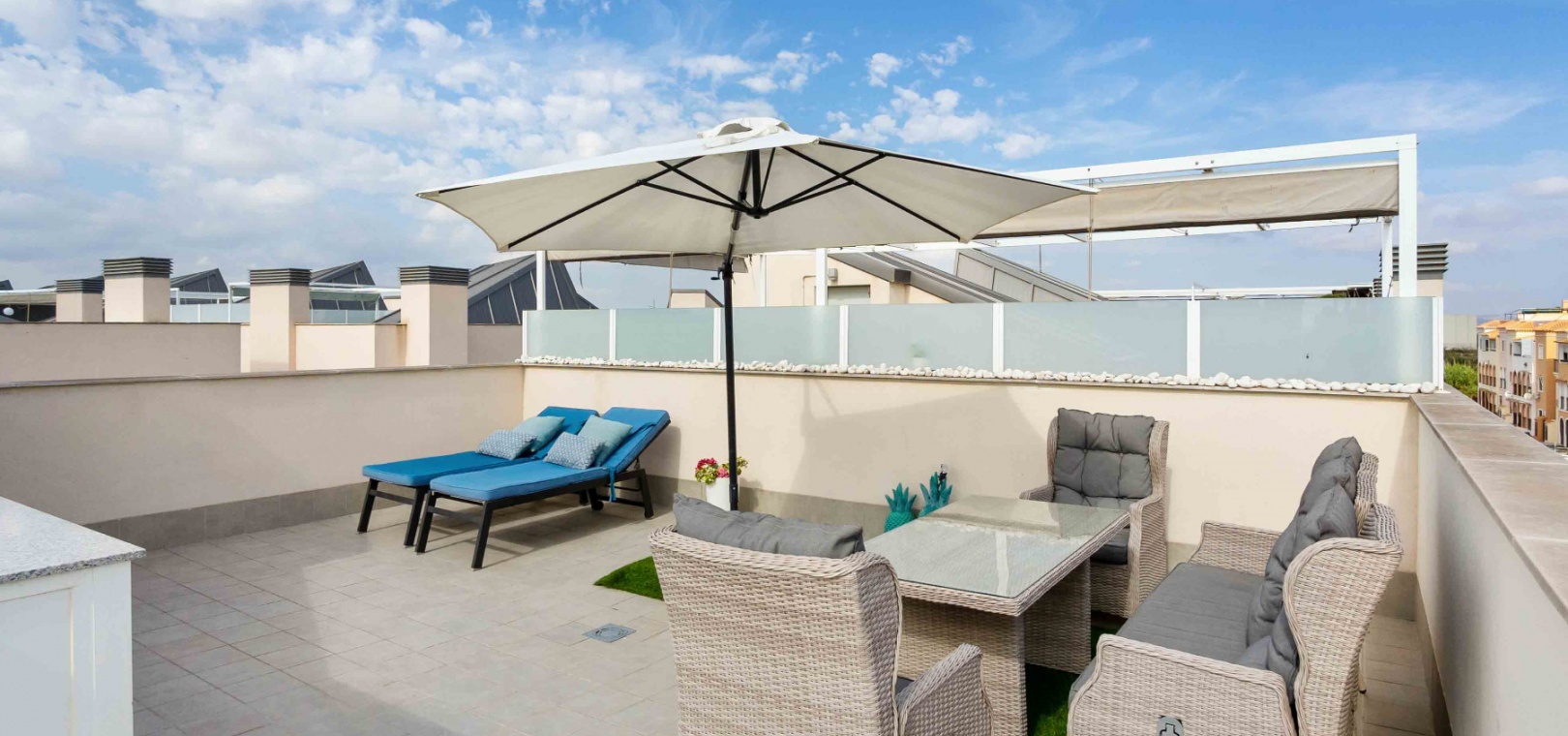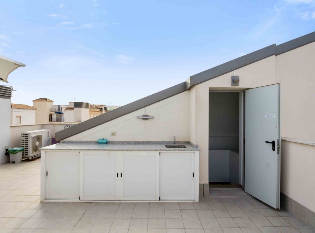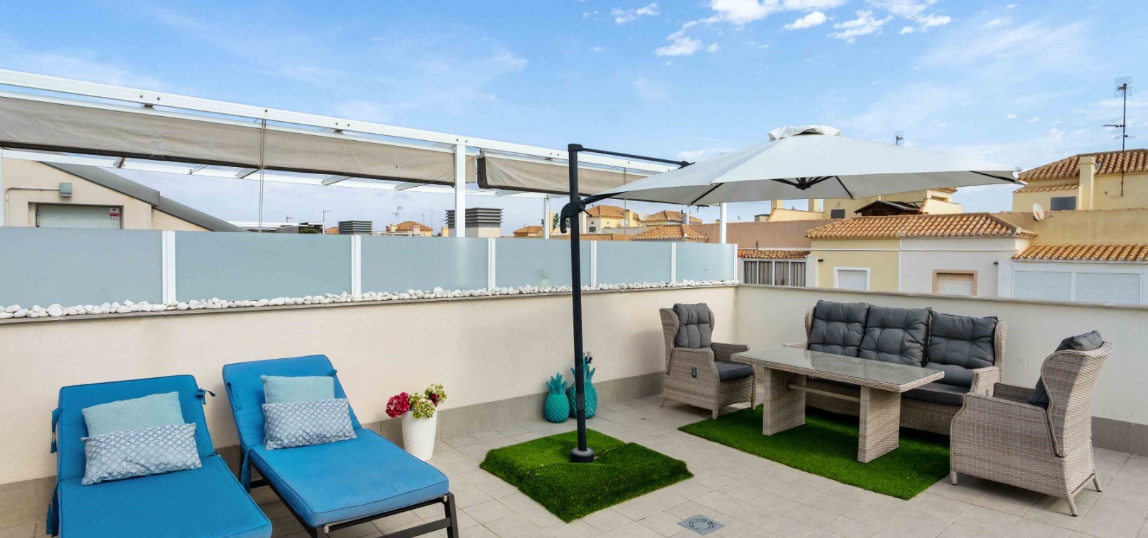 En lägenhet med 2 sovrum och 2 badrum på översta våningen med privat takterrass bara 250 m från havet belägen i La Veleta, Torrevieja, Costa Blanca South.