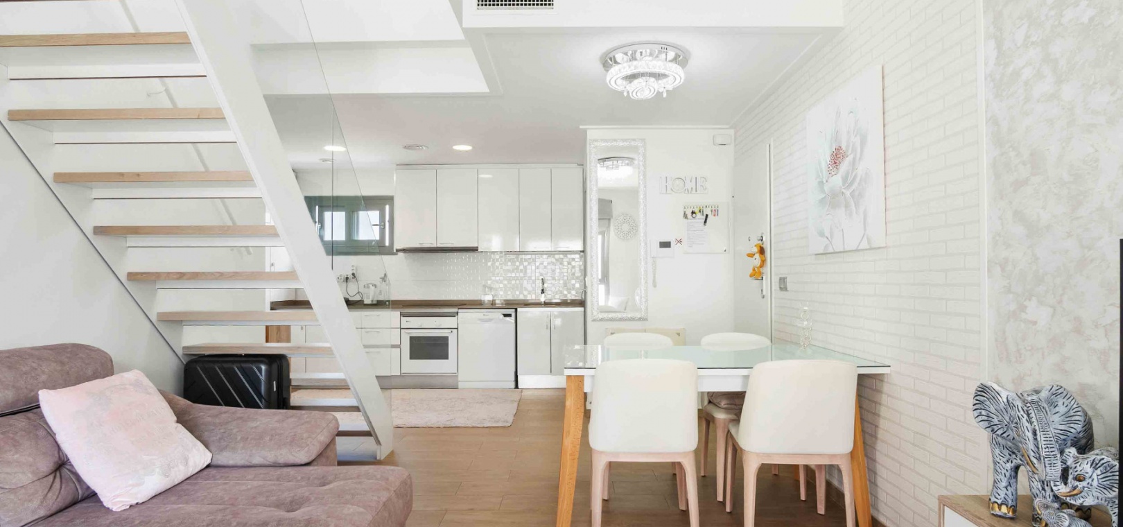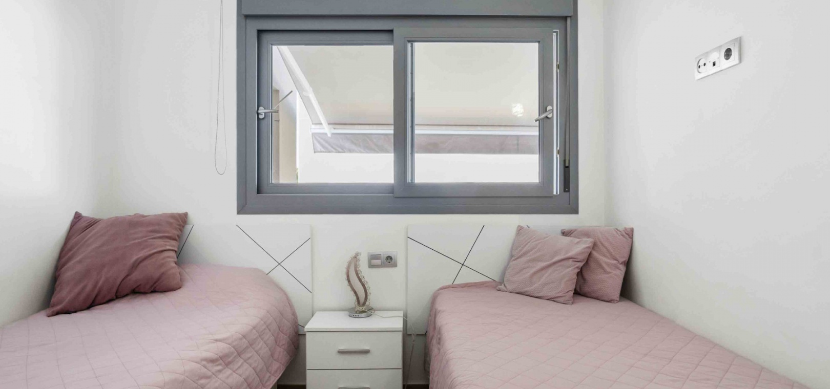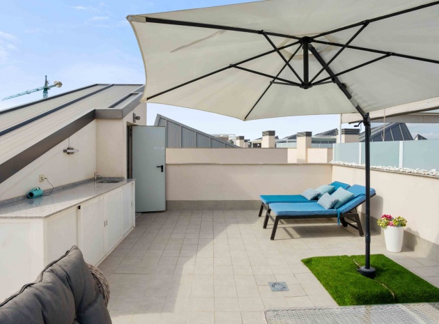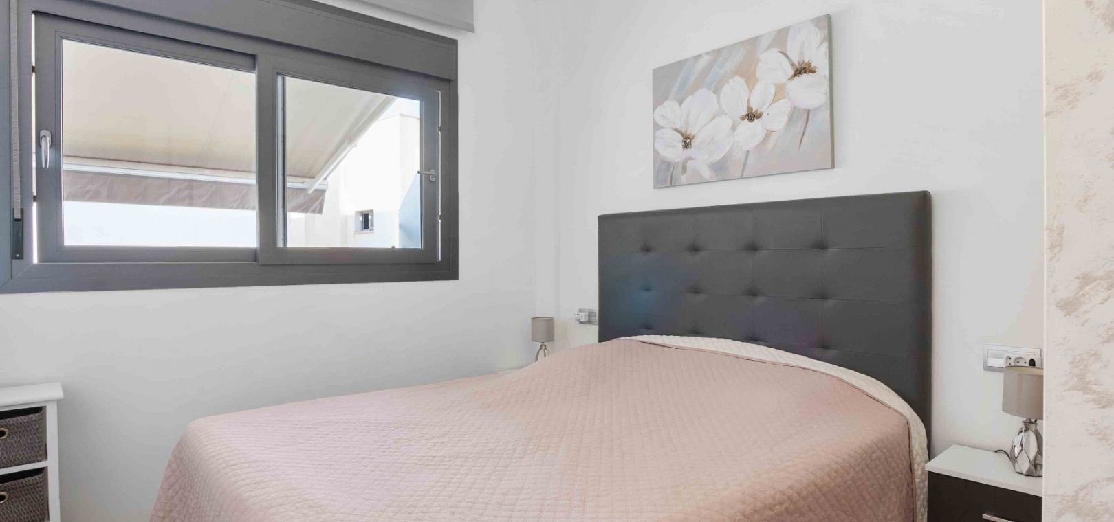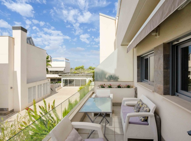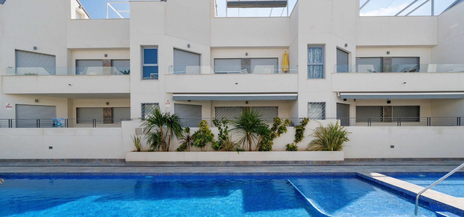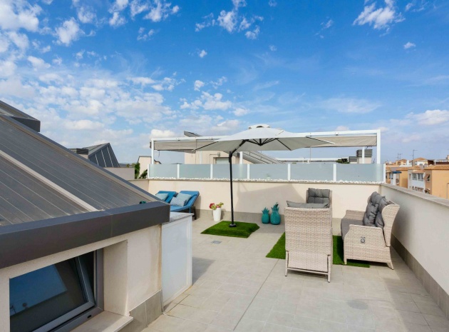 En lägenhet med 2 sovrum och 2 badrum på översta våningen med privat takterrass bara 250 m från havet belägen i La Veleta, Torrevieja, Costa Blanca South.