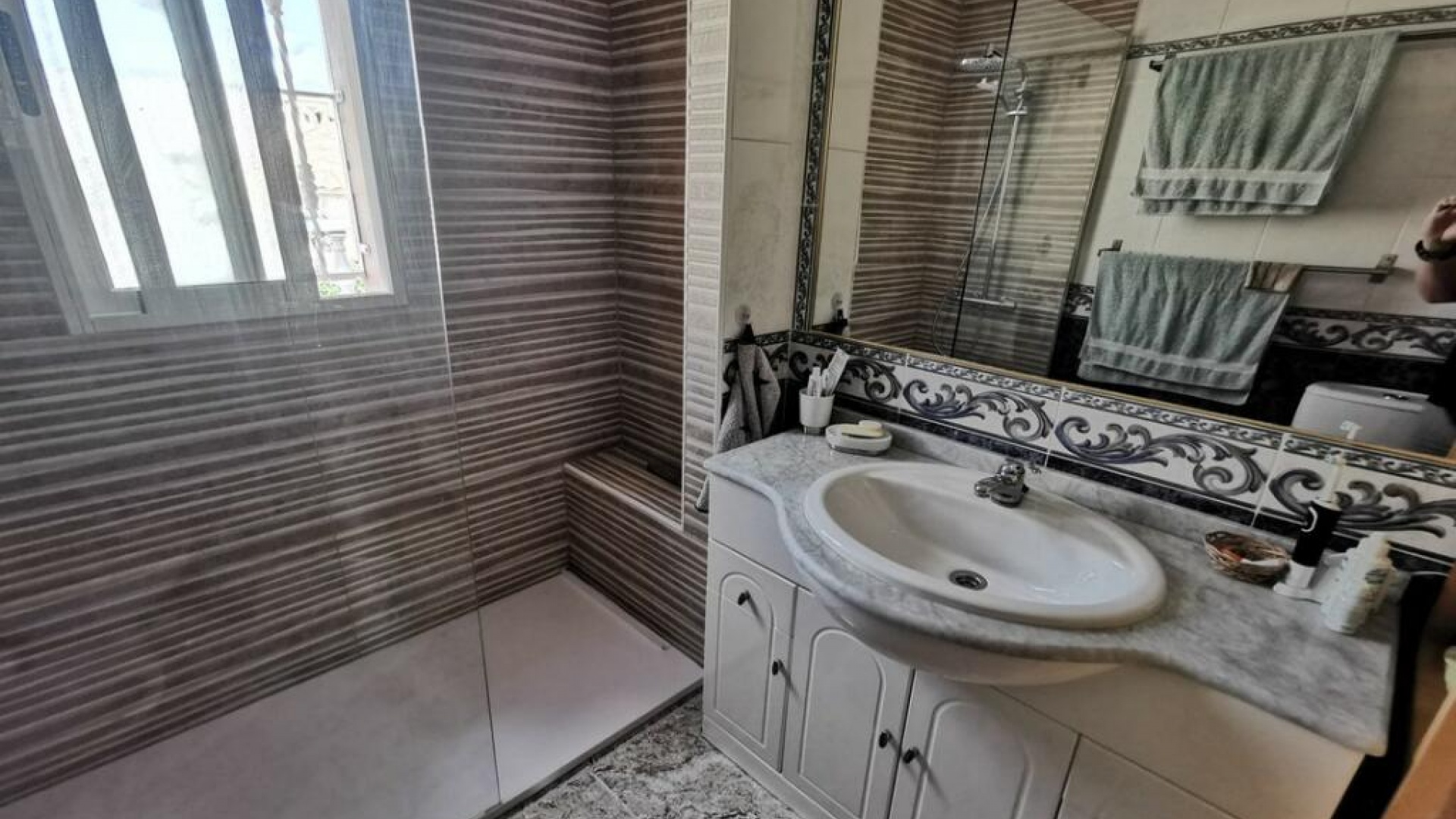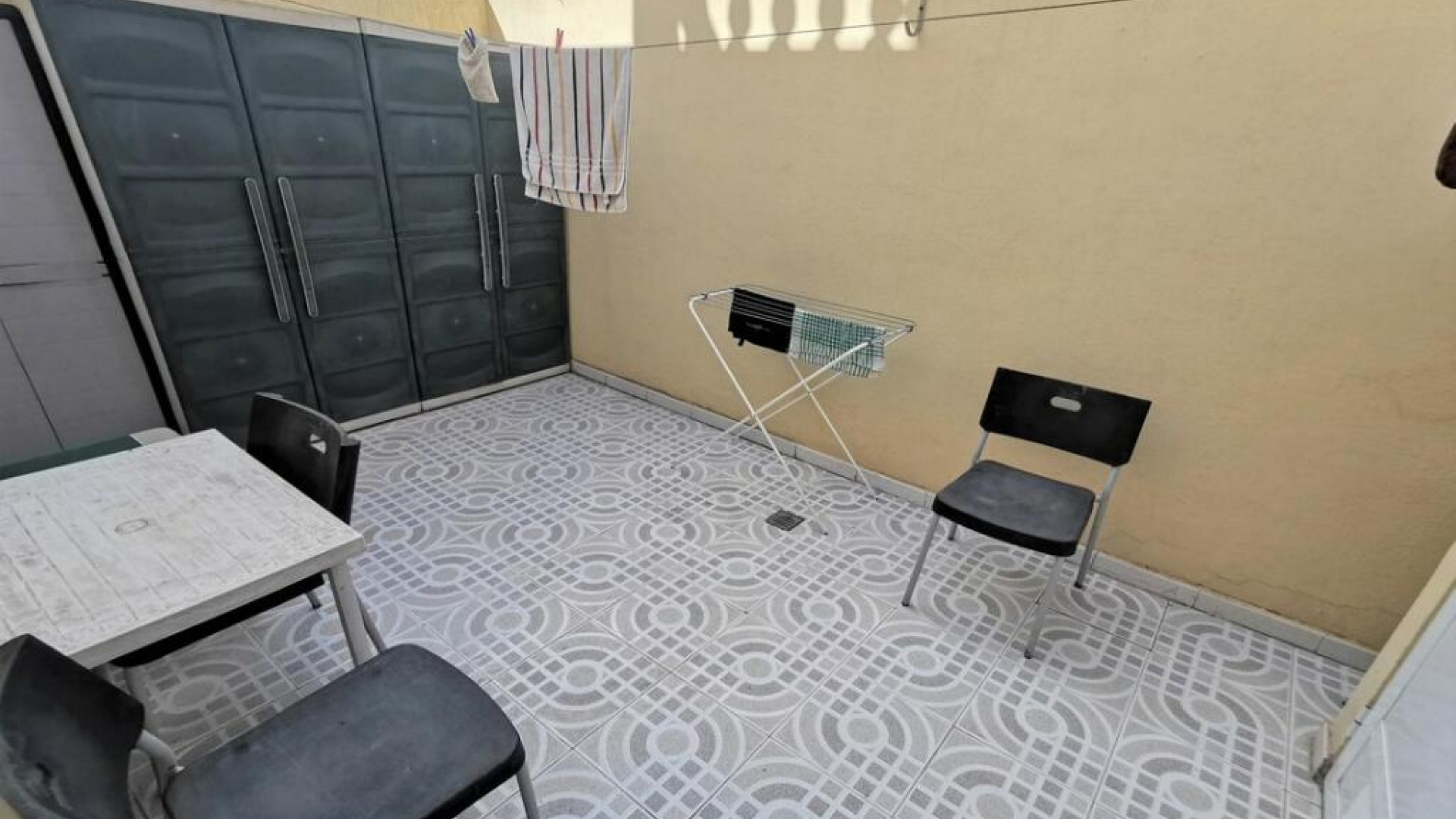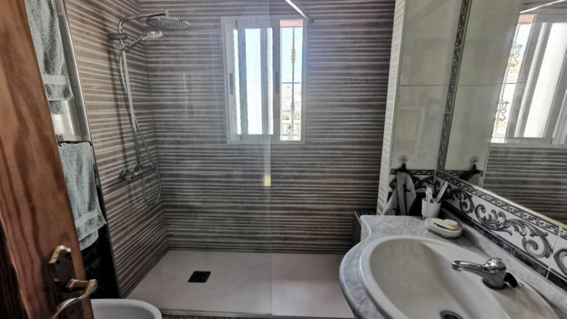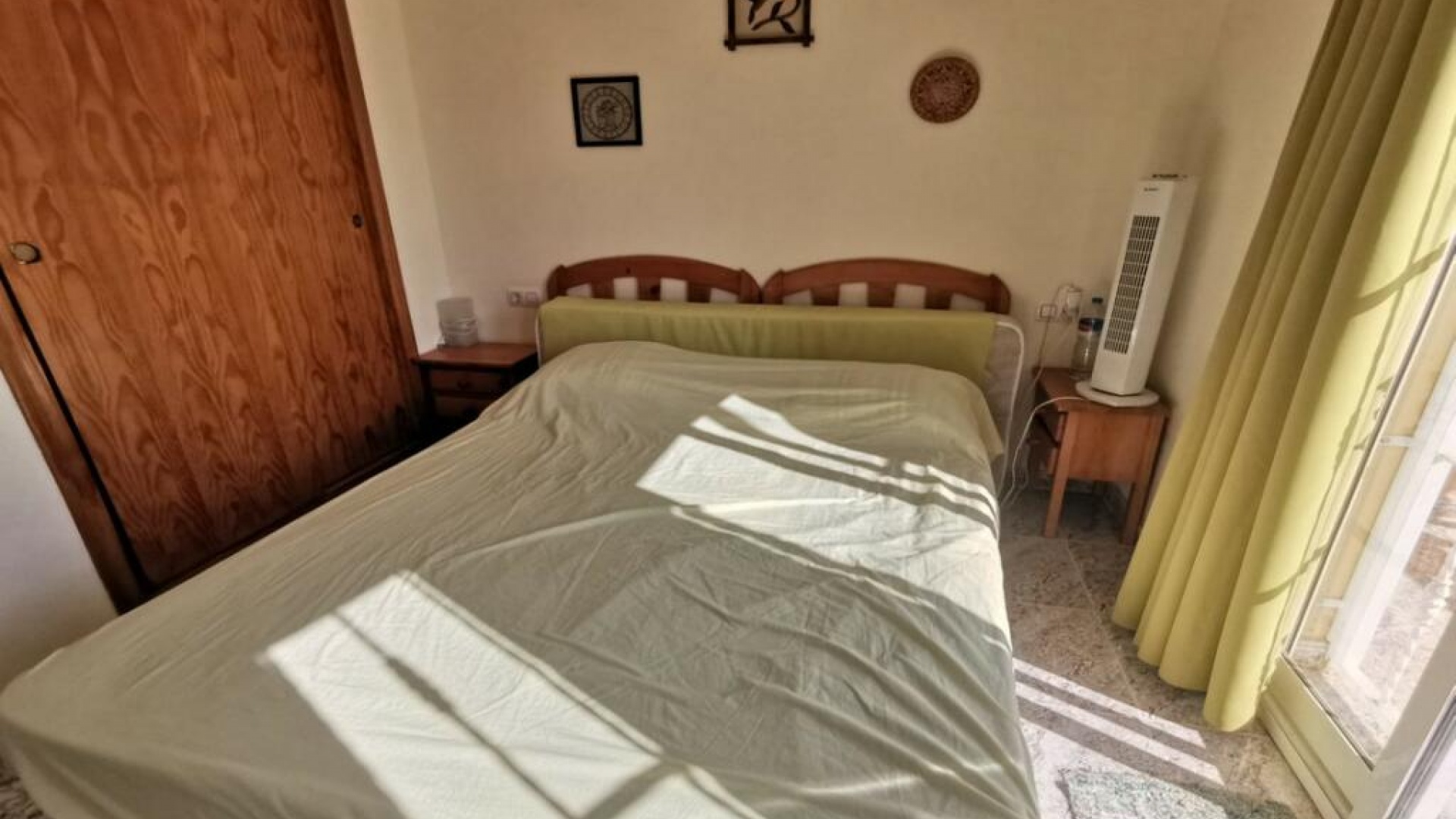 På bottenvåningen finns en främre trädgård, utökad terrass på framsidan, ett vardagsrum/matsal med takfläkt, separat fullt utrustat kök, bakre terrass/användningsområde, 1 x dubbelrum och 1 x W/C.