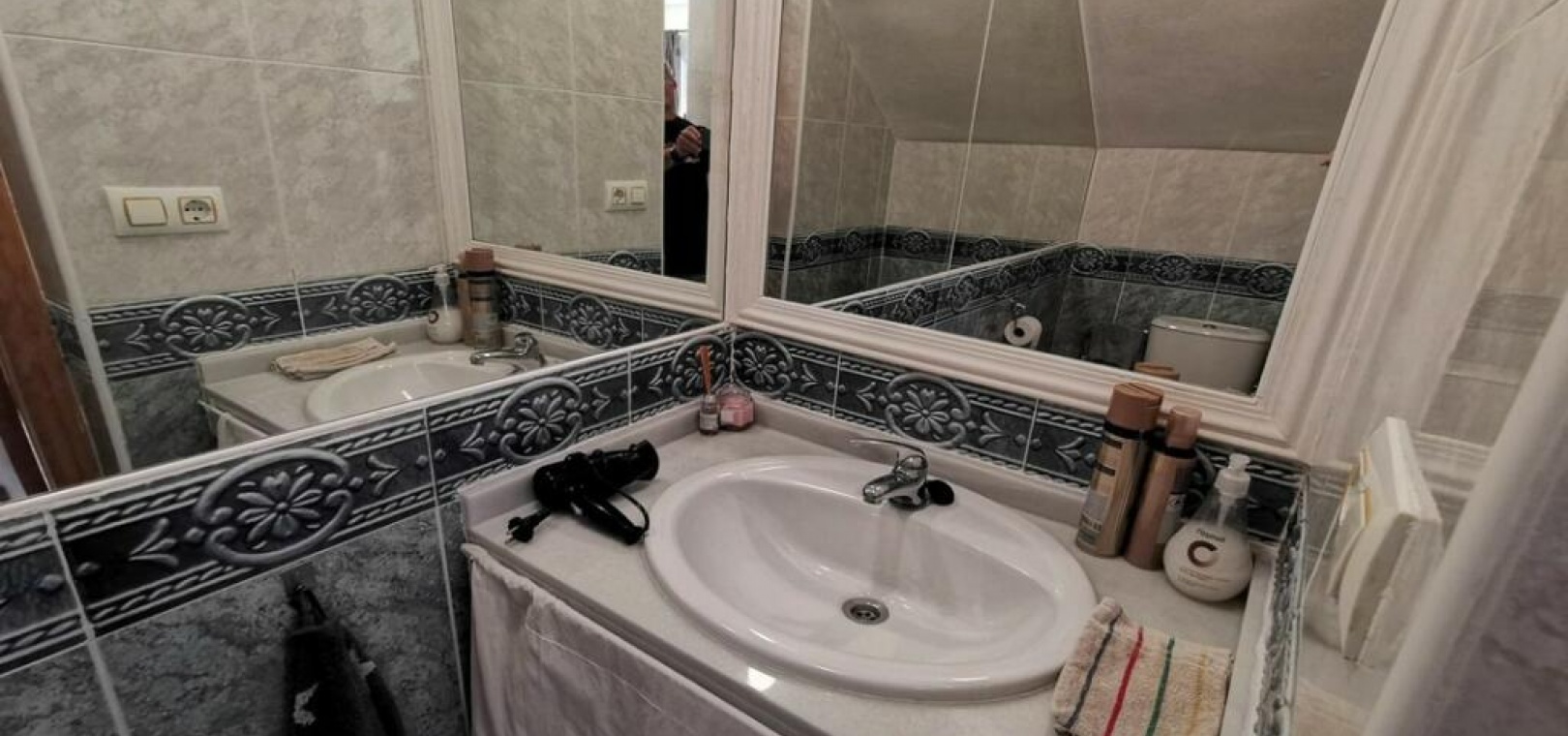 Intern trappa leder till 1: a våningen där det finns 2 x dubbelrum båda med inbyggda garderober & privata balkonger & 1 x nyligen duschrum.