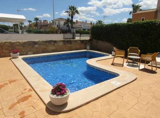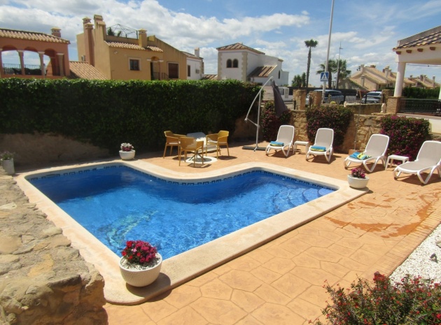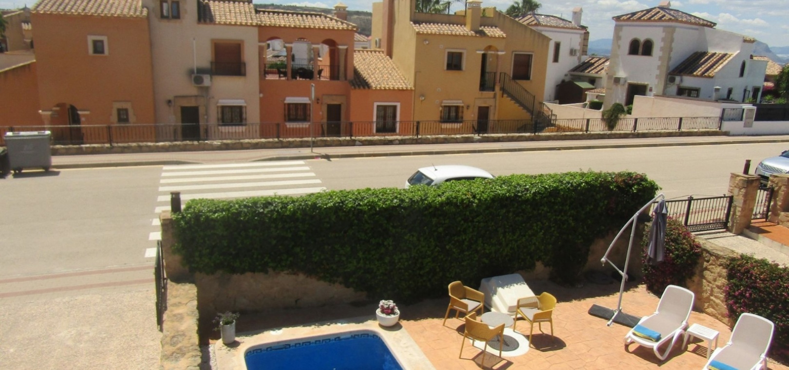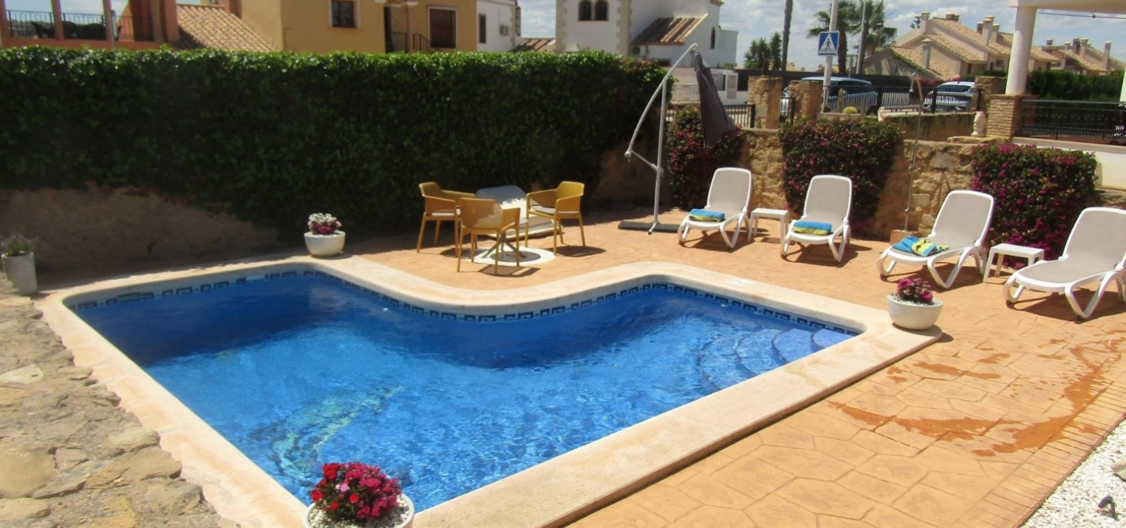 En fristående villa med 3 sovrum och 2 badrum i sydvästläge med en privat pool som ligger vid sidan av golfbanan La Finca, Algorfa, Costa Blanca. Denna kvalitetsfastighet erbjuds till salu i gott skick, säljs delvis möblerad och består mycket kortfattat av följande: - På bottenvåningen finns ett stort vardagsrum/matrum med en öppen spis, varm och kall luftkonditionering och en takfläkt , stort separat fullt utrustat kök, 2 x dubbelrum båda med inbyggda garderober, & 1 x nyrenoverat rum. På 1:a våningen finns det största sovrummet med ett nyligen utrustat eget duschrum och stor balkong. Utanför finns en täckt terrass, stor trädgård med privat pool, uppfart för off-road parkering, stor källare/förråd och mycket mer. Fastigheten ligger i La Finca Golf Resort där det finns ett fantastiskt klubbhus utan medlemskap och ett 5-stjärnigt spahotell. Vid ingången till Golf Resort finns ett litet kommersiellt centrum där du hittar banker, frisörer och flera barer och restauranger. La Finca är en fantastisk utmanande golfbana och det byggs även en ny golfbana vid sidan av den befintliga. Den traditionella byn Algorfa ligger några minuter med bil där du hittar alla bekvämligheter (banker, stormarknader, barer, restauranger, butiker, apotek, läkare, lokalbuss etc.). Den mycket livliga huvudgatan i Quesada ligger också mycket nära, cirka 5 minuters bilresa bort och här hittar du många barer, butiker och restauranger. De vackra blåflaggade stränderna vid Guardamar Del Segura ligger bara 15 minuters bilresa bort och det är cirka 35 minuters bilresa till Alicantes flygplats.