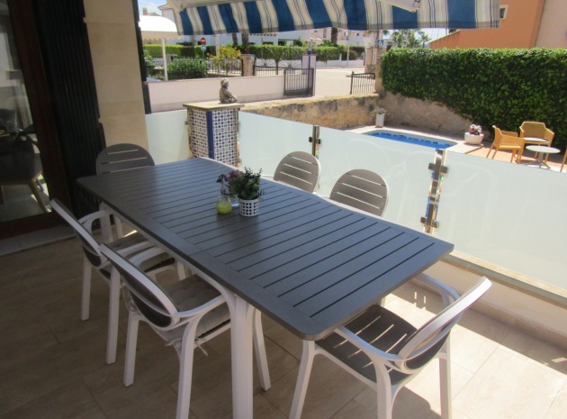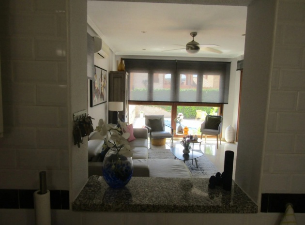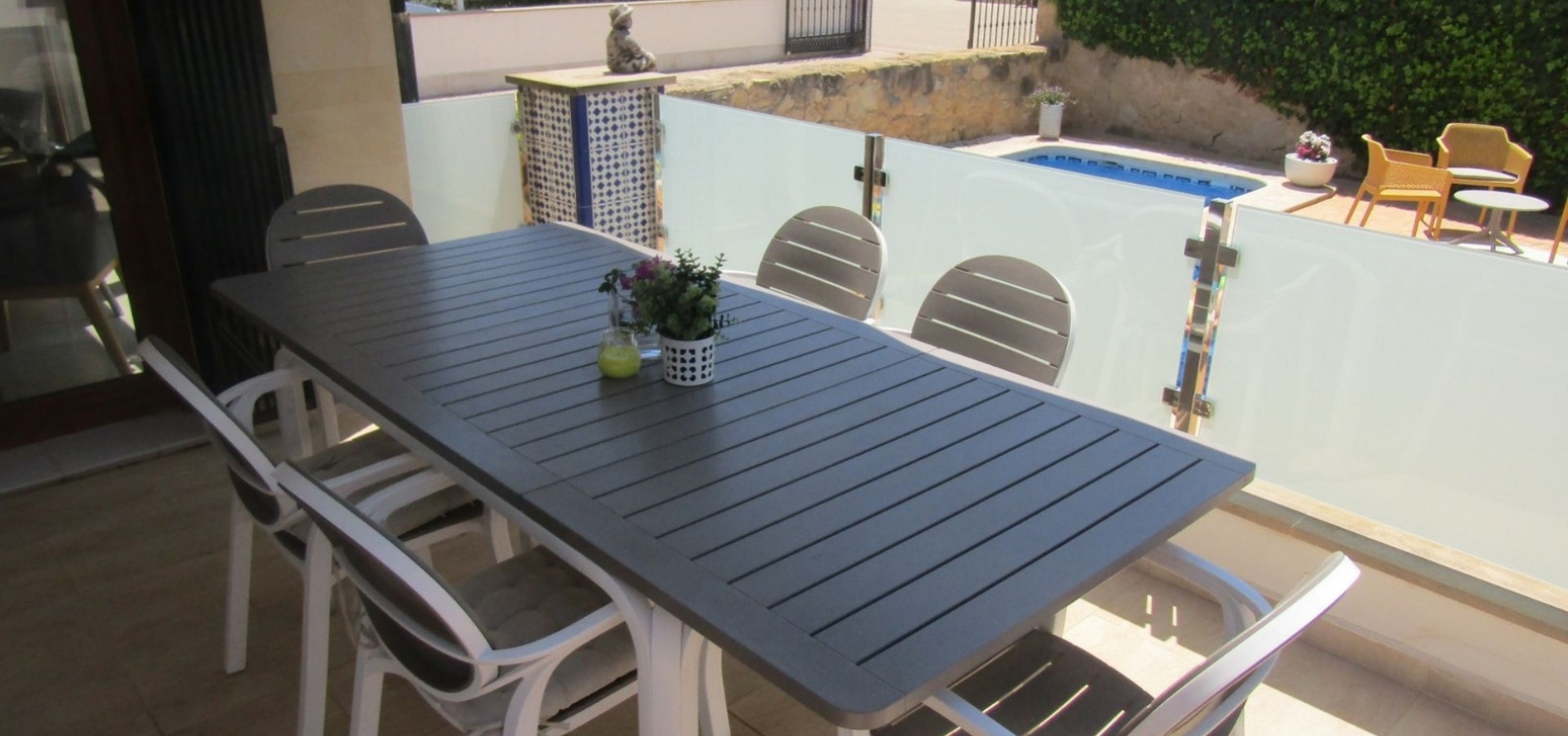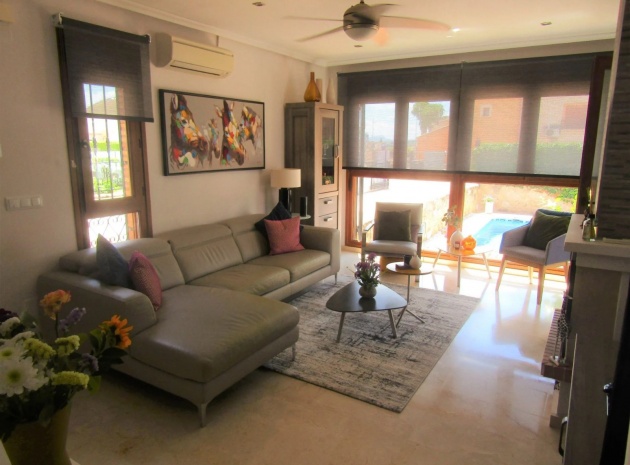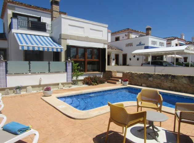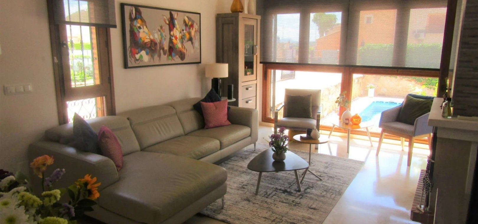 En fristående villa med 3 sovrum och 2 badrum i sydvästläge med en privat pool som ligger vid sidan av golfbanan La Finca, Algorfa, Costa Blanca. Denna kvalitetsfastighet erbjuds till salu i gott skick, säljs delvis möblerad och består mycket kortfattat av följande: - På bottenvåningen finns ett stort vardagsrum/matrum med en öppen spis, varm och kall luftkonditionering och en takfläkt , stort separat fullt utrustat kök, 2 x dubbelrum båda med inbyggda garderober, & 1 x nyrenoverat rum. På 1:a våningen finns det största sovrummet med ett nyligen utrustat eget duschrum och stor balkong. Utanför finns en täckt terrass, stor trädgård med privat pool, uppfart för off-road parkering, stor källare/förråd och mycket mer. Fastigheten ligger i La Finca Golf Resort där det finns ett fantastiskt klubbhus utan medlemskap och ett 5-stjärnigt spahotell. Vid ingången till Golf Resort finns ett litet kommersiellt centrum där du hittar banker, frisörer och flera barer och restauranger. La Finca är en fantastisk utmanande golfbana och det byggs även en ny golfbana vid sidan av den befintliga. Den traditionella byn Algorfa ligger några minuter med bil där du hittar alla bekvämligheter (banker, stormarknader, barer, restauranger, butiker, apotek, läkare, lokalbuss etc.). Den mycket livliga huvudgatan i Quesada ligger också mycket nära, cirka 5 minuters bilresa bort och här hittar du många barer, butiker och restauranger. De vackra blåflaggade stränderna vid Guardamar Del Segura ligger bara 15 minuters bilresa bort och det är cirka 35 minuters bilresa till Alicantes flygplats.