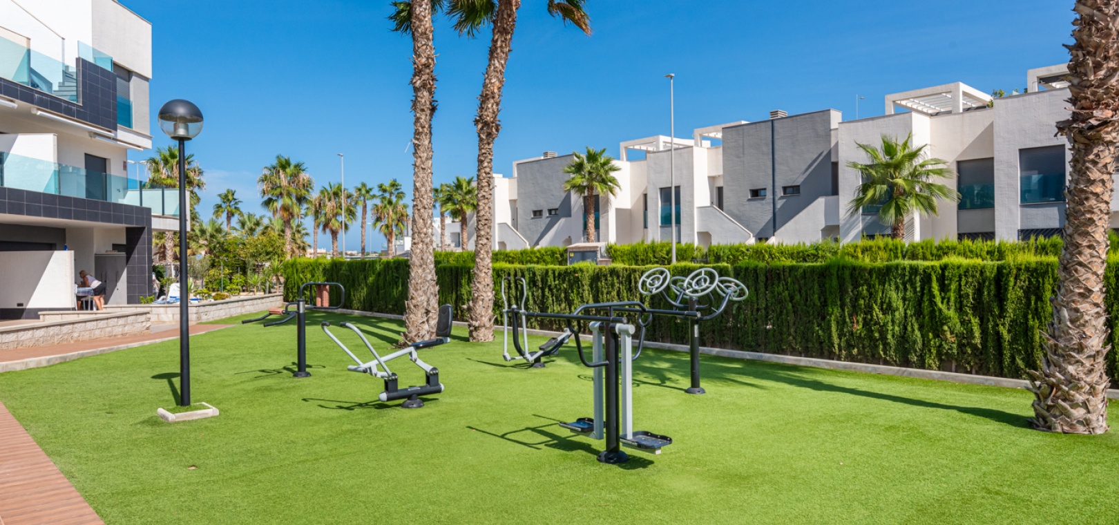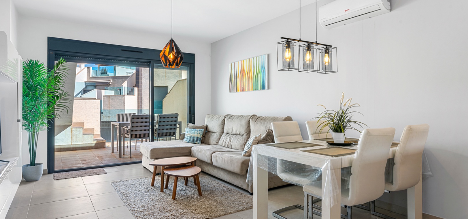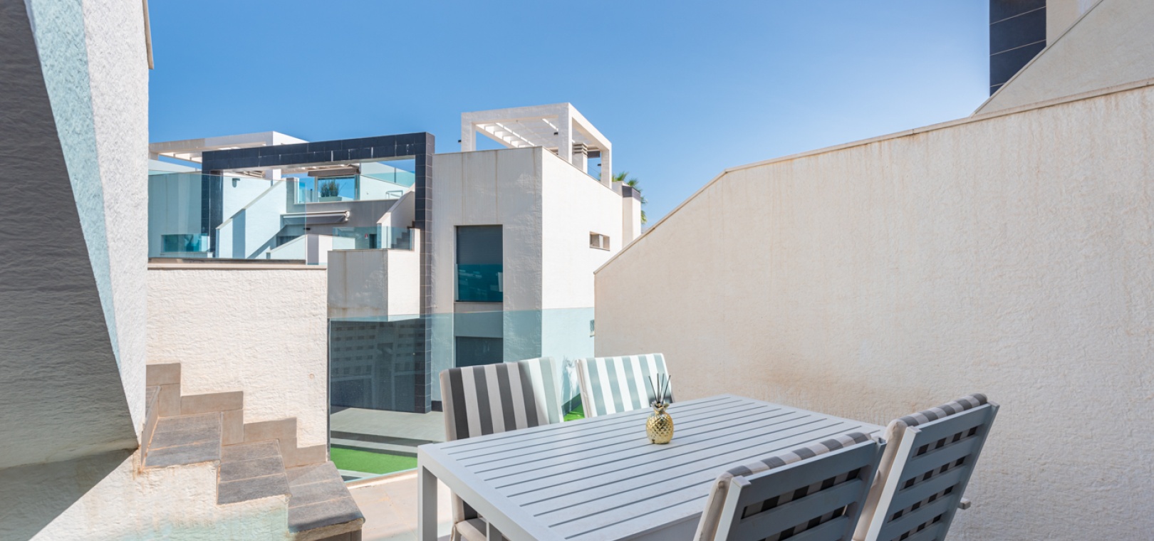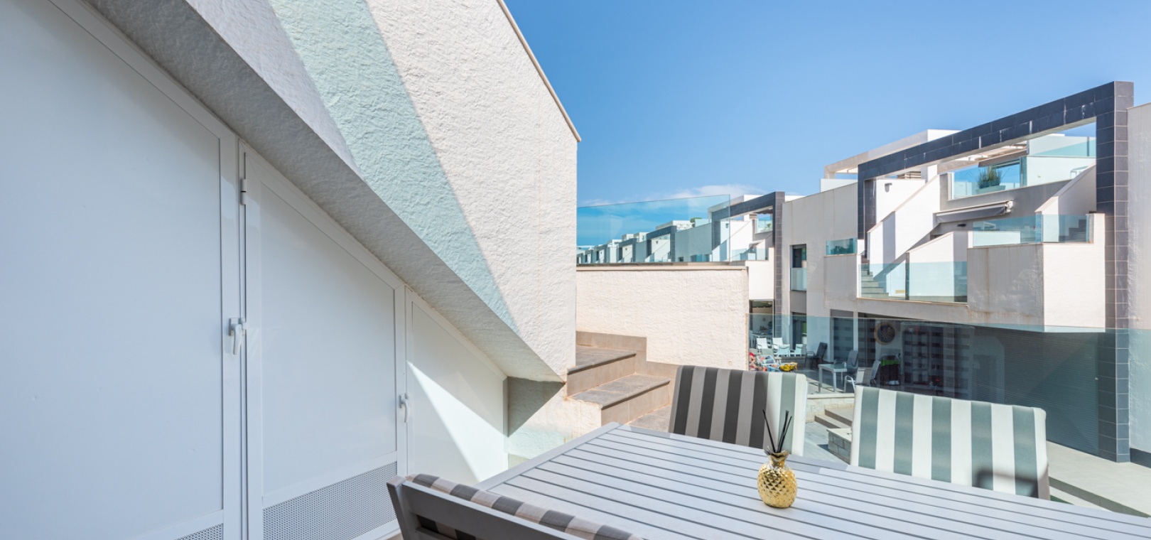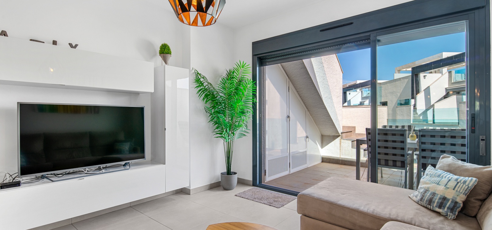 En lägenhet med 2 sovrum och 2 badrum i modern stil på översta våningen med ett privat takterrass belägen i Oasis Beach belägen på den populära urbaniseringen El Raso, Guardamar del Segura, Costa Blanca. Denna underbara fastighet säljs i mycket gott skick, säljs möblerad och består mycket kortfattat av följande:- Lounge/matsal, ett fullt utrustat kök med öppen planlösning i modern stil, 2 x dubbelrum med inbyggda garderober, det största sovrummet har ett eget badrum. svit duschrum & 1 x gästduschrum, balkong på 1:a våningen, stort privat taksolarium, gemensam pool och trädgård, en barnpark, boule, bastu och SPA. Den här fastigheten ligger på en säker gated community, med en underjordisk parkeringsplats och mycket mer. Denna fastighet ligger bara en kort promenad upp till det kommersiella området vid ingången till El Raso. Här hittar du en liten lanthandel, butiker, flera barer och restauranger och en regelbunden lokalbuss in till Guardamar. Guardamars gyllene stränder med blå flagg ligger bara 5 minuters bilresa bort. Alicantes flygplats ligger cirka 35 minuters bilresa bort och Murcia Corvera ligger cirka 50 minuters bilresa bort.