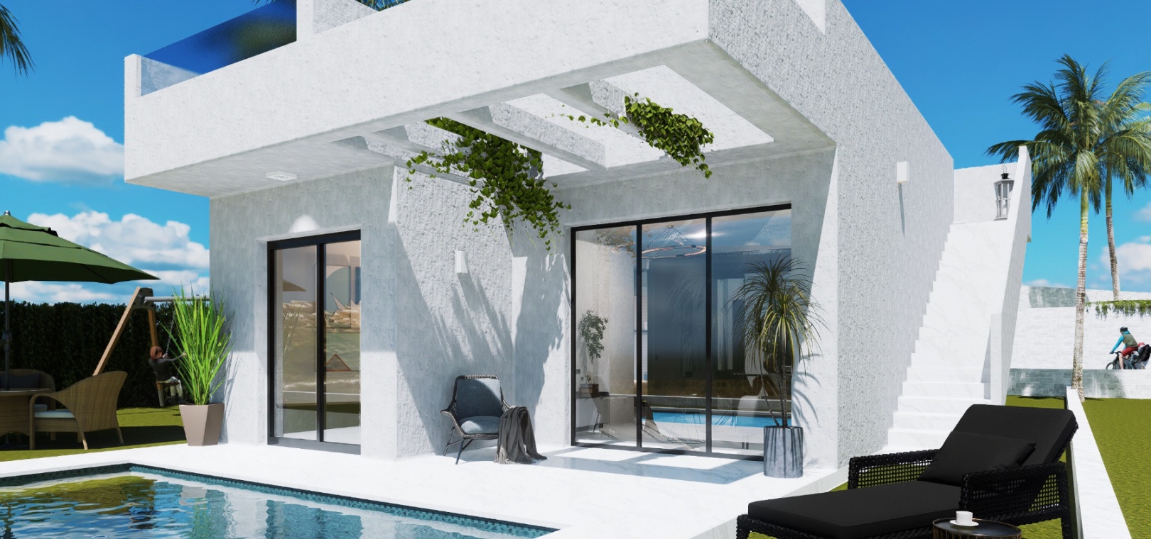 Nybyggda fristående villor med 3 sovrum och 2 badrum i modern stil med privat pool i Res. Oasis Villas, La Finca Golf, Costa Blanca South.