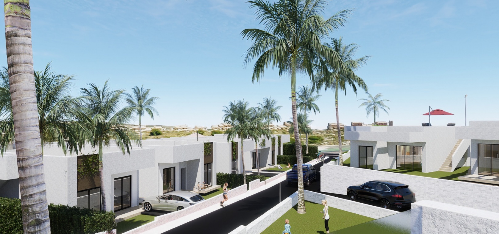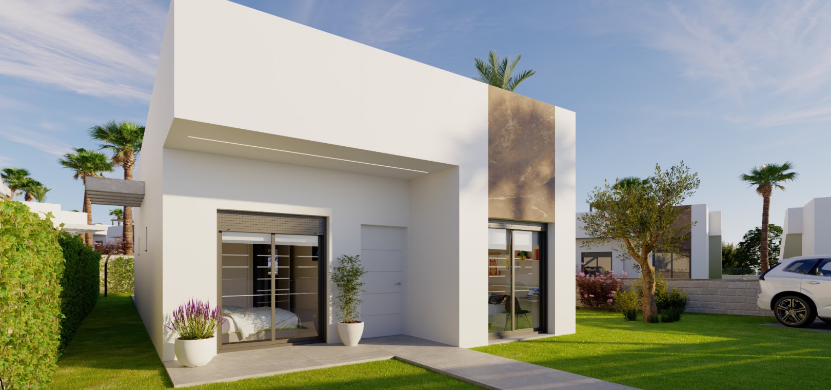 Dessa fastigheter ligger nära golfbanan och La Fincas kommersiella centrum där du hittar en stormarknad, bank, frisörer och flera barer och restauranger. Det finns också ett fantastiskt klubbhus och restaurang som inte är medlem och ett 5-stjärnigt spahotell. Byn Algorfa ligger några minuter med bil där du hittar alla bekvämligheter (banker, stormarknader, barer, restauranger, affärer, apotek, läkare, lokalbuss etc.). Det är bara 15 minuters bilresa till de vackra blåflaggade stränderna vid Guardamar Del Segura och cirka 35 minuters bilresa till Alicantes flygplats och Murcia Corvera flygplats ligger cirka 50 minuters bilresa bort.