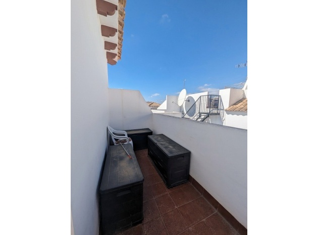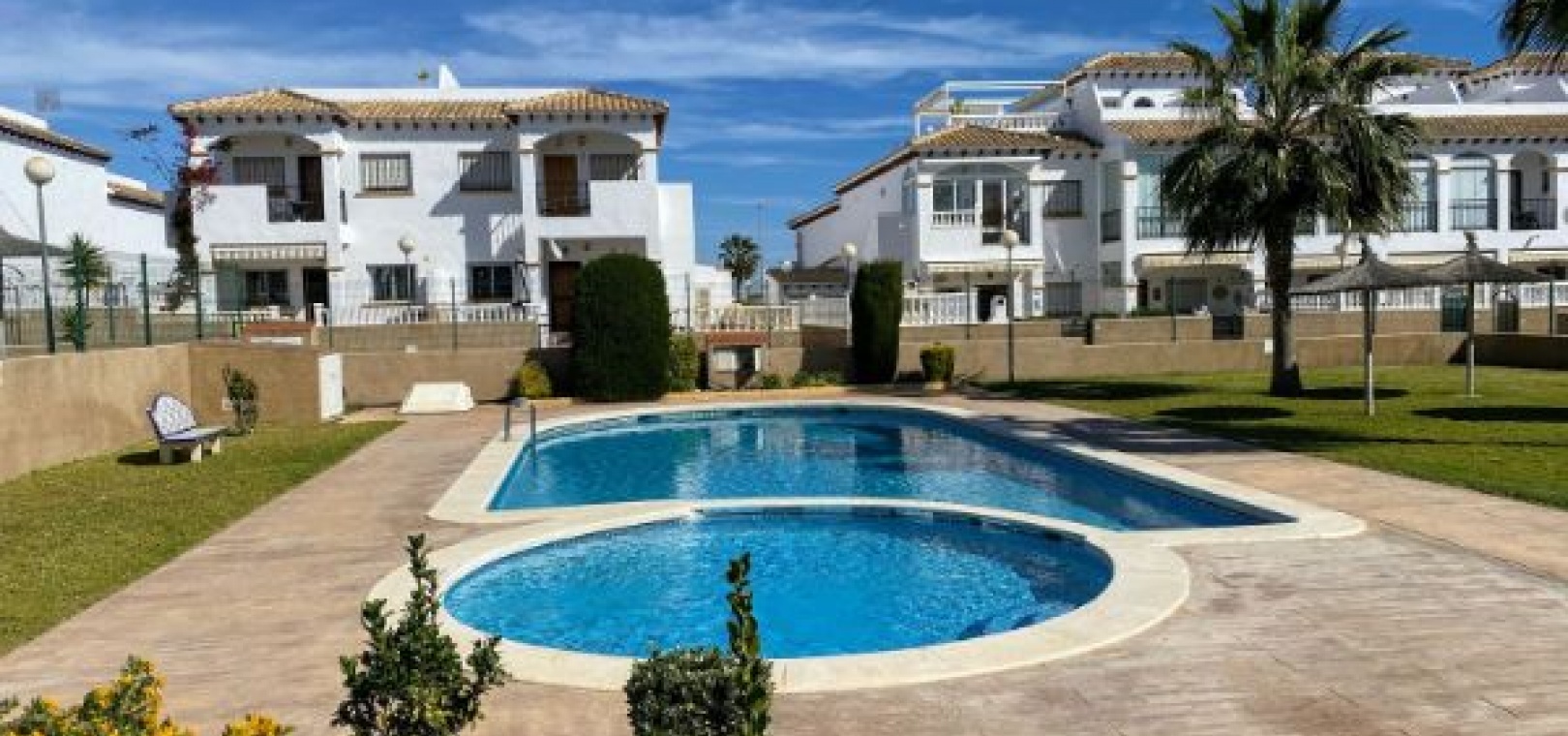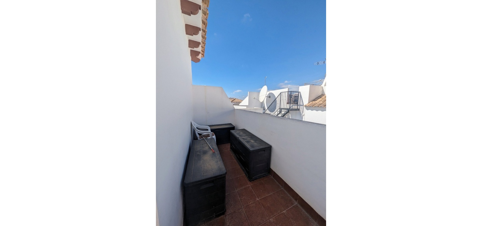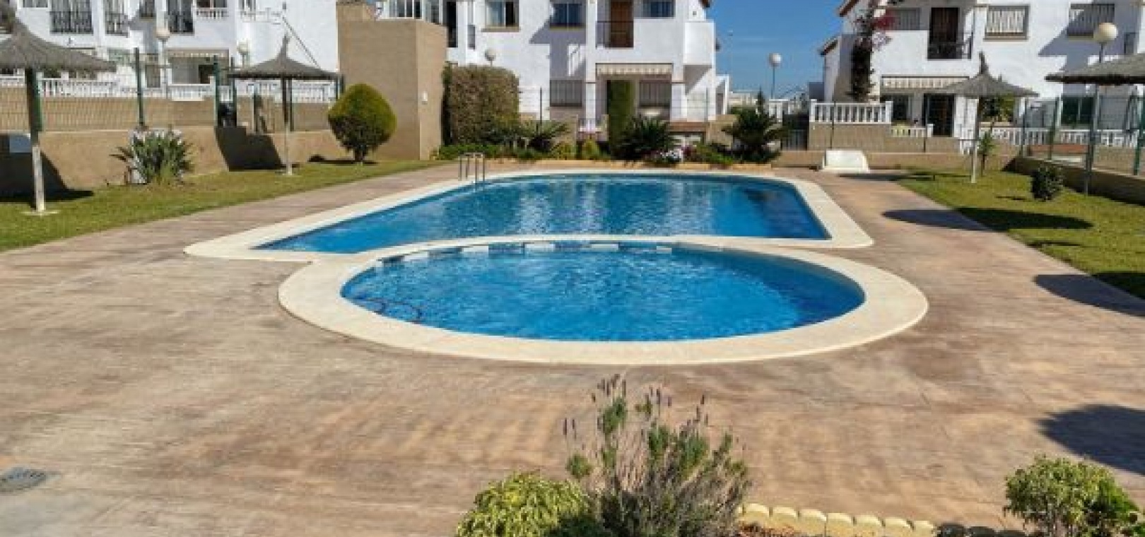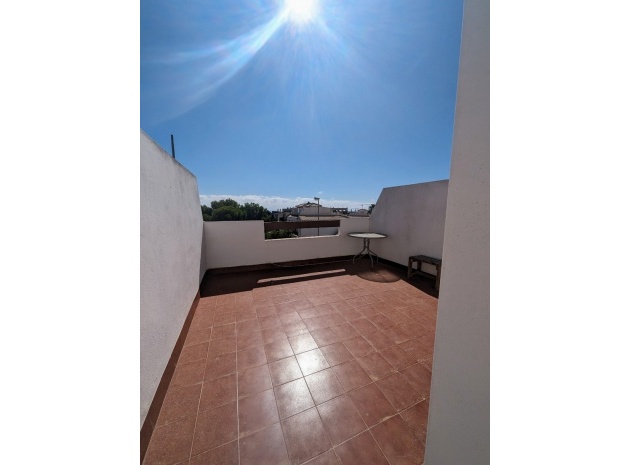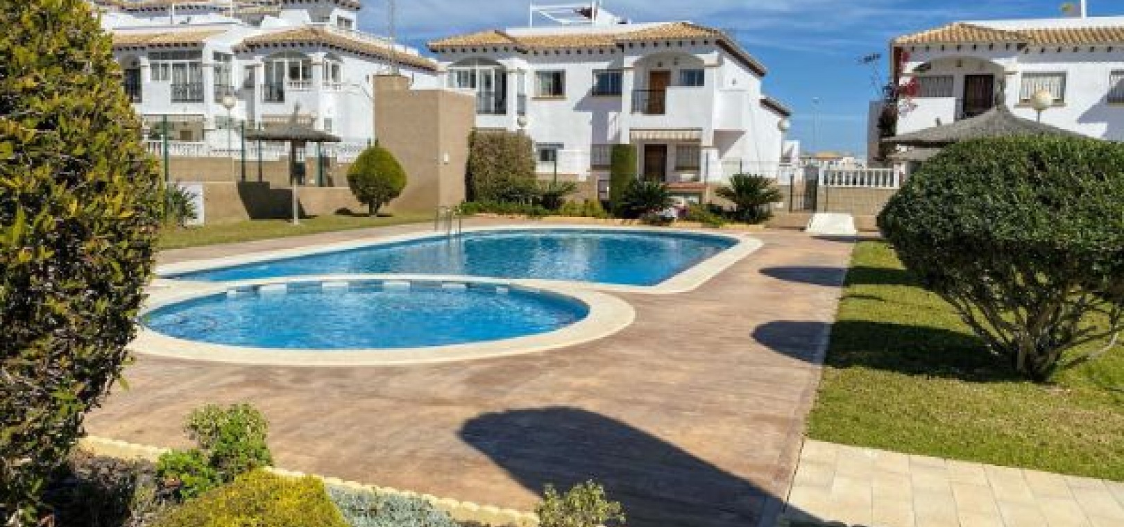 Ett östläge radhus med 2 sovrum och 1,5 badrum med privat takterrass i La Cinuelica, Punta Prima, Costa Blanca.