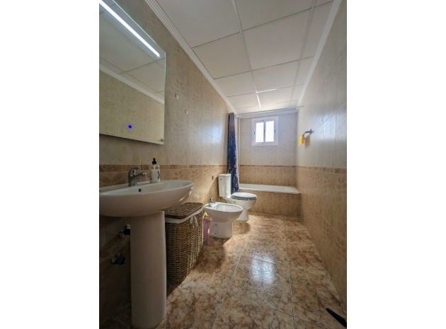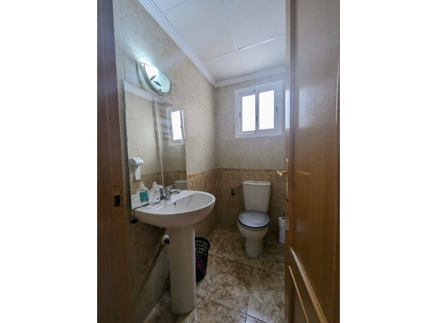 På bottenvåningen finns ett vardagsrum/matsal, separat fullt utrustat kök med utgångsdörr till den bakre uteplatsen/förråd och 1 x W/C
