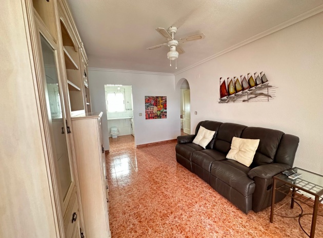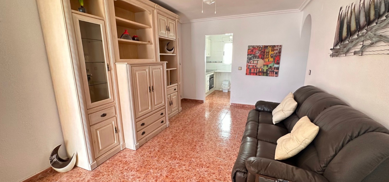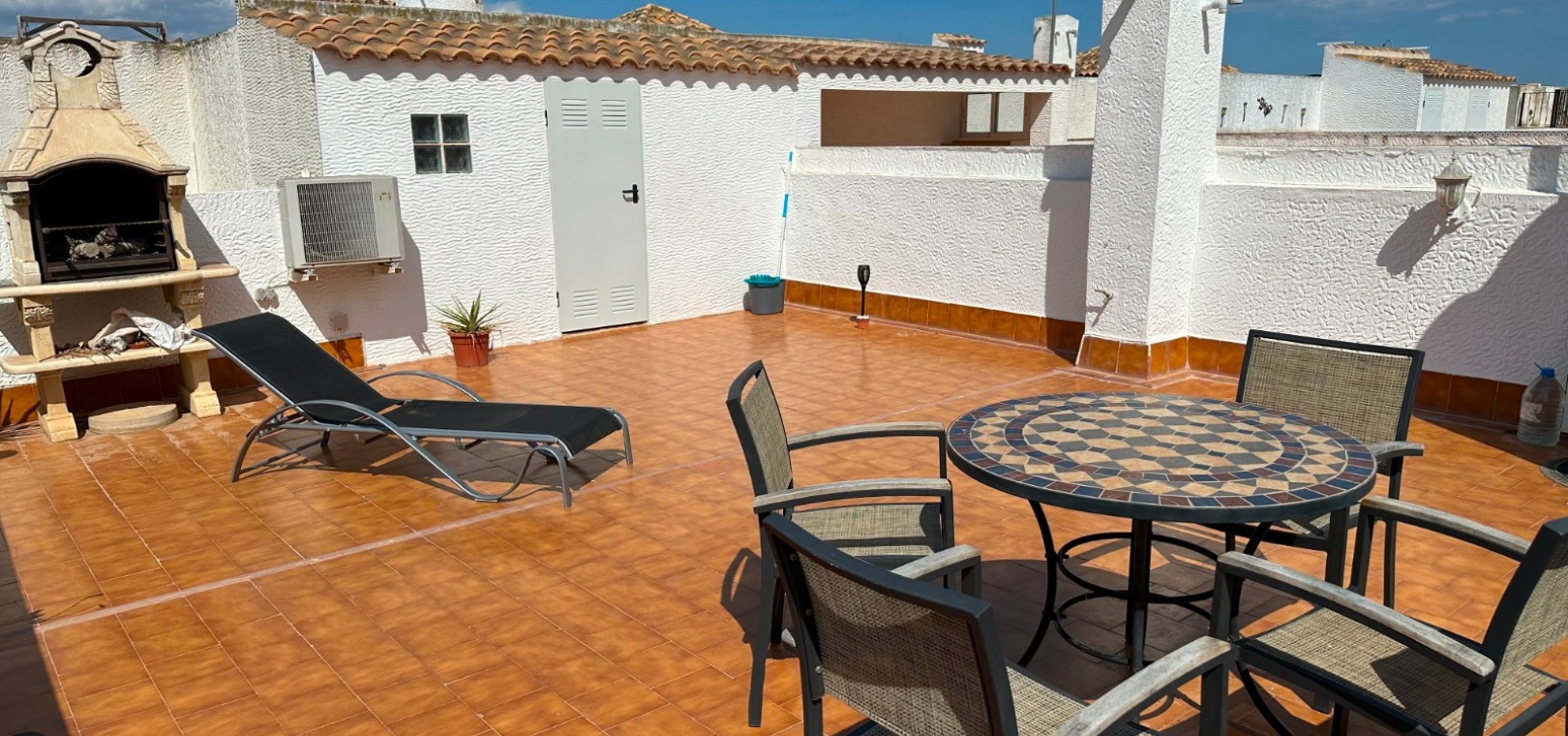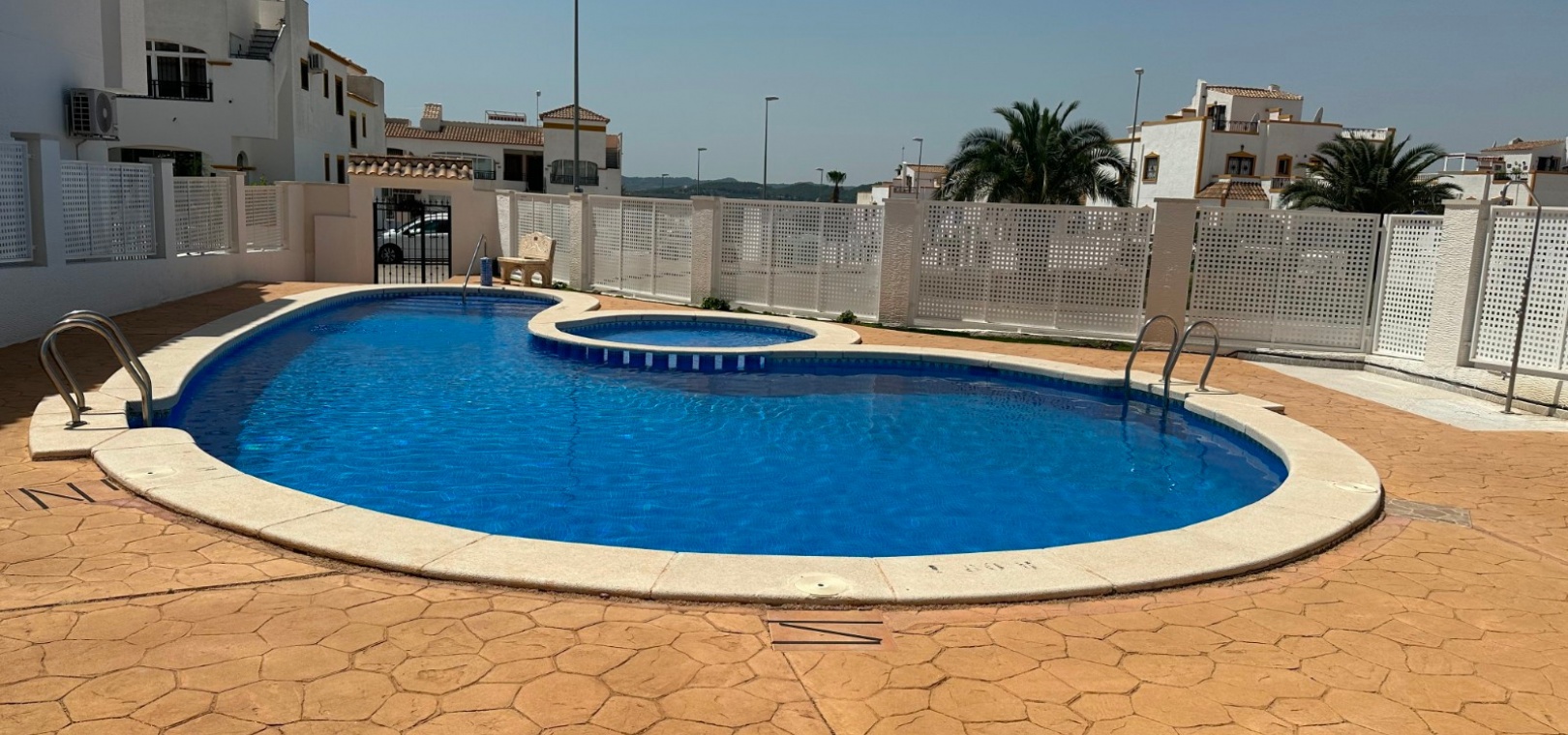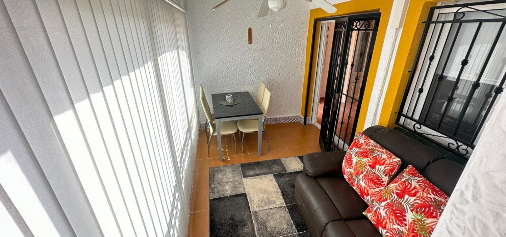 En lägenhet i söderläge med 2 sovrum och 1 badrum på översta våningen i Entre Naranjos (Vistabella Golf), Los Montesinos, Costa Blanca. Denna härliga fastighet säljs i gott skick, säljs möblerad och består mycket kortfattat av följande:- Lounge/matsal, separat fullt utrustat kök, 2 x dubbelrum båda med inbyggda garderober, ett av sovrummen har varmt och kallt A /C, 1 x familjebadrum, inglasad balkong utanför loungen, ett stort privat takterrass med ett förråd, 2 x härliga gemensamma pooler och gemensam parkering. Denna fastighet ligger bara några minuters promenad till två små kommersiella centra där du hittar barer, restauranger, ett apotek och en stor mataffär. Den nya golfbanan Vistabella ligger bara 500 meter bort. De vackra gyllene stränderna vid Guardamar ligger mindre än 20 minuters bilresa bort och det är cirka 35 minuters bilresa till Alicantes flygplats och Murcia Corvera flygplats ligger cirka 50 minuter bort.