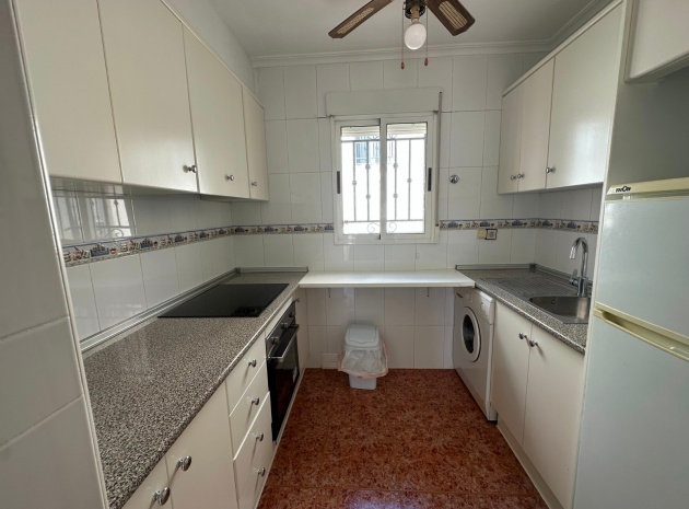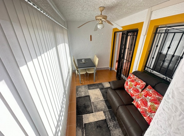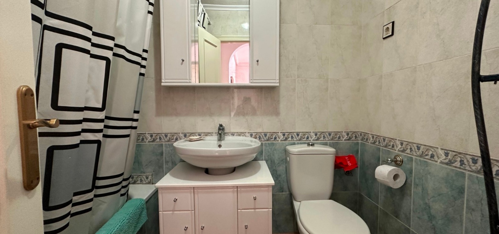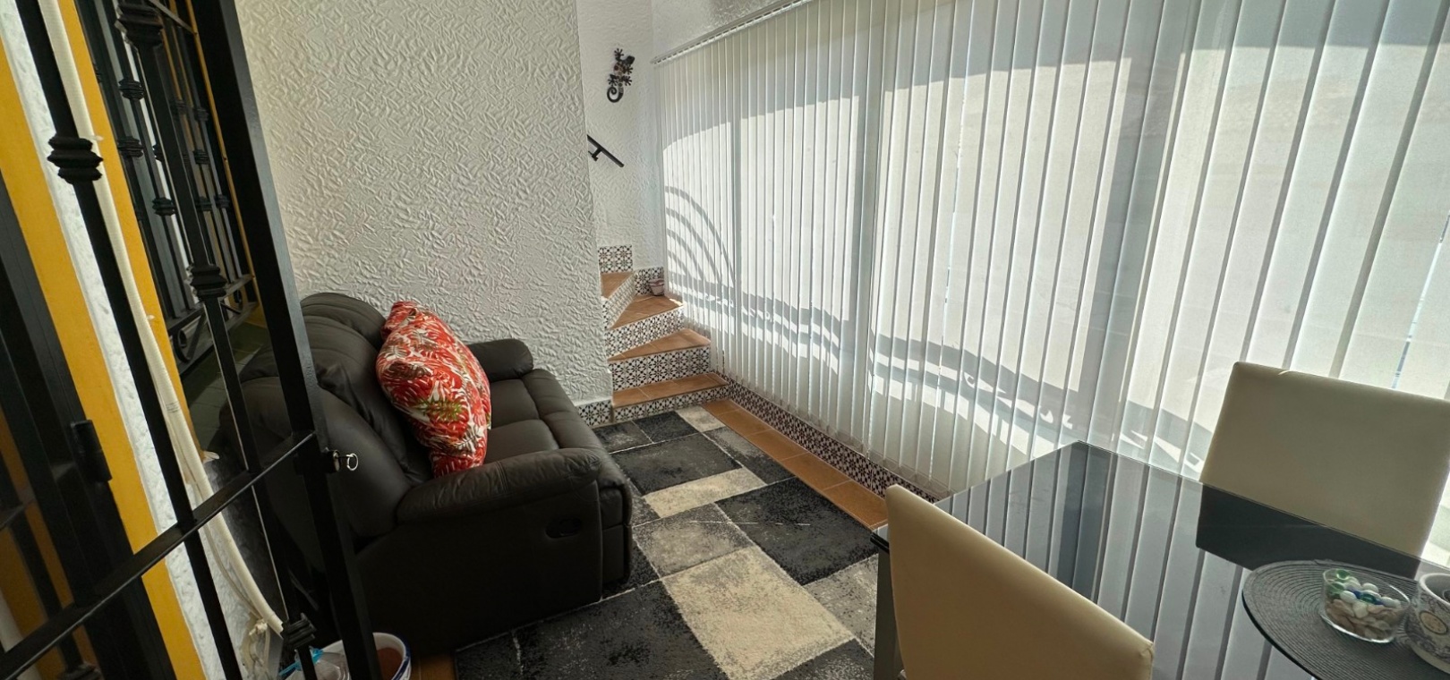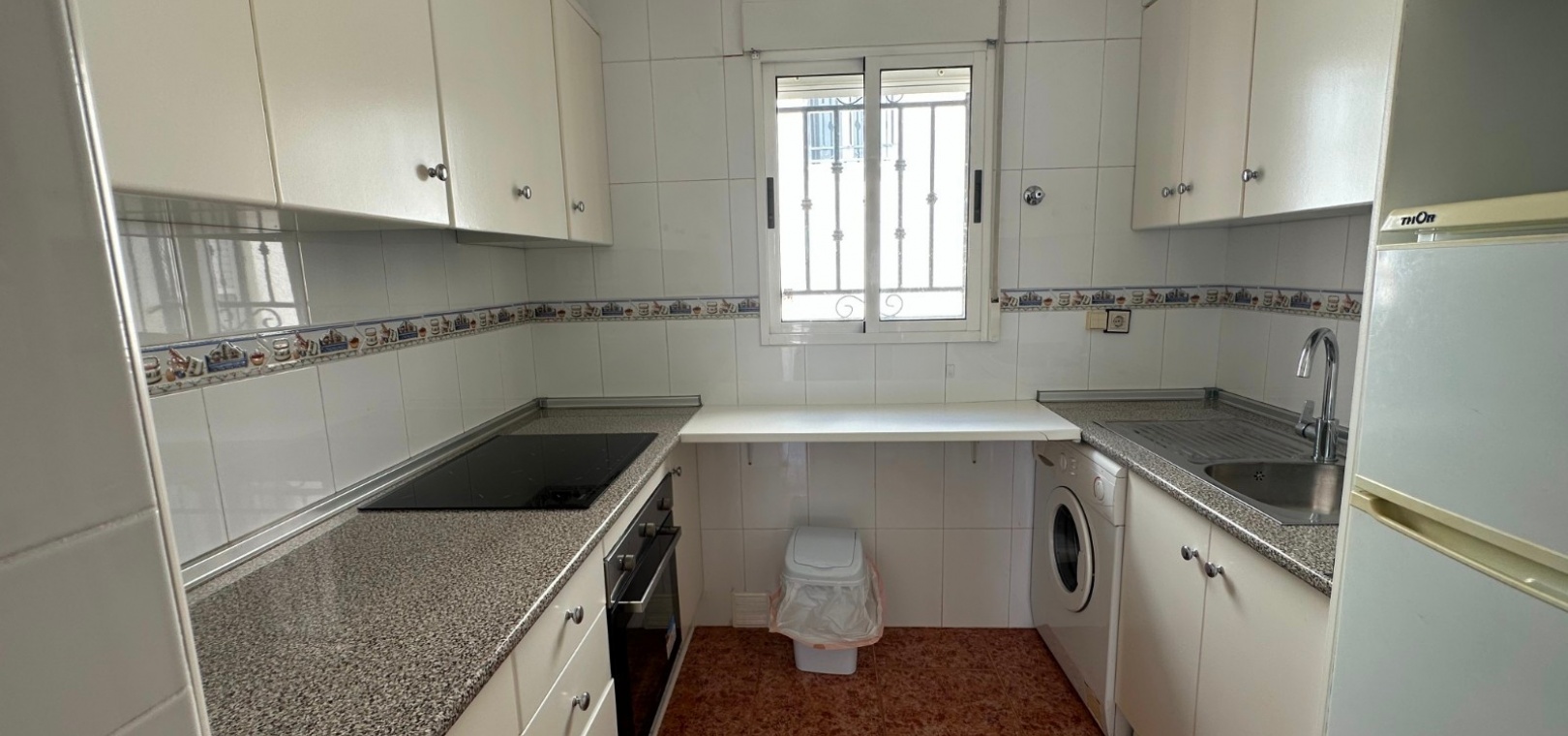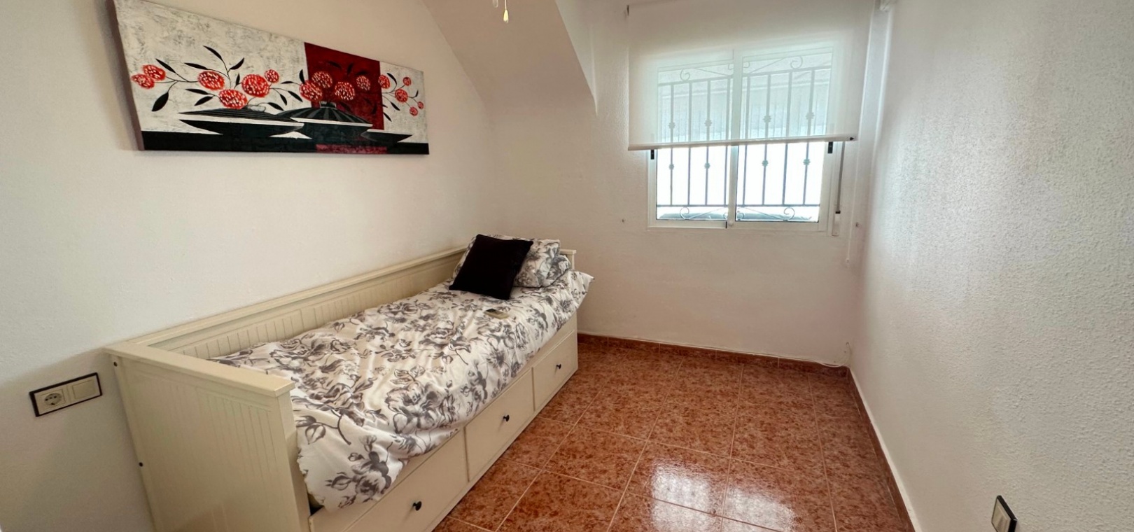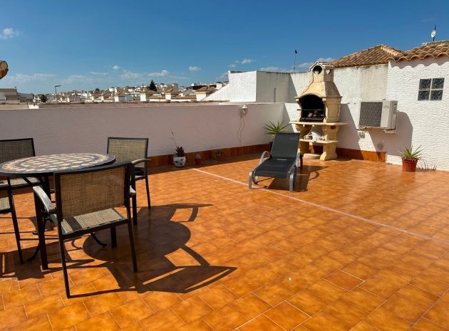 En lägenhet i söderläge med 2 sovrum och 1 badrum på översta våningen i Entre Naranjos (Vistabella Golf), Los Montesinos, Costa Blanca. Denna härliga fastighet säljs i gott skick, säljs möblerad och består mycket kortfattat av följande:- Lounge/matsal, separat fullt utrustat kök, 2 x dubbelrum båda med inbyggda garderober, ett av sovrummen har varmt och kallt A /C, 1 x familjebadrum, inglasad balkong utanför loungen, ett stort privat takterrass med ett förråd, 2 x härliga gemensamma pooler och gemensam parkering. Denna fastighet ligger bara några minuters promenad till två små kommersiella centra där du hittar barer, restauranger, ett apotek och en stor mataffär. Den nya golfbanan Vistabella ligger bara 500 meter bort. De vackra gyllene stränderna vid Guardamar ligger mindre än 20 minuters bilresa bort och det är cirka 35 minuters bilresa till Alicantes flygplats och Murcia Corvera flygplats ligger cirka 50 minuter bort.