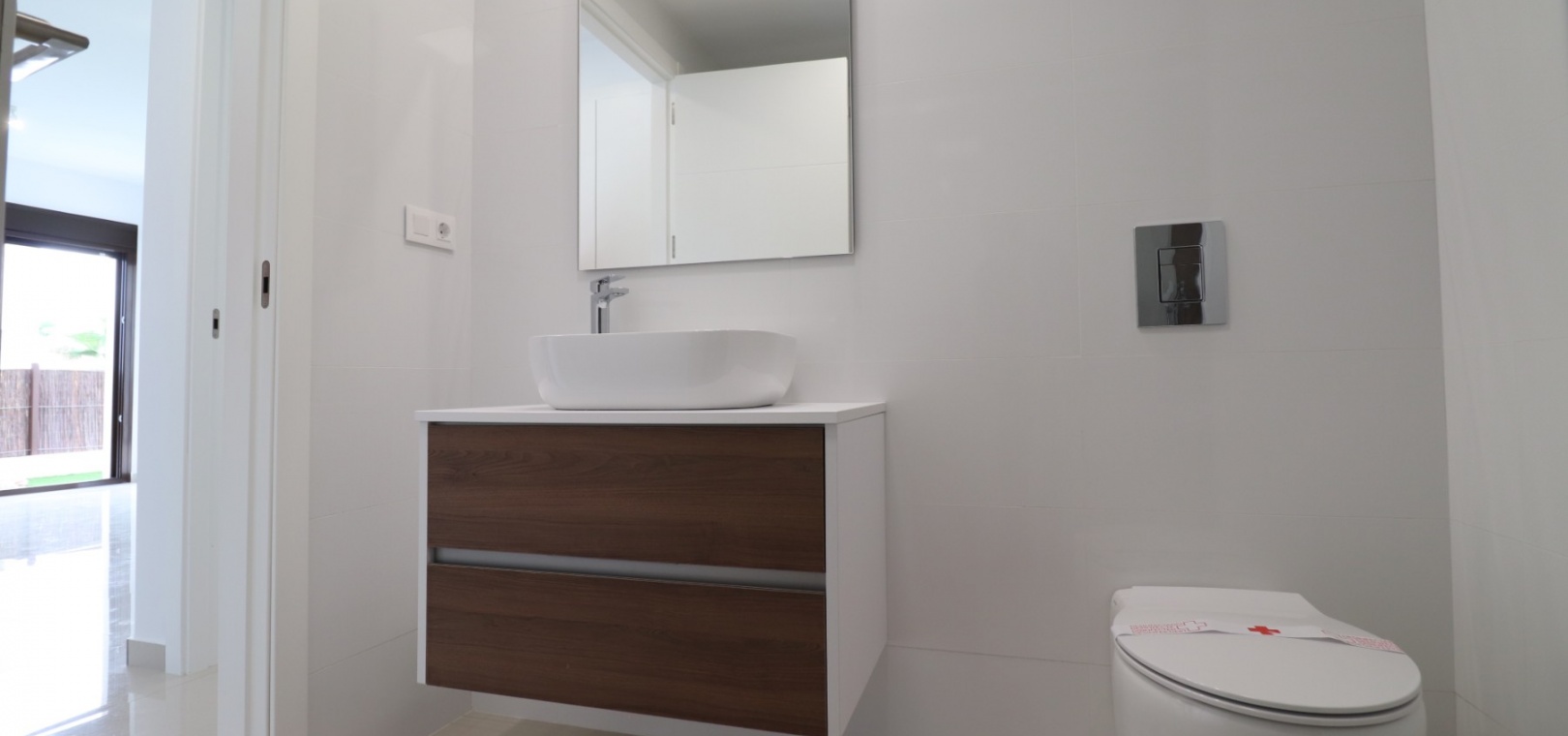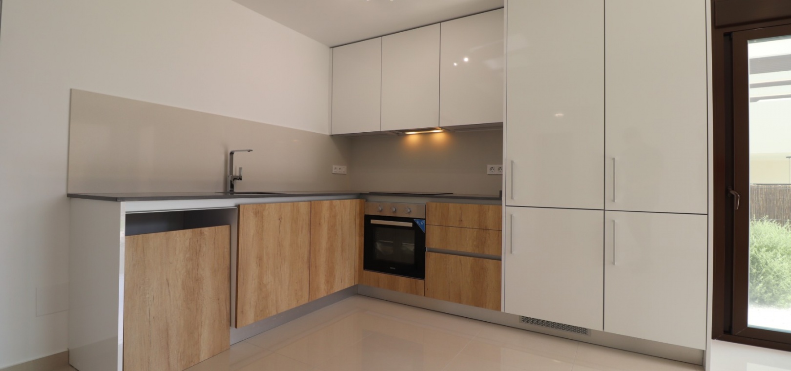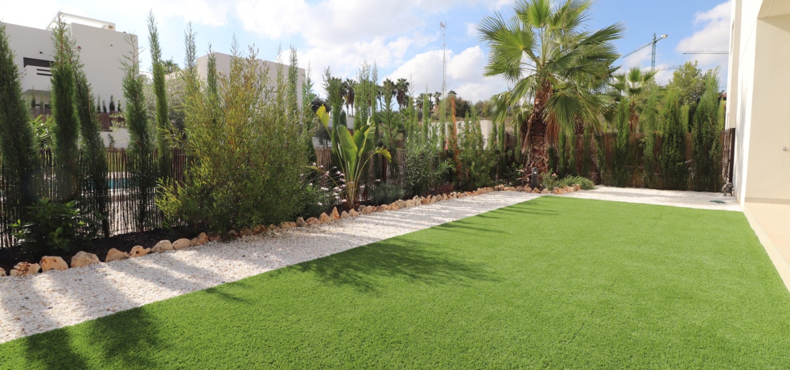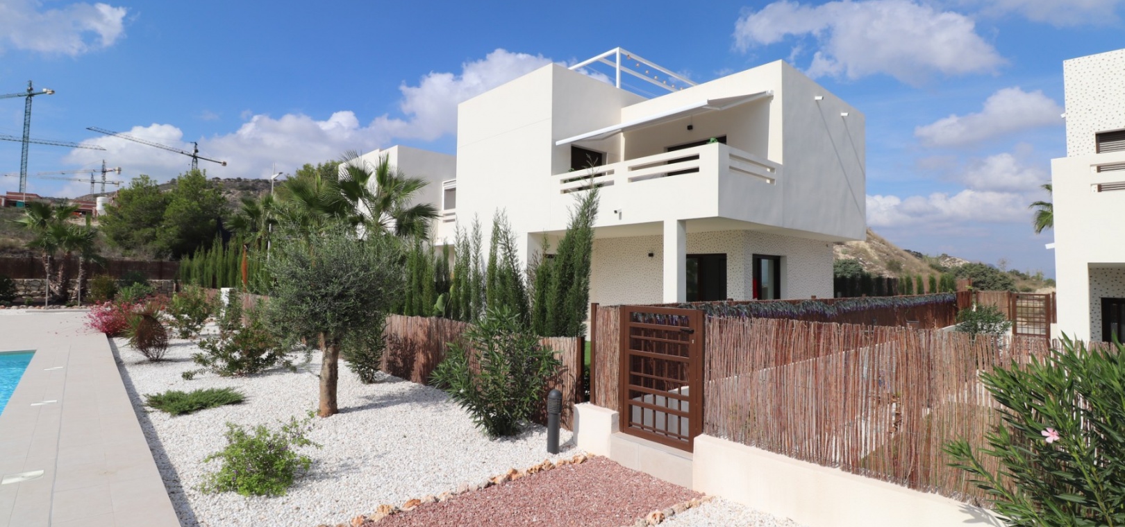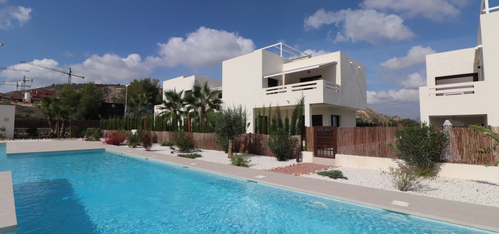 En sydostläge, nästan ny lägenhet med två sovrum, bottenvåningen i La Finca Golf, ett 5* hotell, spa och golfresort, beläget bara 4-5 minuters bilresa till olika populära restauranger, bistro, barer, butiker, som ligger på ingången till resorten. Den närmaste byn är Algorfa, med den stora staden Almoradí bara 5 minuters bilresa och Benijofar och Quesada 10 minuter. Kusten kan nås på 15-20 minuter. Lägenheten är bara 12 månader gammal och ligger i en säker gated community så erbjuder alla "nybyggda" kvaliteter och består av: rymlig täckt terrass; öppen planlösning med dubbla skjutdörrar som leder ut till trädgården; utrustat kök; två dubbelrum med inbyggda garderober, master med tillgång ut till trädgården och ett eget duschrum; ytterligare modernt familjeduschrum. Fastigheten upptar en fantastisk 224m2 anlagd tomt, som har klappats och lagts med konstgräs, med planterad bård. Det fantastiska modernt designade gemensamma poolområdet ligger framför fastigheten och extrafunktioner inkluderar förinstallerad luftkonditionering, elektriska persienner, CCTV, bevattningssystem.