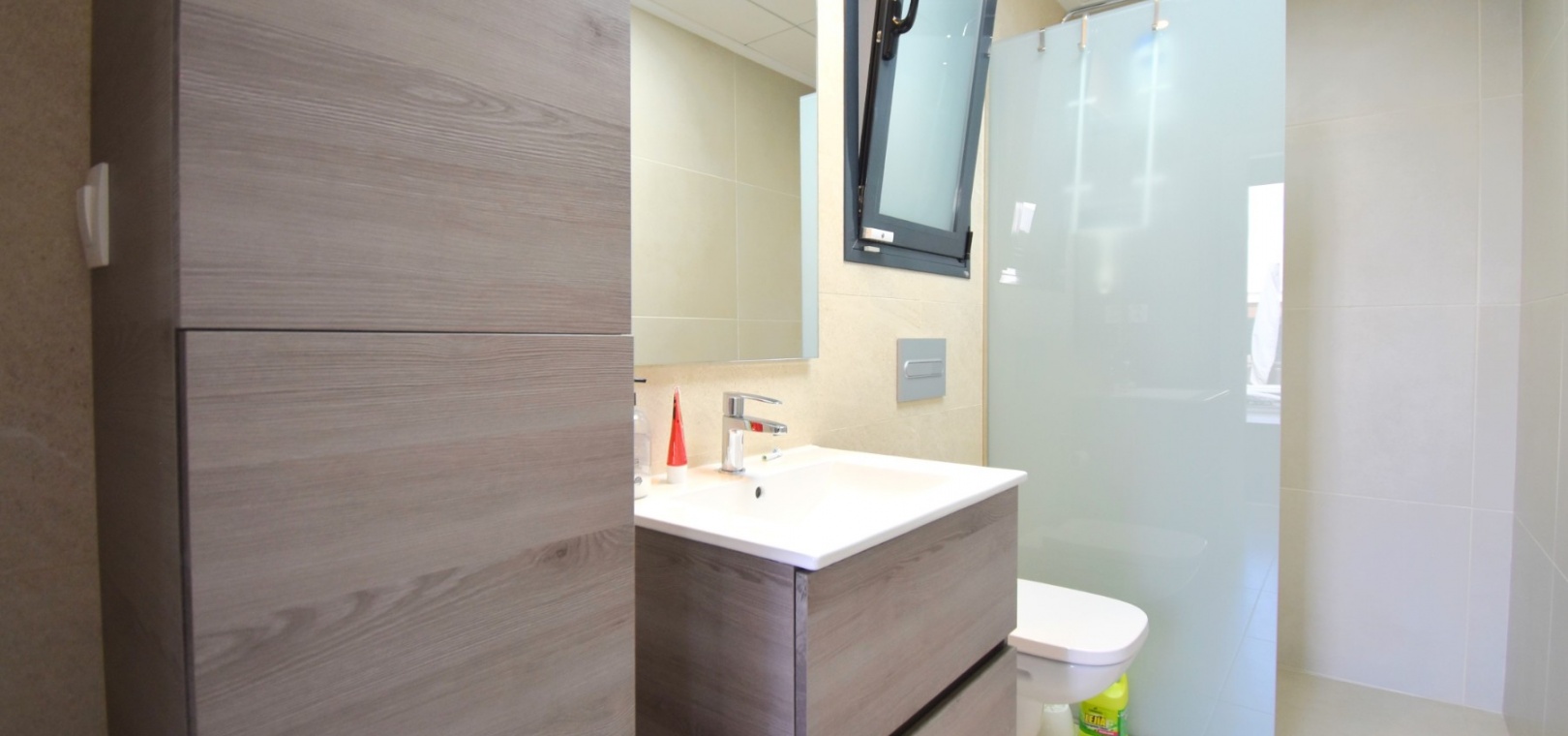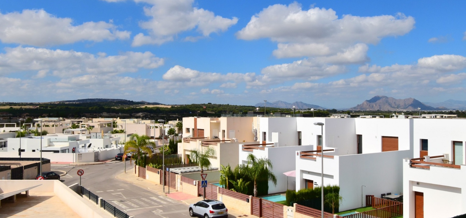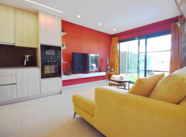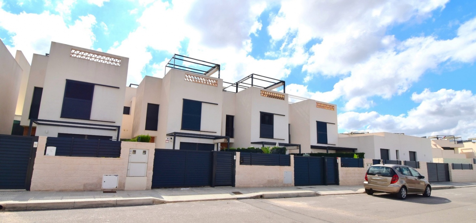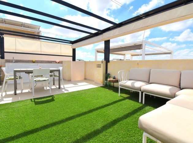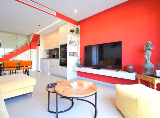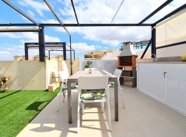 Denna nästan nya, fristående villa med två sovrum, i Benijofar, ligger i utkanten av staden men ändå bara fem-tio minuters promenad till centrum. Benijofar erbjuder stormarknader, apotek, bageri, bank, affärer, barer, restauranger (inklusive McDonalds), skola, vårdcentral, kommunal idrottsplats och pool. Närmaste strand kan nås på tio minuters bilresa, med närmaste golfbana kurs på La Marquesa, bara fem minuter bort. Denna moderna fastighet som byggdes för bara tre år sedan erbjuder vardagsrum med öppen planlösning, med trappor som leder upp till första våningen och breda skjutdörrar som leder ut till trädgården; köksdel som är anpassad till en modern spec, dörr som leder utanför; familjens duschrum. På första våningen finns två dubbelrum och ytterligare ett modernt duschrum; fantastiskt stort solarium, delvis lagt med konstgräs, kök/grillplats. Trädgården har anlagts med asfalterad biltillgång, privat pool med konstgräs. Extra som ingår i detta vackra hem inkluderar luftkonditionering, elektriska persienner, elektrisk grind, bevattningssystem, förråd.