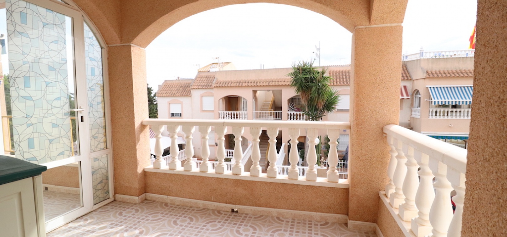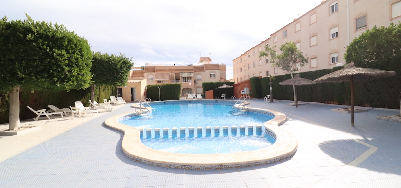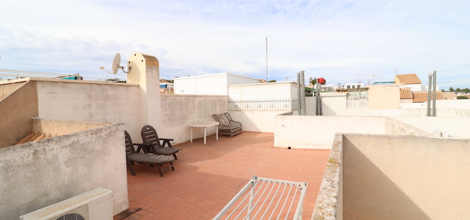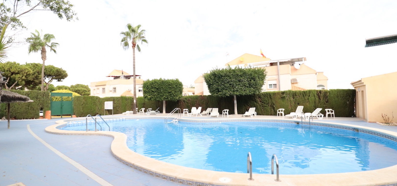 En lägenhet med 2 sovrum och 1 badrum på översta våningen med ett privat takterrass i Lago Sol, Los Balcones, Costa Blanca. Denna härliga fastighet säljs i gott skick, säljs möblerad och består mycket kortfattat av följande:- Lounge/matsal med varm och kall A/C, öppen planlösning fullt utrustat kök, 2 x dubbelrum, det stora sovrummet har inbyggda garderober , 1 x familjebadrum, balkong utanför loungen, stort privat taksolarium, gemensam pool och mycket mer. Alla bekvämligheter finns inom 10 minuters promenad och det är cirka 10 minuters bilresa till havet. Alicantes flygplats ligger 50 minuter bort och det är cirka 10 minuters bilresa till 4 golfbanor.