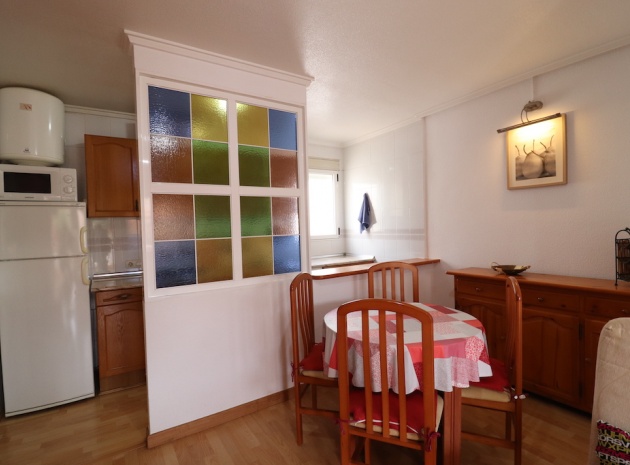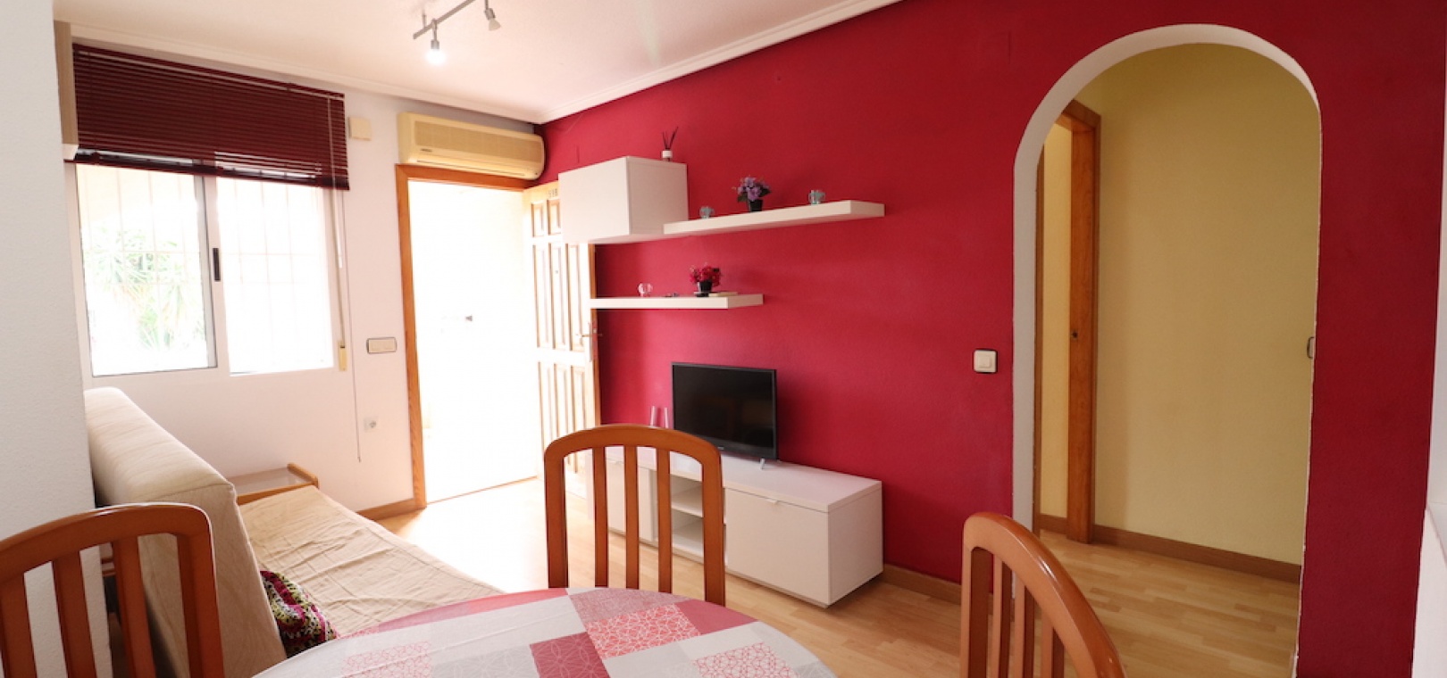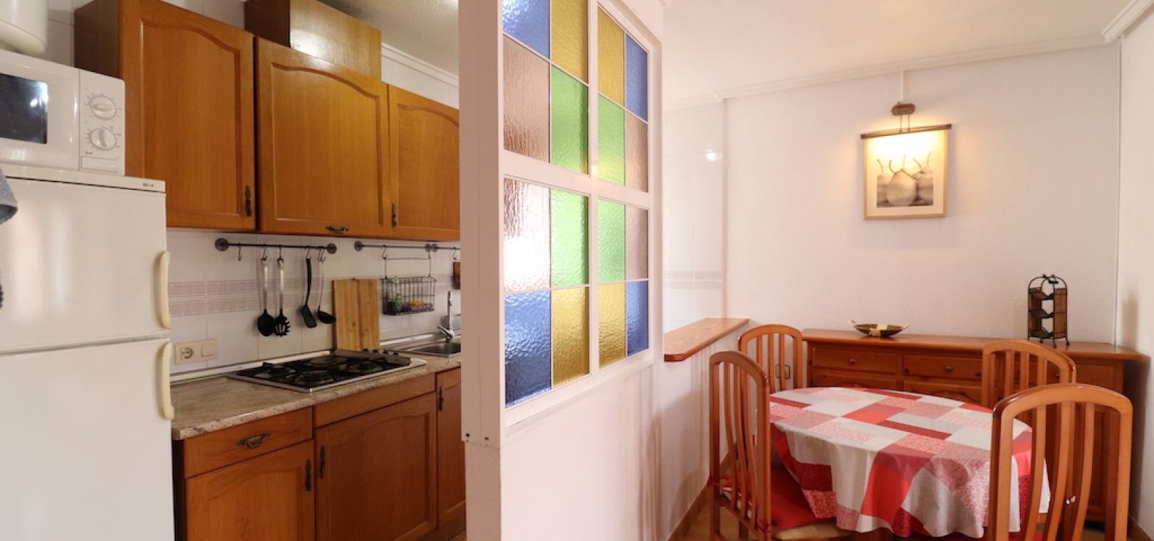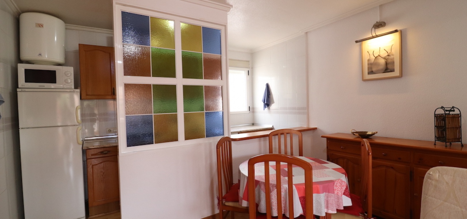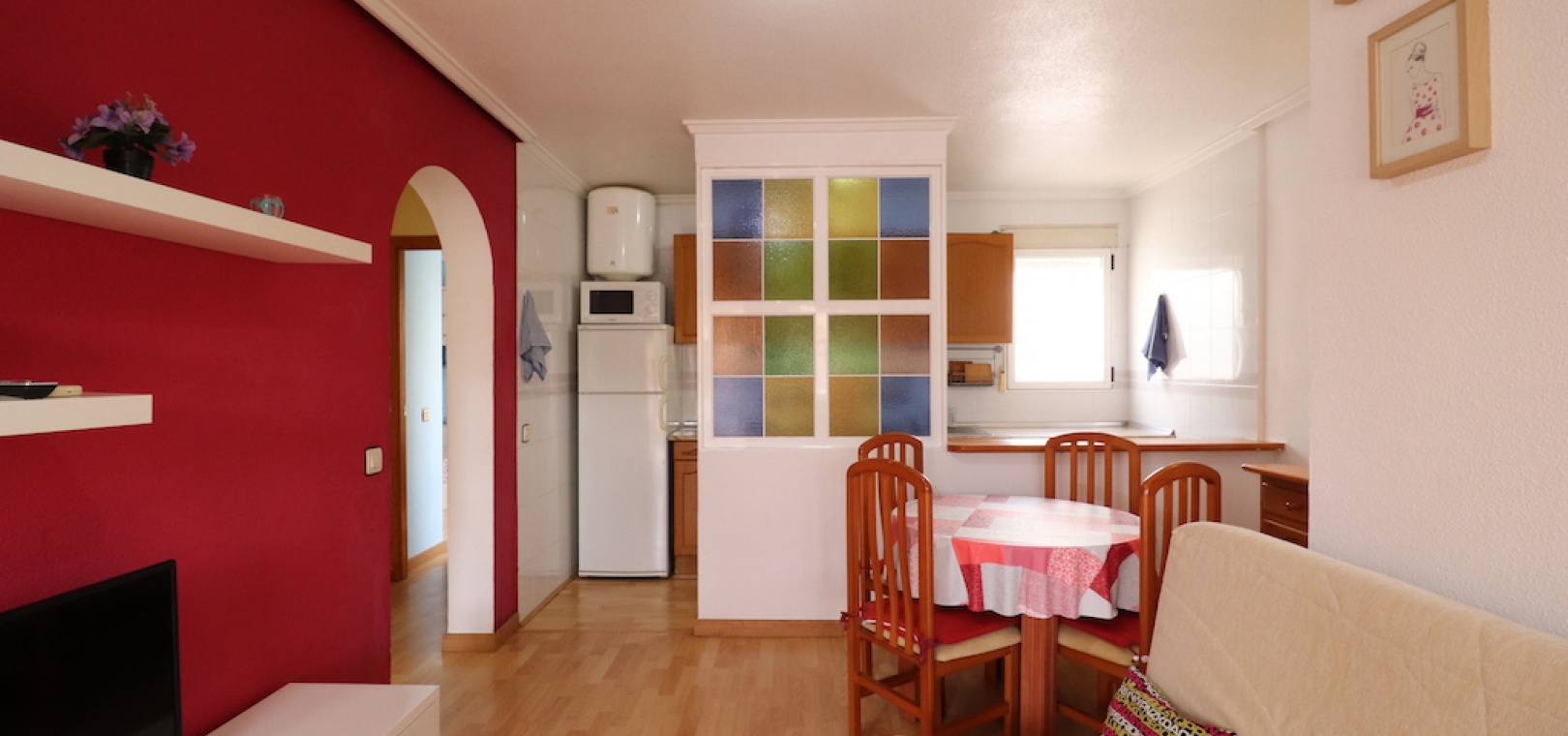 En lägenhet med 2 sovrum och 1 badrum på översta våningen med ett privat takterrass i Lago Sol, Los Balcones, Costa Blanca. Denna härliga fastighet säljs i gott skick, säljs möblerad och består mycket kortfattat av följande:- Lounge/matsal med varm och kall A/C, öppen planlösning fullt utrustat kök, 2 x dubbelrum, det stora sovrummet har inbyggda garderober , 1 x familjebadrum, balkong utanför loungen, stort privat taksolarium, gemensam pool och mycket mer. Alla bekvämligheter finns inom 10 minuters promenad och det är cirka 10 minuters bilresa till havet. Alicantes flygplats ligger 50 minuter bort och det är cirka 10 minuters bilresa till 4 golfbanor.