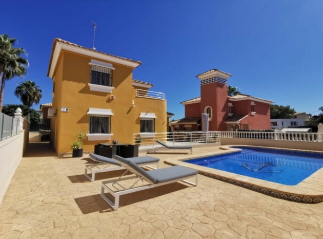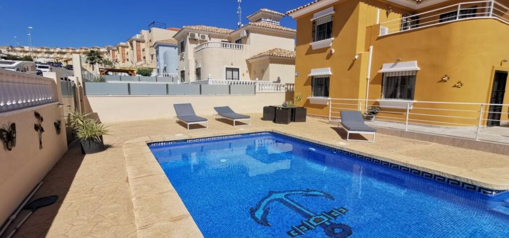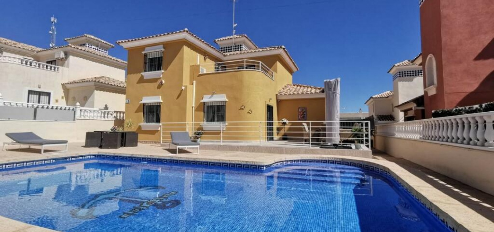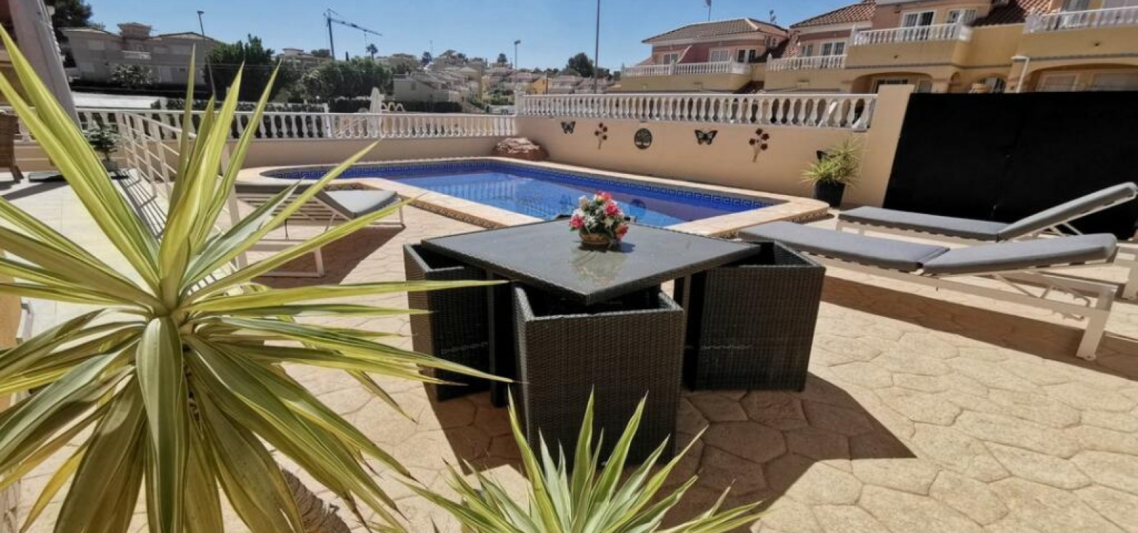 En fristående villa med 3 sovrum och 2 badrum i sydvästläge med en privat pool belägen i El Galan, Villamartin, Costa Blanca.