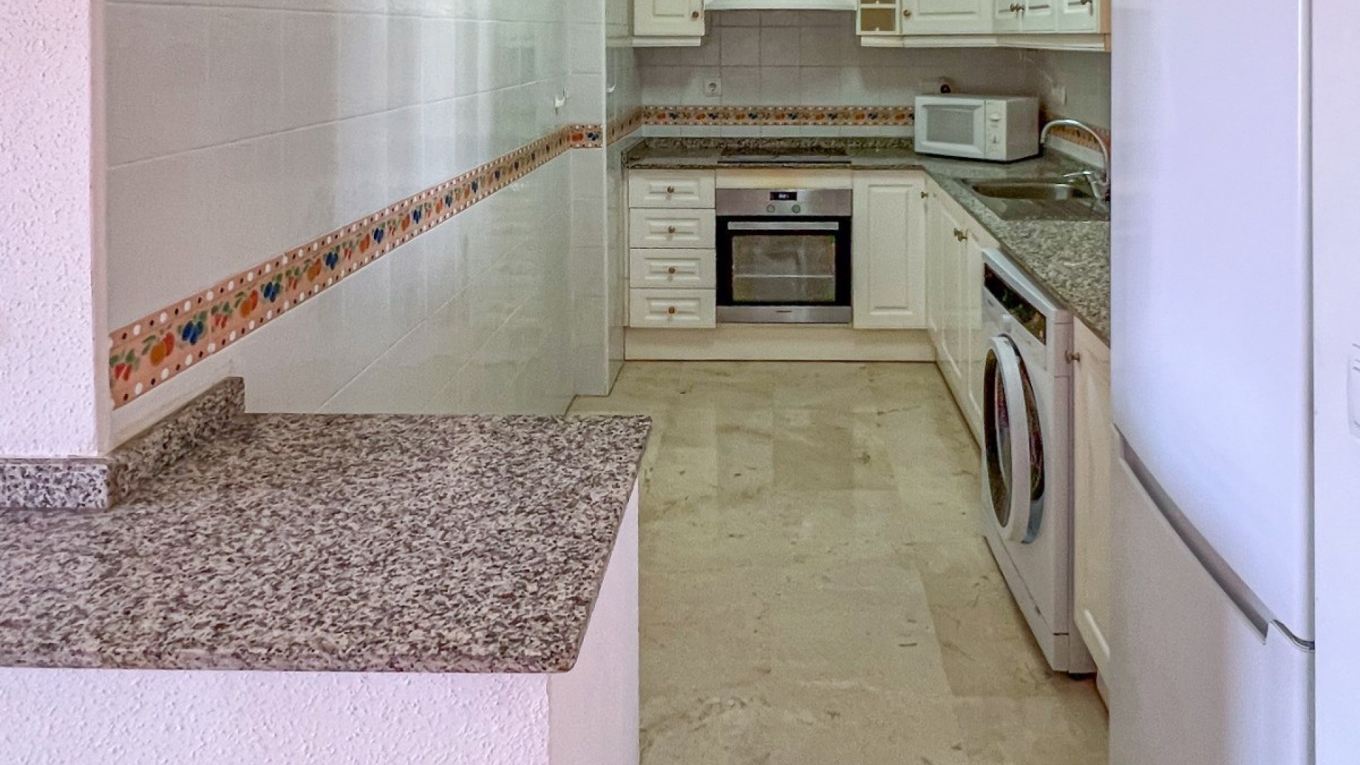 Vardagsrum/matsal med takfläkt och balkong, fullt utrustat kök i öppen planlösning, 2 x dubbelrum båda med inbyggda garderober, det största sovrummet har ett eget duschrum, 1 x familjebadrum, gemensamt takterrass, härlig gemensam pool & trädgårdar, säker gated community med gemensam off-road parkering, tillgång till hiss till alla våningar och mycket mer.