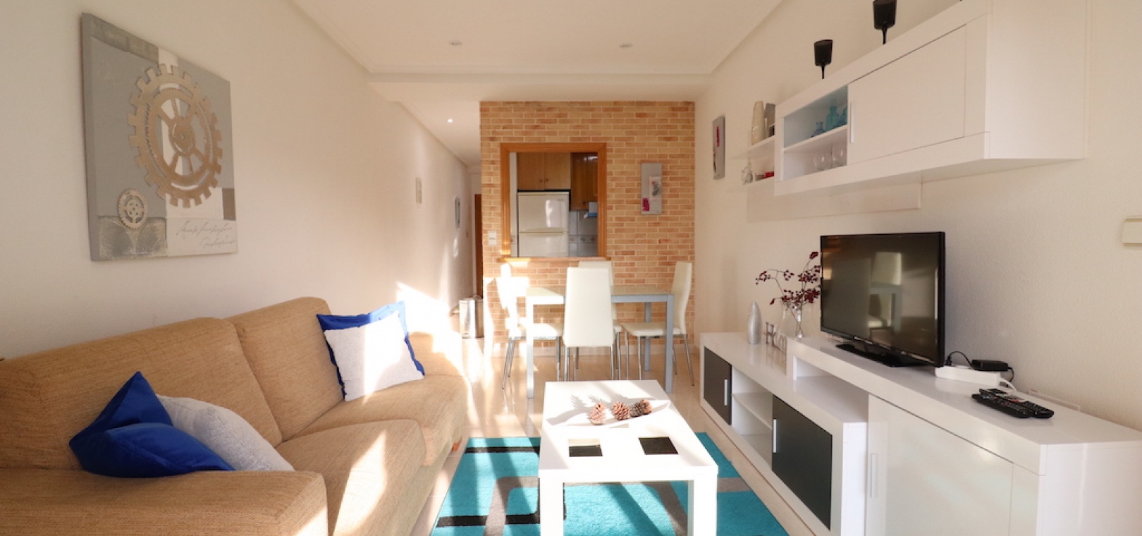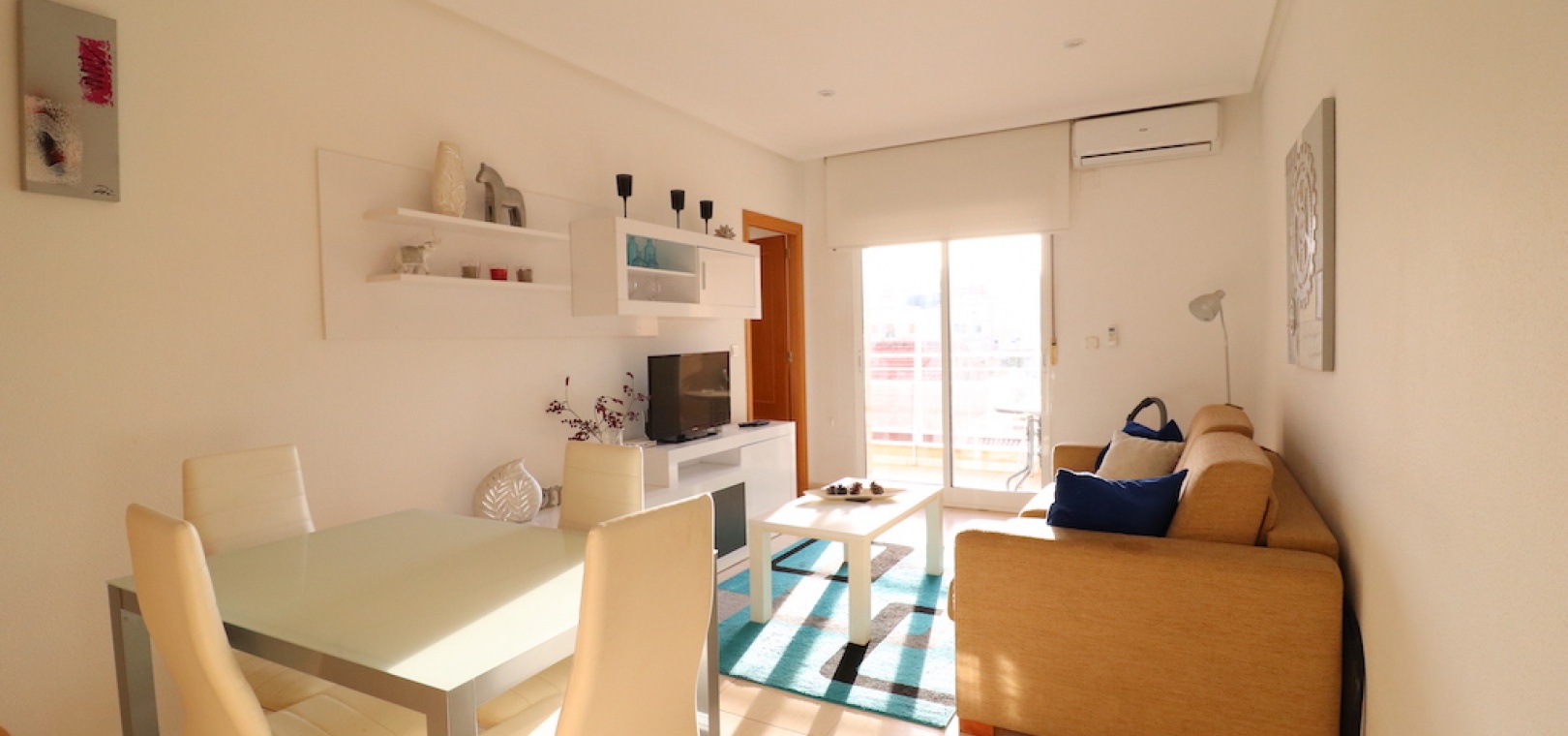 En söderläge lägenhet med 2 sovrum och 1 badrum på andra våningen bara 300 meter från havet belägen i Torrevieja, Costa Blanca South. Denna fastighet säljs i gott skick, säljs möblerad och består mycket kort av följande: - Lounge/matsal med varm och kall luftkonditionering, kök med öppen planlösning, 2 x dubbelrum, 1 x familjebadrum, balkong utanför vardagsrummet , säker gated community, gemensam hiss, underjordisk parkeringsplats, turistlicens och mycket mer. Denna fastighet ligger bara 300 meter från stranden och bara en kort promenad från lokala barer, butiker och restauranger. Denna fastighet har inte tillgång till en gemensam pool. Alicantes flygplats ligger cirka 40 minuters bilresa bort.