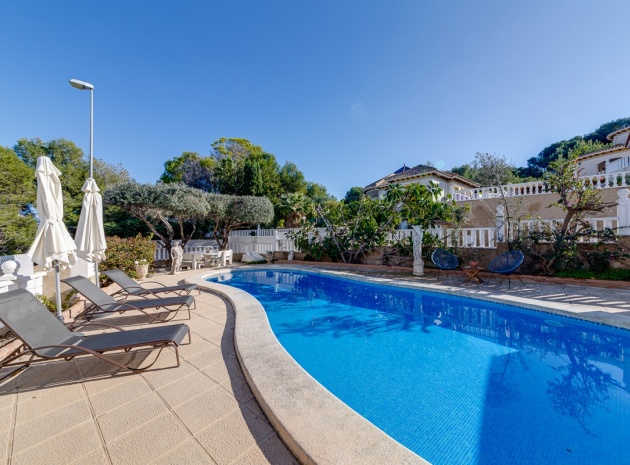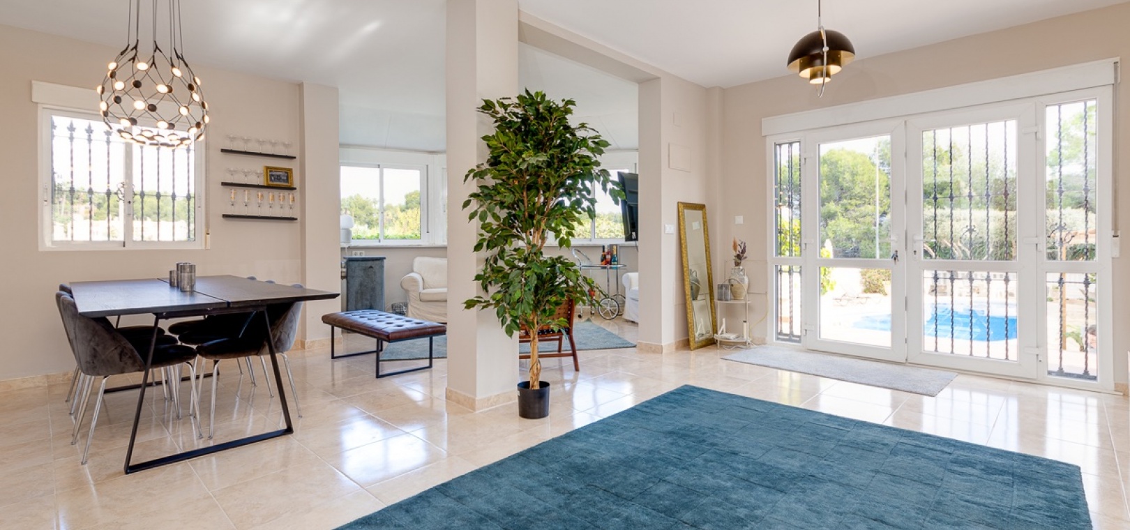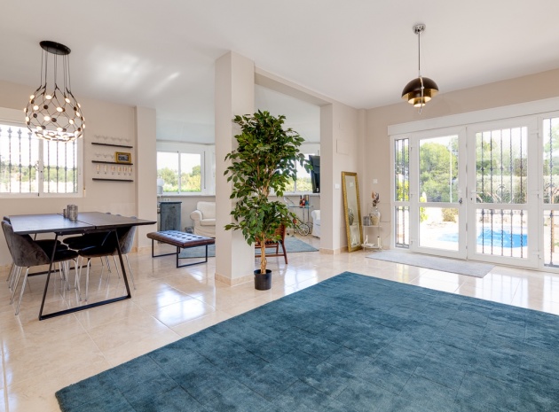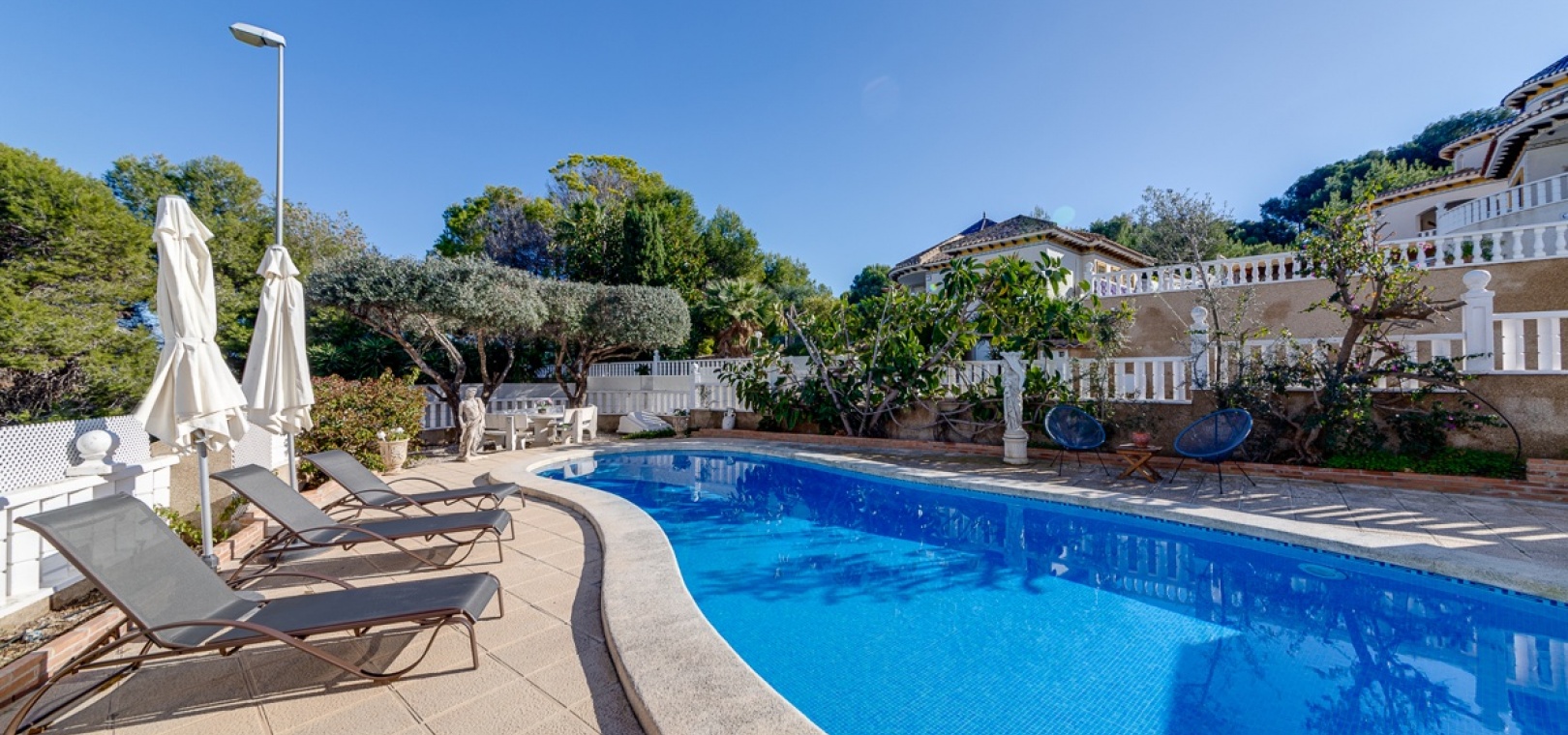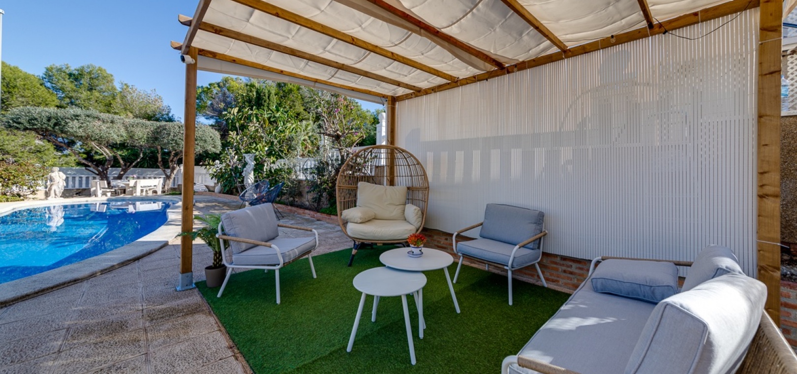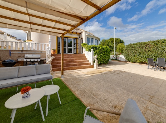 En fristående villa med 4 sovrum och 2 badrum med privat pool på en stor 550m2 tomt belägen i Pinada Golf I, Villamartin, Costa Blanca.