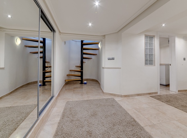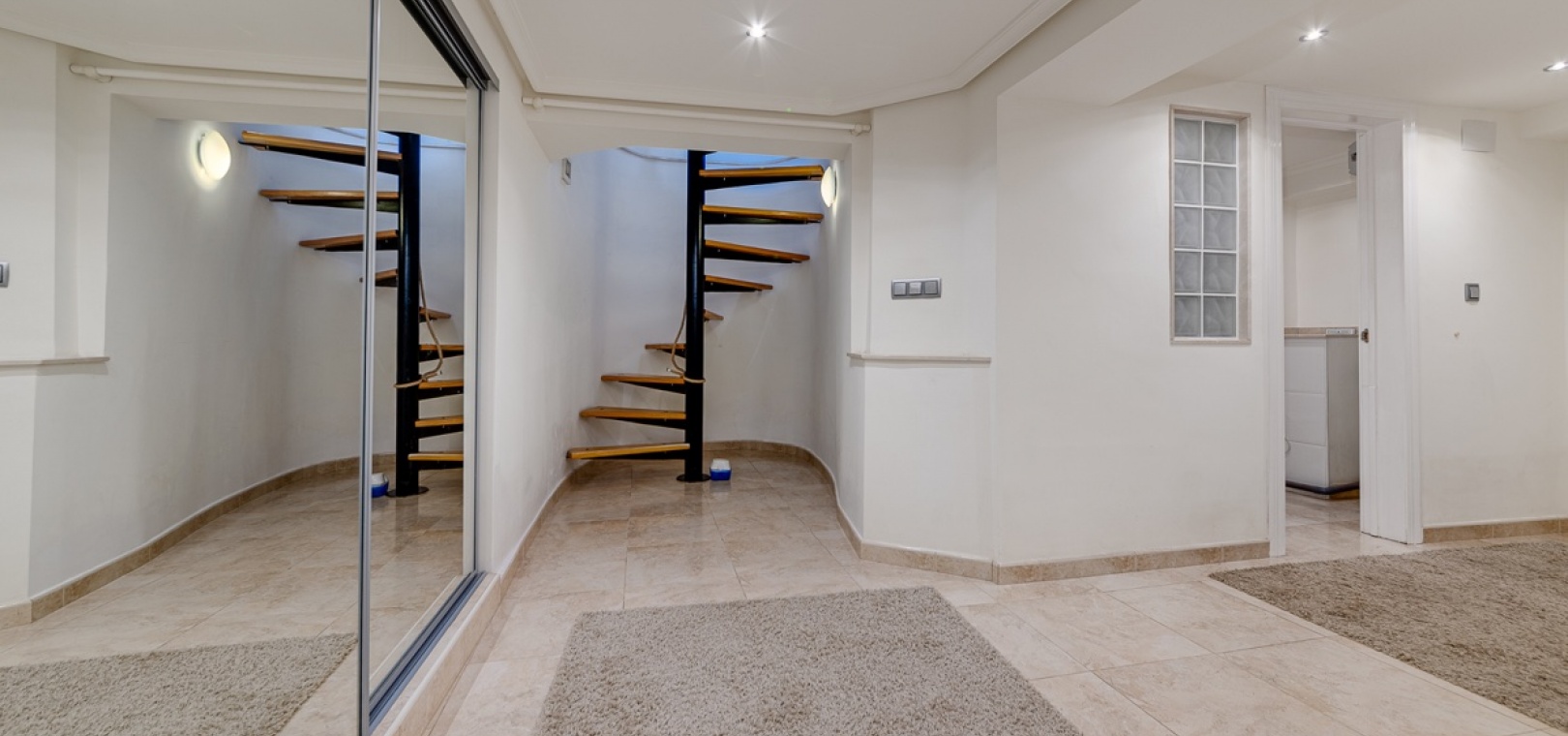 Intern trappa leder ner till en stor underbyggd med 2 x sovrum och invändiga trappor leder upp till ett privat takterrass.