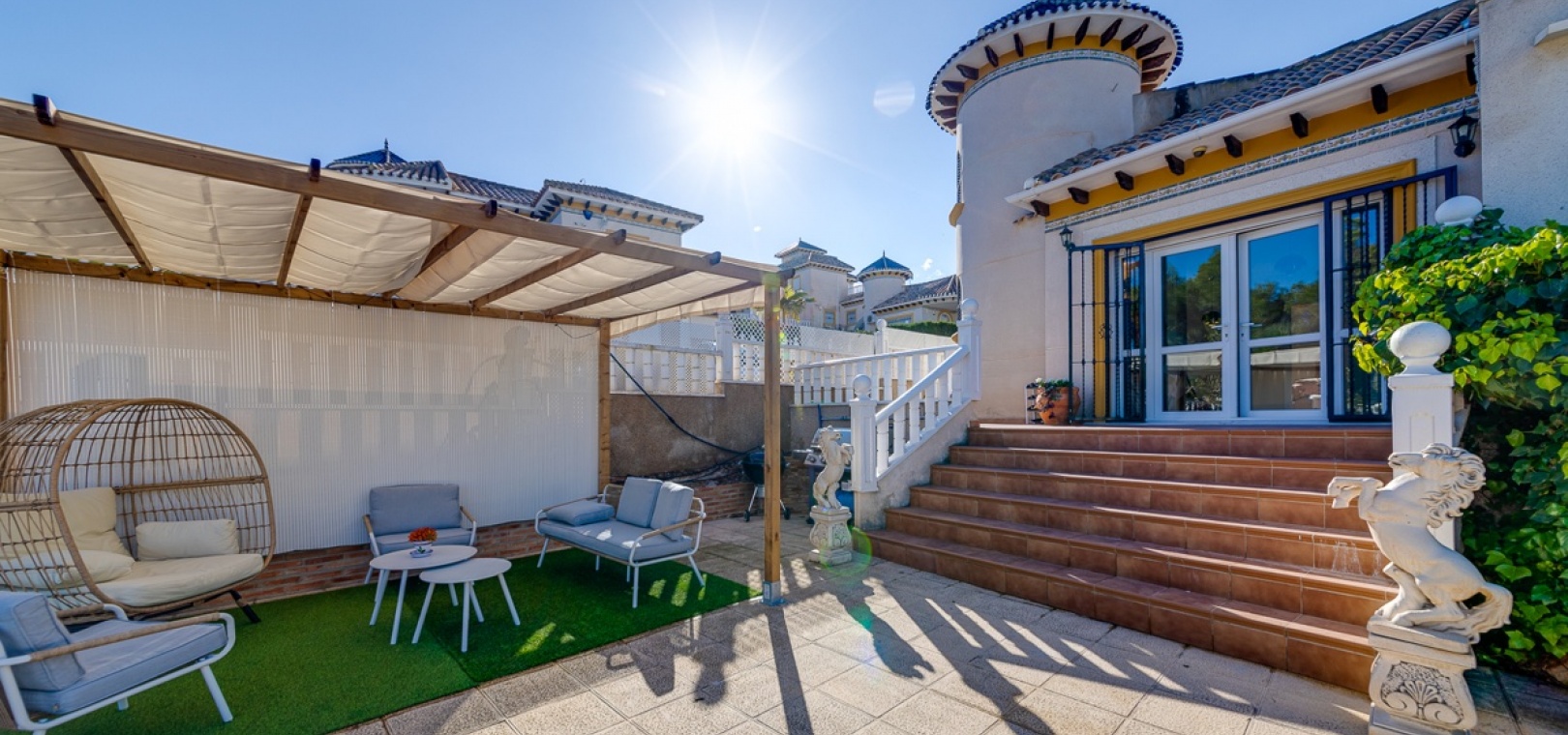Den här fastigheten har ett lugnt läge men det är bara 5 minuters promenad till lokala barer och restauranger och cirka 10 minuters promenad till den berömda Villamartin Plaza & Golf Course där du hittar många barer, butiker, restauranger, banker, snabbköp etc. Det är 5 minuters bilresa till stranden La Zenia och det enorma köpcentret Zenia Boulevard. 35 minuters bilresa till Murcia Corvera flygplats och cirka 45 minuters bilresa till Alicantes flygplats. Denna fastighet har ett idealiskt, centralt läge för golf med golfbanorna Villamartin, Campoamor och Las Ramblas i närheten.