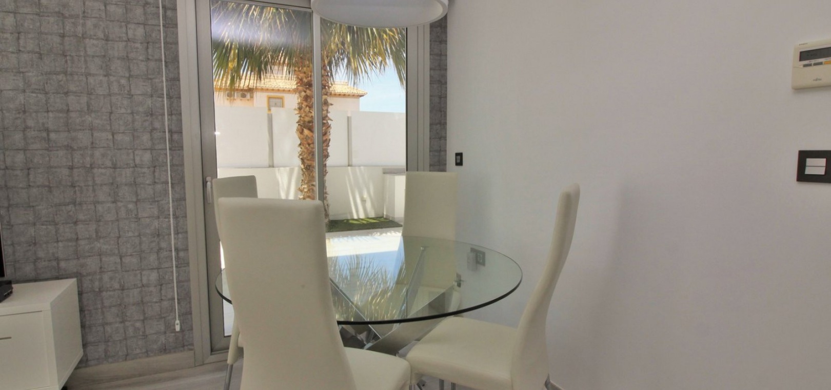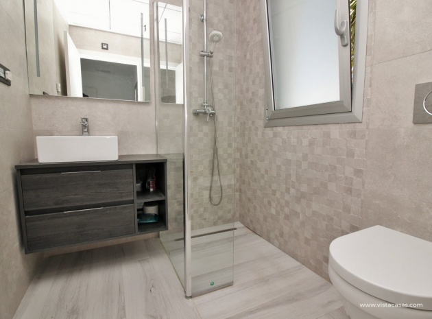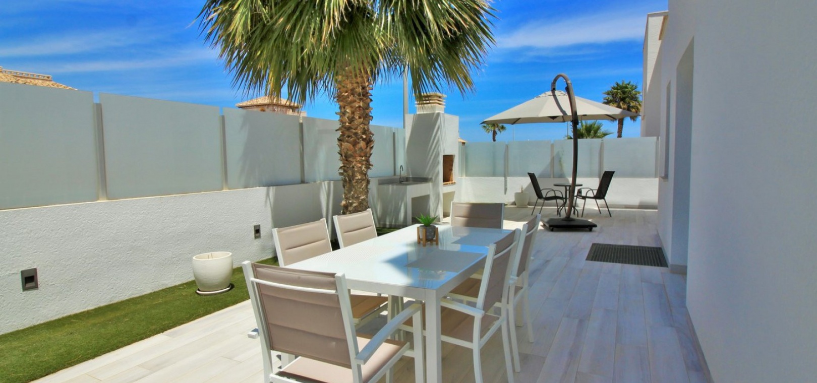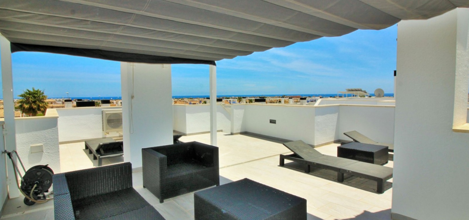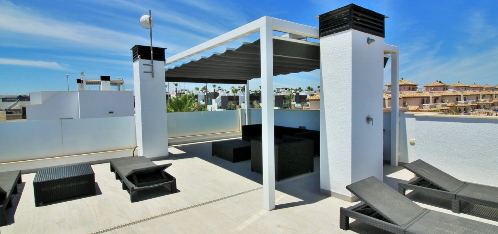 Fantastisk modern design 4 sovrum 4 badrum fristående villa med privat pool belägen i Lomas de Cabo Roig, Costa Blanca. Denna underbara fastighet bjuds ut till försäljning i mycket gott skick och består mycket kortfattat av följande: - På bottenvåningen finns ett rymligt vardagsrum / matsal med direkt tillgång till den privata poolen, kök med öppen planlösning, 1 x dubbelrum med en eget duschrum och 1 x W/C. På första våningen finns 2 x dubbelrum med inbyggda garderober och tillgång till balkonger, 1 x duschrum och ett privat takterrass. Det finns också ett stort underbyggt med 1 sovrum, 1 x badrum och en stor lounge. Utanför finns en uppfart för terrängparkering, privat pool, inventarier och tillbehör av högsta kvalitet i varm och kall A/C, alla möbler av högsta kvalitet är förhandlingsbara och mycket mer. Denna fastighet ligger bara en kort promenad från lokala barer, butiker, restaurang, snabbköp och den lokala busshållplatsen. De gyllene stränderna i Campoamor och Cabo Roig ligger bara några minuters bilresa bort, liksom 4 golfbanor. Köpcentret Zenia Boulevard ligger 5 minuters bilresa bort. Alicantes flygplats ligger 50 minuter bort.