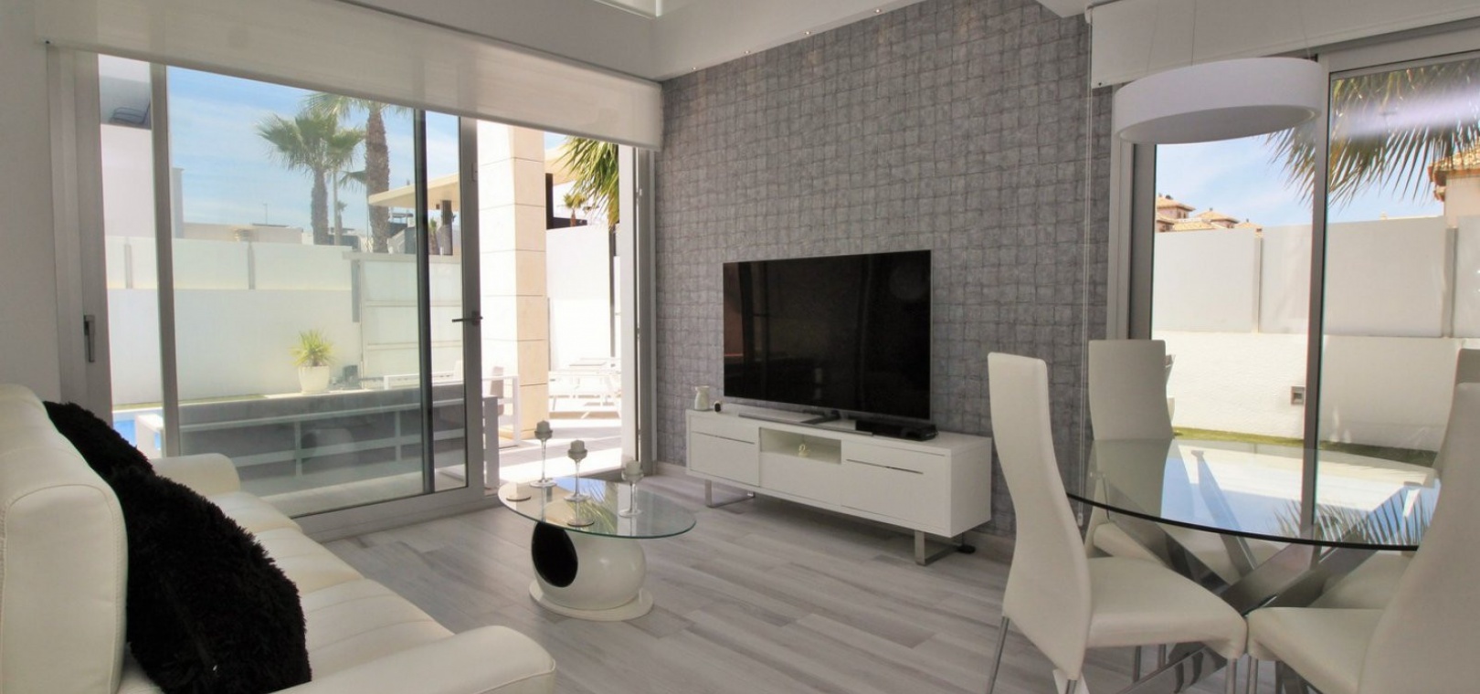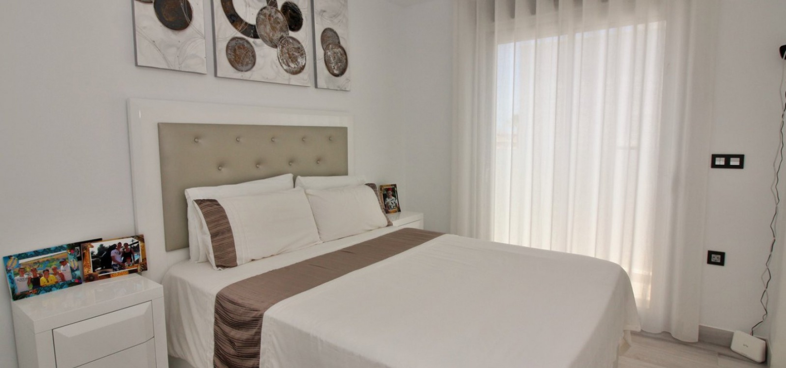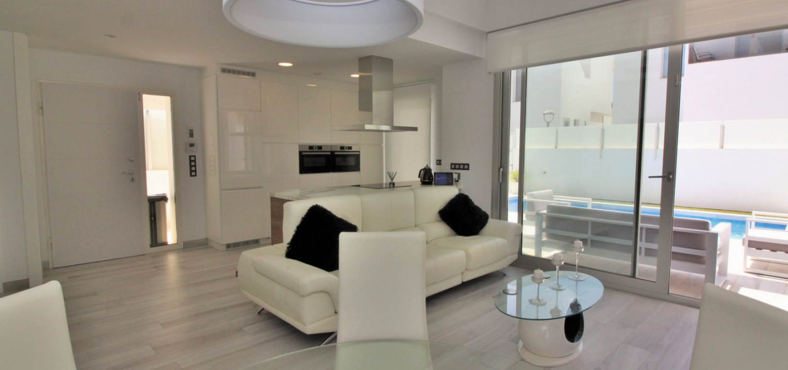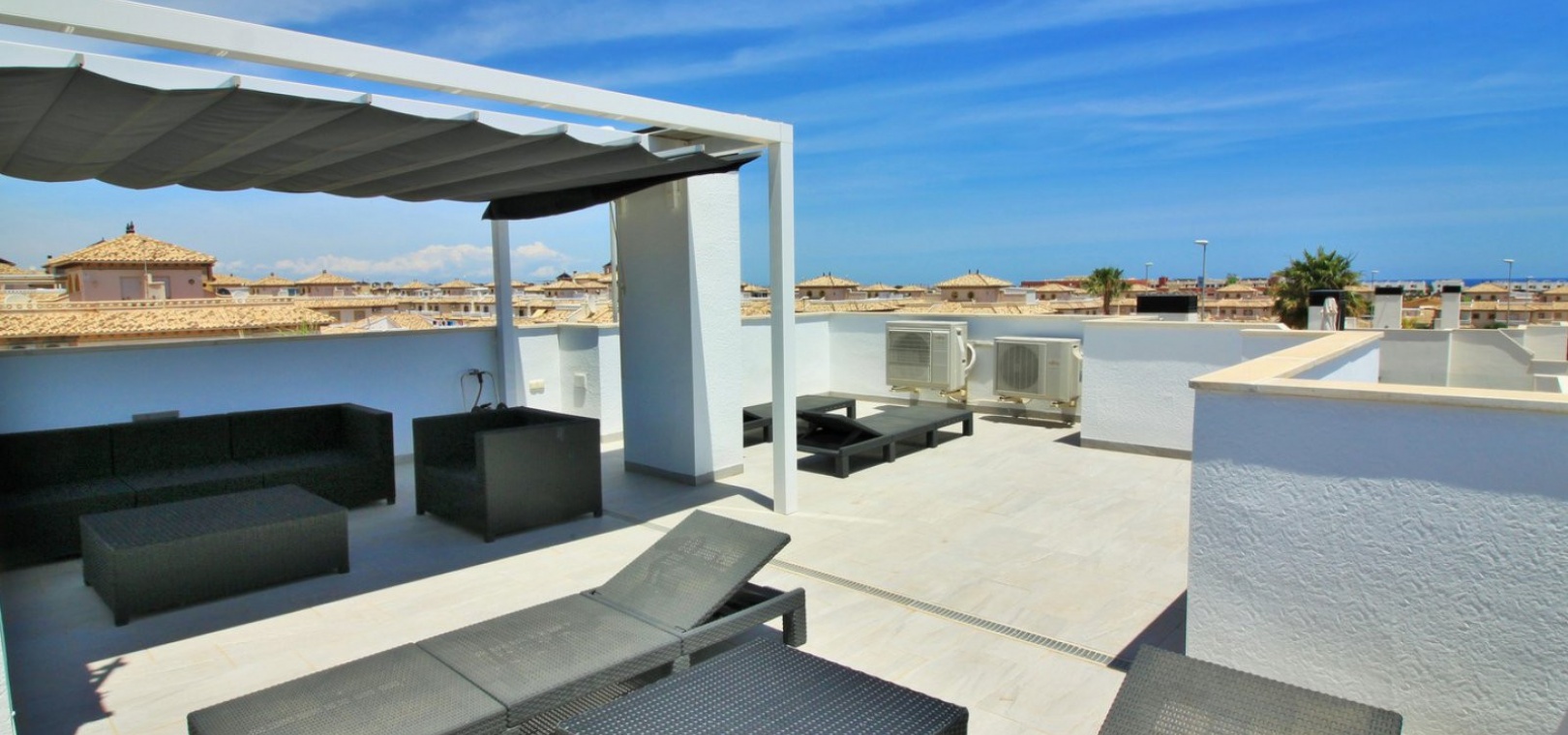 Fantastisk modern design 4 sovrum 4 badrum fristående villa med privat pool belägen i Lomas de Cabo Roig, Costa Blanca. Denna underbara fastighet bjuds ut till försäljning i mycket gott skick och består mycket kortfattat av följande: - På bottenvåningen finns ett rymligt vardagsrum / matsal med direkt tillgång till den privata poolen, kök med öppen planlösning, 1 x dubbelrum med en eget duschrum och 1 x W/C. På första våningen finns 2 x dubbelrum med inbyggda garderober och tillgång till balkonger, 1 x duschrum och ett privat takterrass. Det finns också ett stort underbyggt med 1 sovrum, 1 x badrum och en stor lounge. Utanför finns en uppfart för terrängparkering, privat pool, inventarier och tillbehör av högsta kvalitet i varm och kall A/C, alla möbler av högsta kvalitet är förhandlingsbara och mycket mer. Denna fastighet ligger bara en kort promenad från lokala barer, butiker, restaurang, snabbköp och den lokala busshållplatsen. De gyllene stränderna i Campoamor och Cabo Roig ligger bara några minuters bilresa bort, liksom 4 golfbanor. Köpcentret Zenia Boulevard ligger 5 minuters bilresa bort. Alicantes flygplats ligger 50 minuter bort.