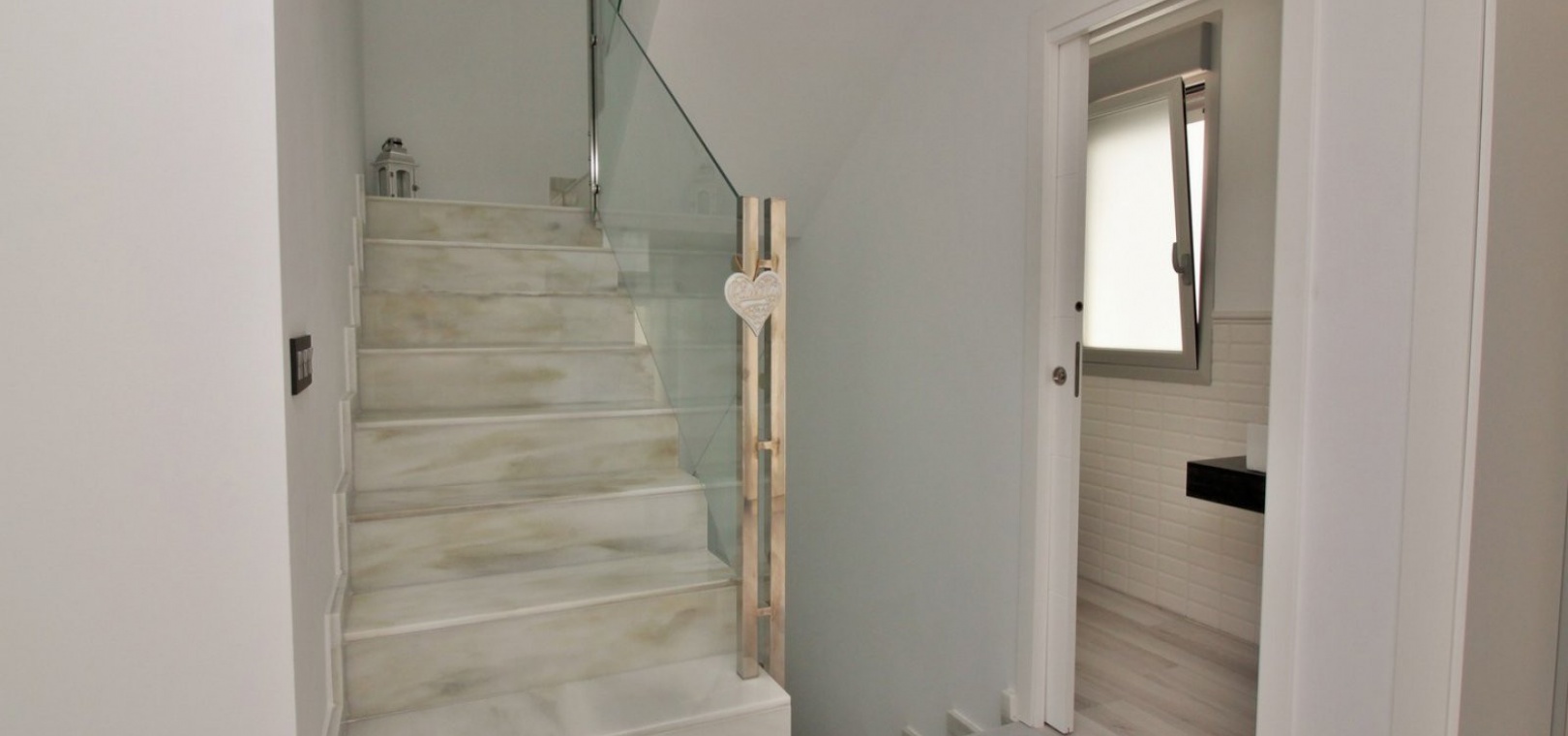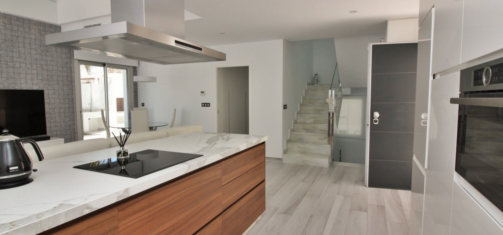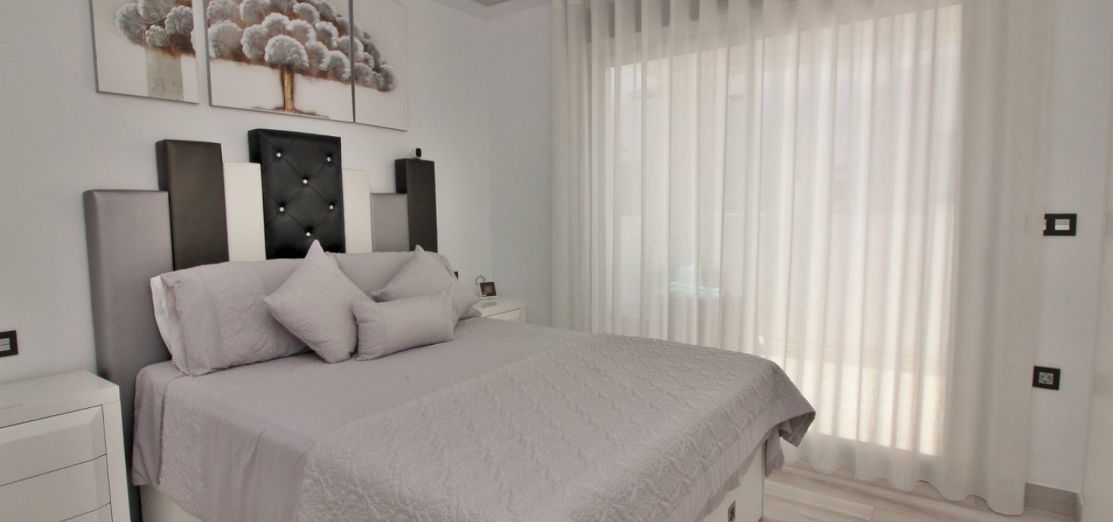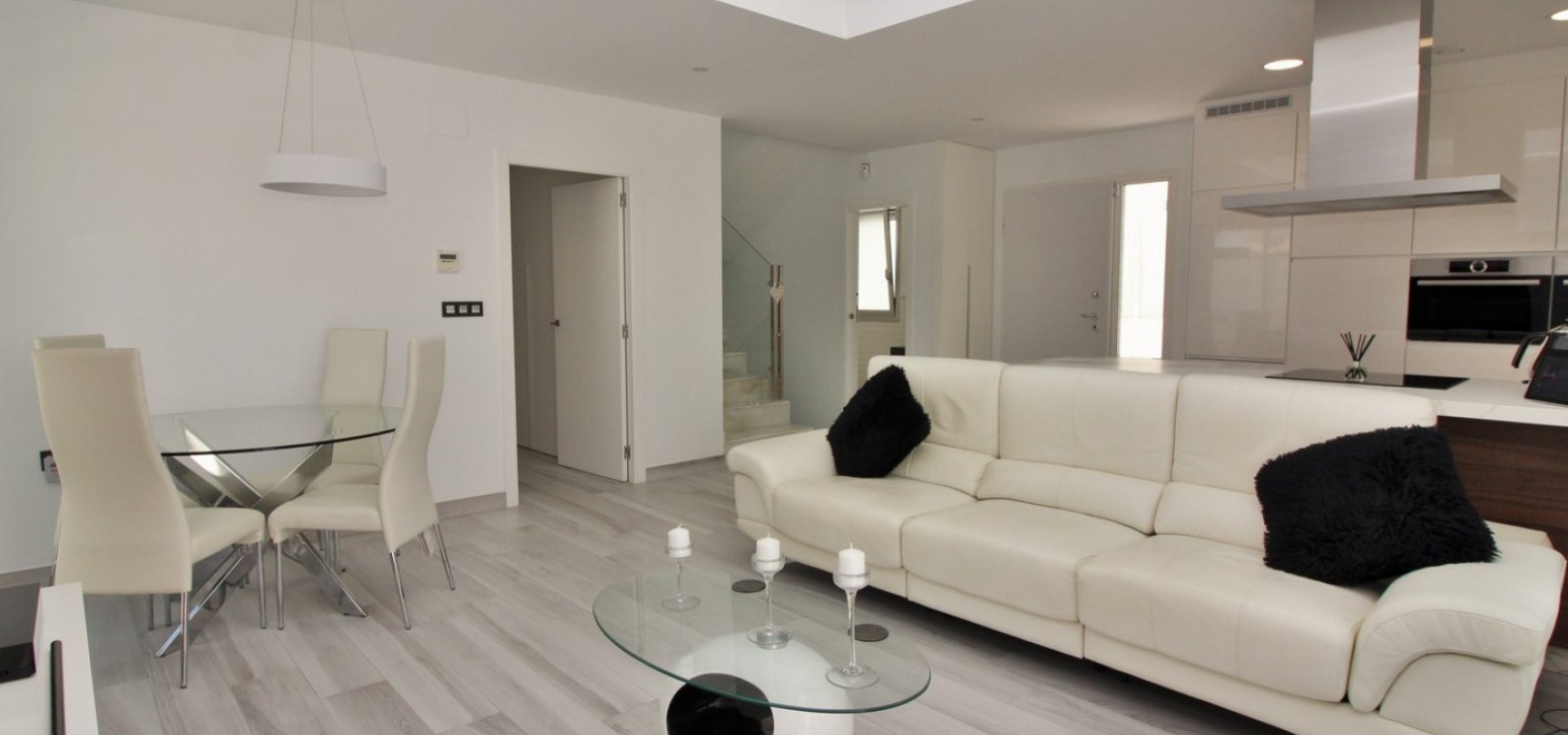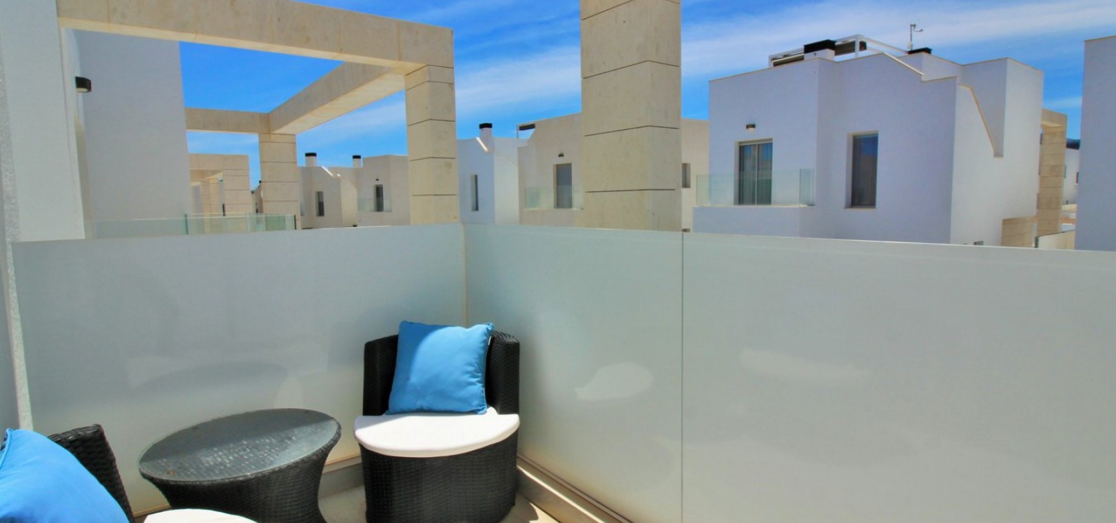 Fantastisk modern design 4 sovrum 4 badrum fristående villa med privat pool belägen i Lomas de Cabo Roig, Costa Blanca. Denna underbara fastighet bjuds ut till försäljning i mycket gott skick och består mycket kortfattat av följande: - På bottenvåningen finns ett rymligt vardagsrum / matsal med direkt tillgång till den privata poolen, kök med öppen planlösning, 1 x dubbelrum med en eget duschrum och 1 x W/C. På första våningen finns 2 x dubbelrum med inbyggda garderober och tillgång till balkonger, 1 x duschrum och ett privat takterrass. Det finns också ett stort underbyggt med 1 sovrum, 1 x badrum och en stor lounge. Utanför finns en uppfart för terrängparkering, privat pool, inventarier och tillbehör av högsta kvalitet i varm och kall A/C, alla möbler av högsta kvalitet är förhandlingsbara och mycket mer. Denna fastighet ligger bara en kort promenad från lokala barer, butiker, restaurang, snabbköp och den lokala busshållplatsen. De gyllene stränderna i Campoamor och Cabo Roig ligger bara några minuters bilresa bort, liksom 4 golfbanor. Köpcentret Zenia Boulevard ligger 5 minuters bilresa bort. Alicantes flygplats ligger 50 minuter bort.