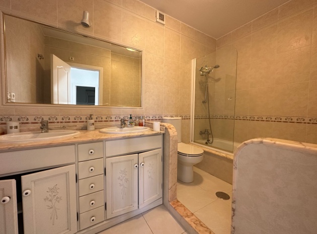En duplexlägenhet med 3 sovrum och 2 badrum med privat takterrass i Res. Miraflores, Playa Flamenca, Costa Blanca South. Den här fastigheten säljs i gott skick, säljs möblerad och består kortfattat av följande: - Stort vardagsrum/matrum med öppen spis, kök i öppen planlösning, 1 x dubbelrum med inbyggda garderober och 1 x duschrum. På övervåningen finns ett stort dubbelrum med tillgång till en privat solterrass och en klädkammare, 1 x dubbelrum med inbyggda garderober och 1 x ett familjebadrum med en duschkabin. På övervåningen av denna lägenhet hittar du grovkök och tvättstuga med gott om förvaring samt tillgång till ett privat takterrass med panoramautsikt över tallskogen, gemensam pool och fantastisk utsikt mot havet. Det finns 2 x härliga gemensamma pooler, gemensam parkering, säker gated community och mycket mer. Denna fastighet ligger i hjärtat av Playa Flamenca och det är bara en kort promenad till lokala butiker, barer och restauranger och cirka 10 minuters promenad till lördagsmarknaden, det nya sportcentret och det nya shoppingkomplexet La Zenia Boulevard. Det är mindre än 15 minuters promenad till stranden (mindre än 5 minuters bilresa) och den lokala busshållplatsen och skolor ligger också mycket nära. 10 minuters bilresa till 4 golfbanor. Bara 20 minuter från Murcia San Javier flygplats och 40 minuter från Alicante flygplats.