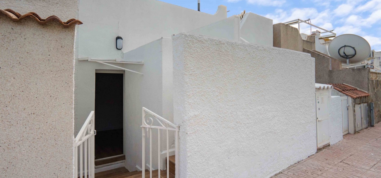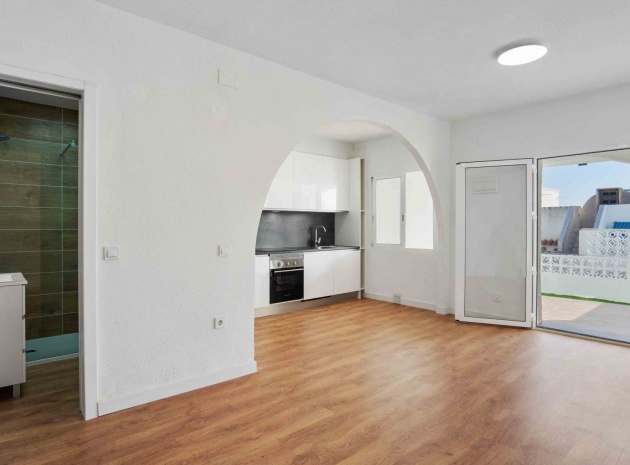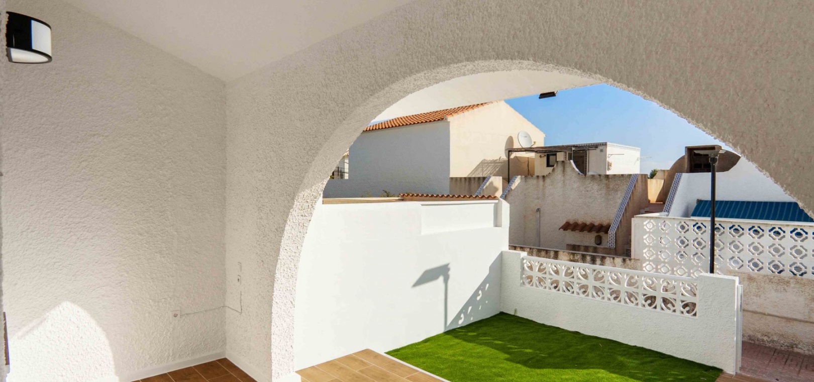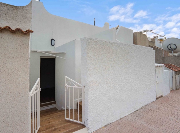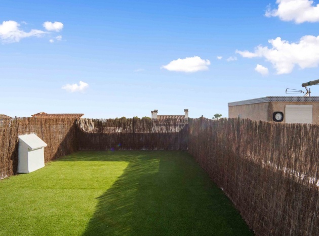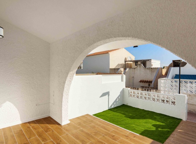 Denna uppdaterade och moderniserade bungalow med två sovrum i Villamartin ligger i området Blue Lagoon, i Orihuela Costa, nära San Miguel de Salinas. Beläget en minuts bilresa eller en kort promenad till de närmaste bekvämligheterna antingen på Blue Lagoon, La Fuente Commercial Centre eller Villamartin Plaza. Stränder och många golfbanor ligger också inom 5 minuters bilresa! Denna fantastiska fastighet består av ett modernt, öppet fullt utrustat kök; rymligt vardagsrum/matsal med tillgång ut till baksidan, täckt terrass och konstgräs, lågskött trädgård; ett sovrum med dubbelsäng, med eget duschrum; ett enkelrum; och en familj promenad i duschrum. Från sovrummet har du tillgång till innergården och entrén, med externa trappor till det extremt rymliga 62m2, privata takterrass, även med konstgräs och utsikt över området!!! Extra ska inkludera nya fönster, dörrar, golv, kök, badrum, vitvaror, etc... Fynd, färdig investeringsfastighet! Missa inte!!!