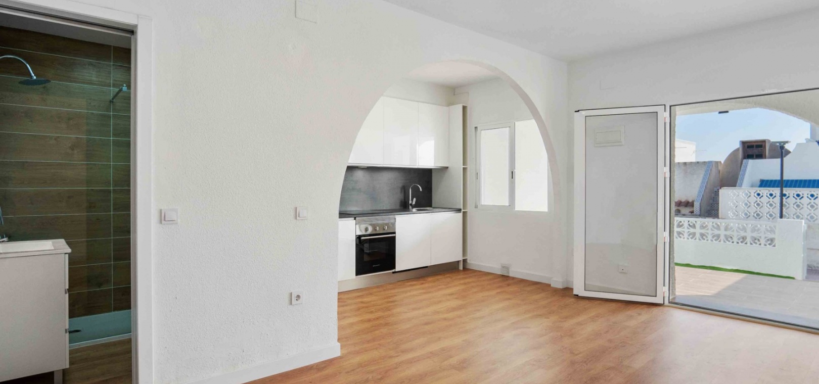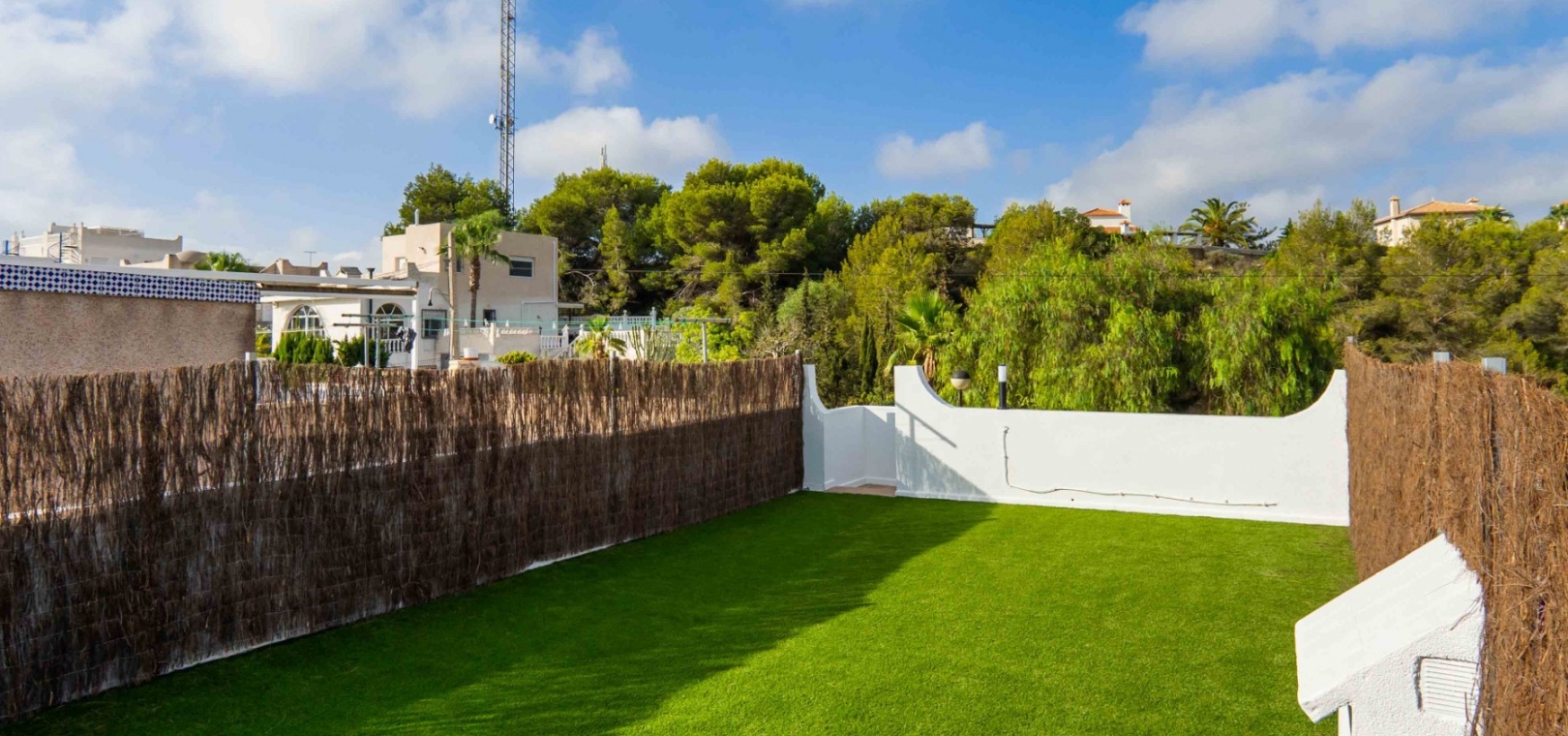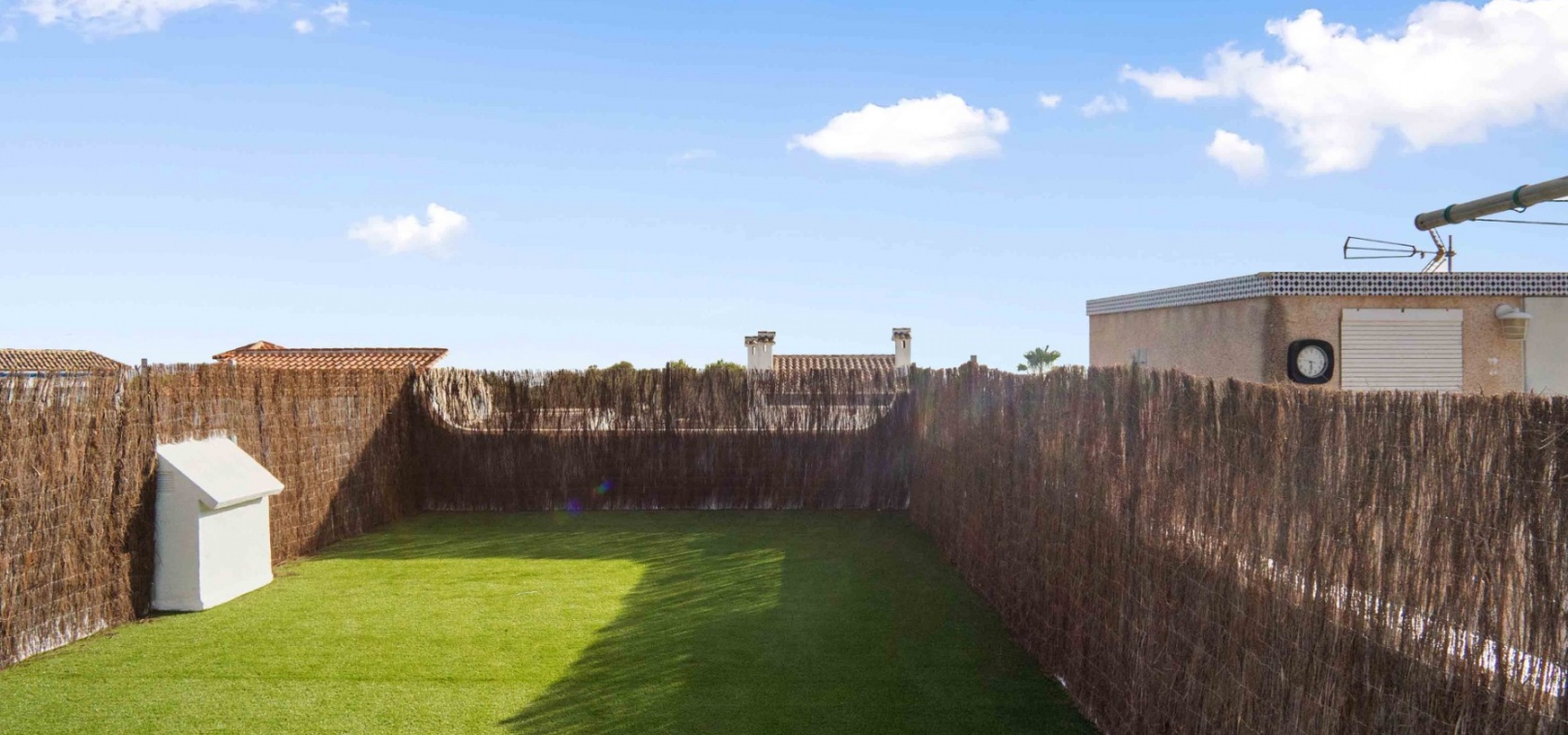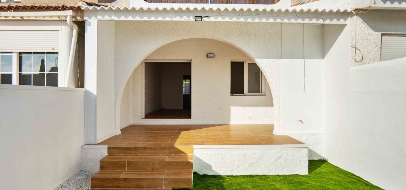 Denna uppdaterade och moderniserade bungalow med två sovrum i Villamartin ligger i området Blue Lagoon, i Orihuela Costa, nära San Miguel de Salinas. Beläget en minuts bilresa eller en kort promenad till de närmaste bekvämligheterna antingen på Blue Lagoon, La Fuente Commercial Centre eller Villamartin Plaza. Stränder och många golfbanor ligger också inom 5 minuters bilresa! Denna fantastiska fastighet består av ett modernt, öppet fullt utrustat kök; rymligt vardagsrum/matsal med tillgång ut till baksidan, täckt terrass och konstgräs, lågskött trädgård; ett sovrum med dubbelsäng, med eget duschrum; ett enkelrum; och en familj promenad i duschrum. Från sovrummet har du tillgång till innergården och entrén, med externa trappor till det extremt rymliga 62m2, privata takterrass, även med konstgräs och utsikt över området!!! Extra ska inkludera nya fönster, dörrar, golv, kök, badrum, vitvaror, etc... Fynd, färdig investeringsfastighet! Missa inte!!!