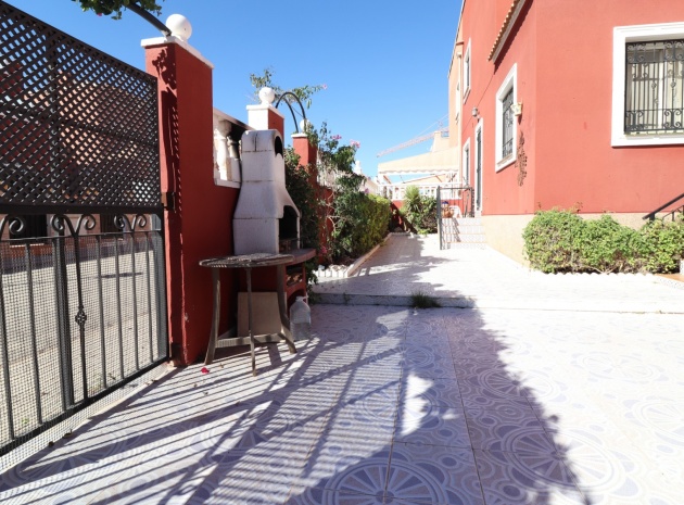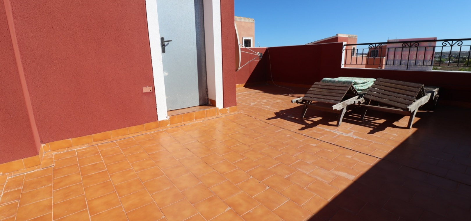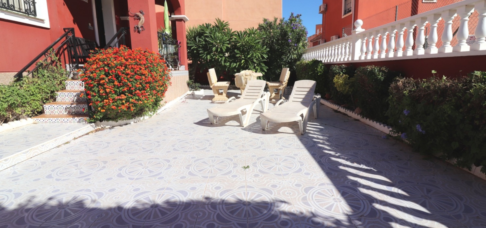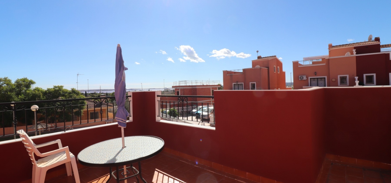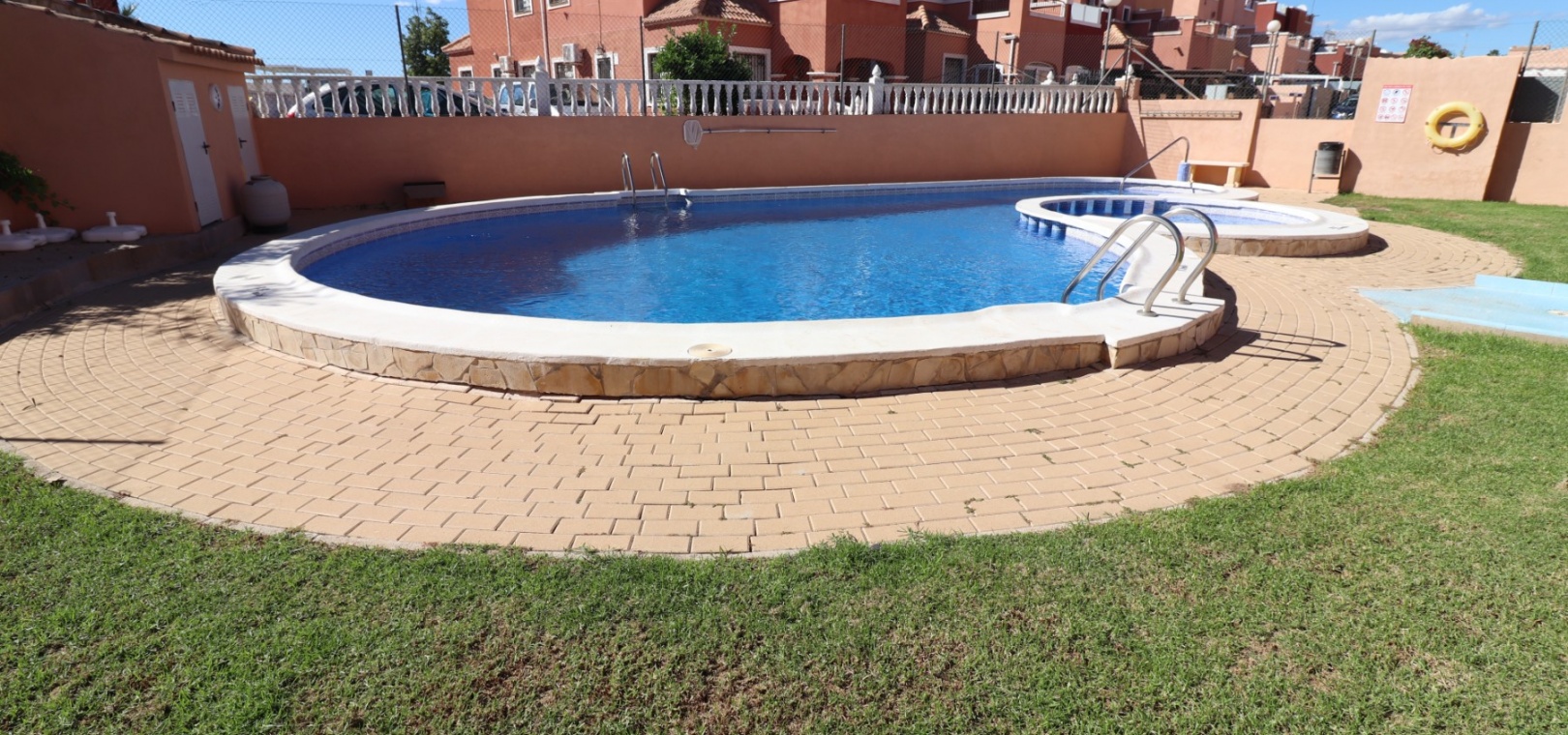 Detta hörn, sydostläge, tre sovrum, parhus i La Herrada, ett populärt bostadsområde med snabbköp och bar bara fem minuters promenad bort. Staden Los Montesinos kan nås till fots på femton minuter, där du kan hitta ett snabbköp, butiker, populära torg, en mängd olika kafébarer och restauranger, skola, teater.. Närmaste golfbana vid Vistabella ligger bara 10 minuter bort. med bil, Quesada, Torrevieja 10—15 minuter bort och stränder 20 minuter. Fastigheten nås via en täckt ingångsterrass, som leder in till vardagsrummet/matsalen, med luftkonditionering; Utrustat kök i amerikansk stil med dörr som leder ut åt sidan; dubbelrum; familjens duschrum. På första våningen finns ytterligare ett dubbelrum och ett familjebadrum. Intern trappa leder upp till andra våningen, med ett dubbelrum som har en terrass utanför, plus det finns en bonus med ett privat solarium. Trädgården är kaklad för enkelt underhåll med planterade bårder och off-road parkering. Fastigheten kommer med fördelen av en gemensam pool som ligger framför fastigheten, som du kan njuta av från terrassen och solariet. Extra inkluderar sovrum med inbyggda garderober och takfläktar, två med mygggardiner och ett förråd.