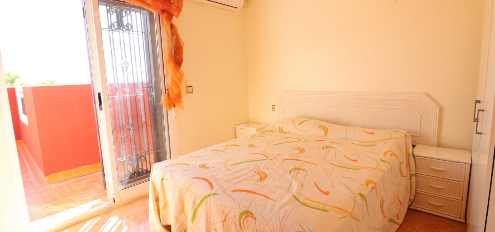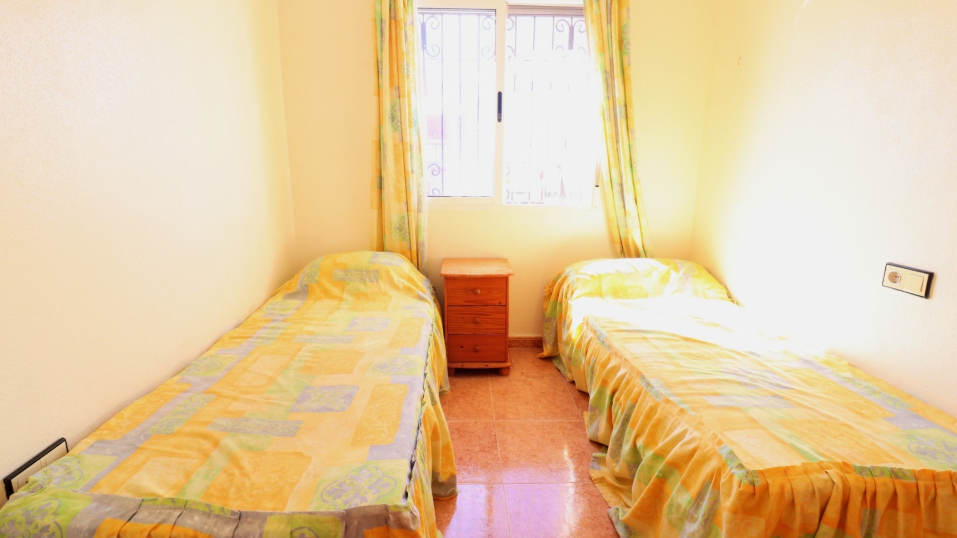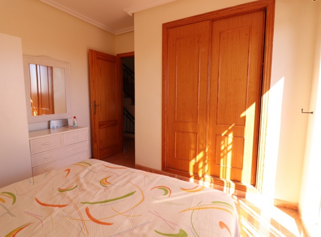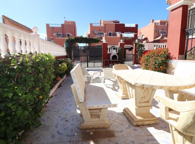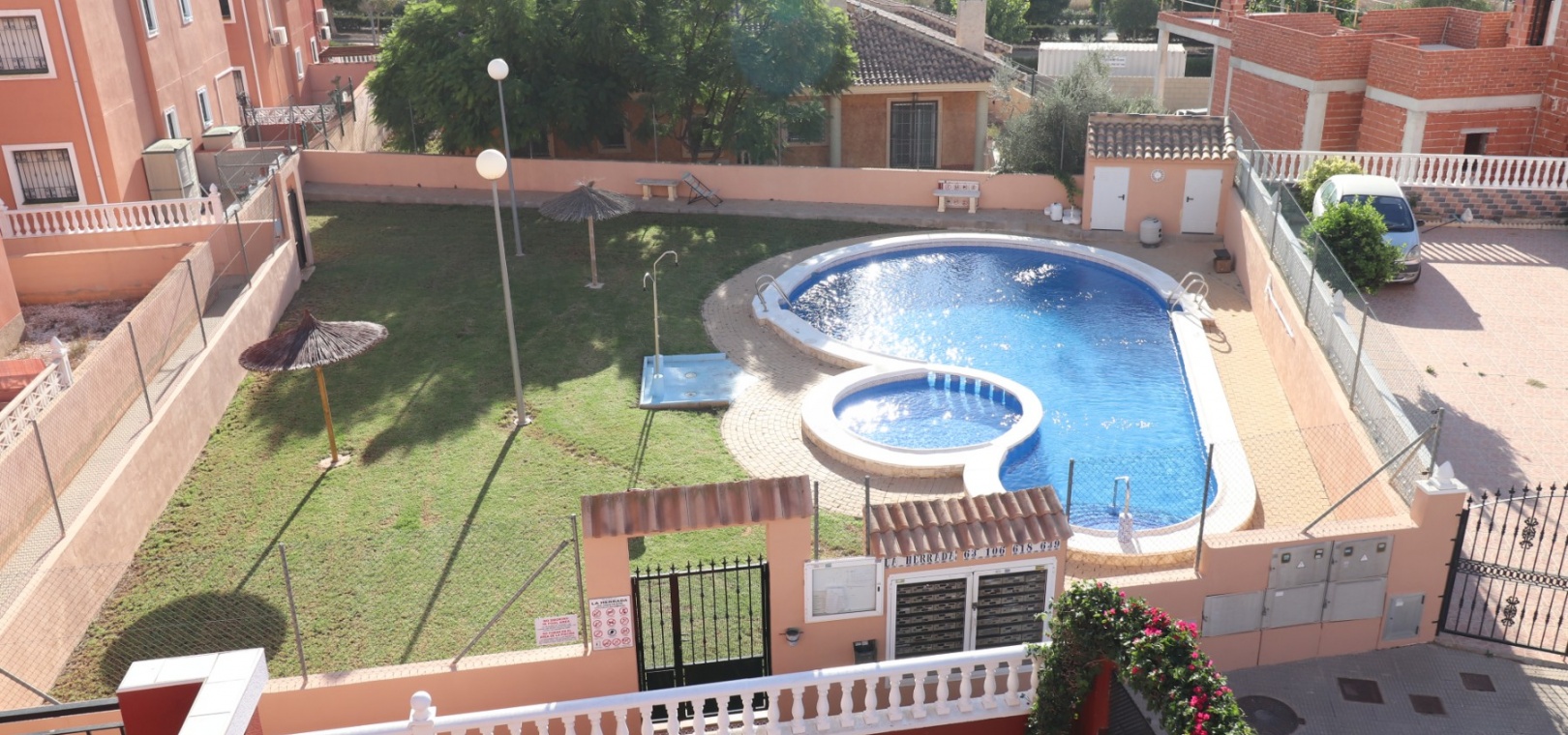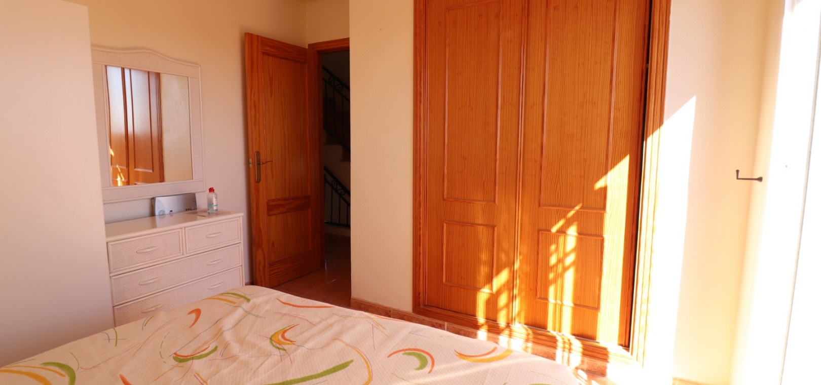 Detta hörn, sydostläge, tre sovrum, parhus i La Herrada, ett populärt bostadsområde med snabbköp och bar bara fem minuters promenad bort. Staden Los Montesinos kan nås till fots på femton minuter, där du kan hitta ett snabbköp, butiker, populära torg, en mängd olika kafébarer och restauranger, skola, teater.. Närmaste golfbana vid Vistabella ligger bara 10 minuter bort. med bil, Quesada, Torrevieja 10—15 minuter bort och stränder 20 minuter. Fastigheten nås via en täckt ingångsterrass, som leder in till vardagsrummet/matsalen, med luftkonditionering; Utrustat kök i amerikansk stil med dörr som leder ut åt sidan; dubbelrum; familjens duschrum. På första våningen finns ytterligare ett dubbelrum och ett familjebadrum. Intern trappa leder upp till andra våningen, med ett dubbelrum som har en terrass utanför, plus det finns en bonus med ett privat solarium. Trädgården är kaklad för enkelt underhåll med planterade bårder och off-road parkering. Fastigheten kommer med fördelen av en gemensam pool som ligger framför fastigheten, som du kan njuta av från terrassen och solariet. Extra inkluderar sovrum med inbyggda garderober och takfläktar, två med mygggardiner och ett förråd.