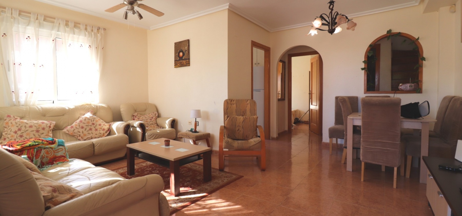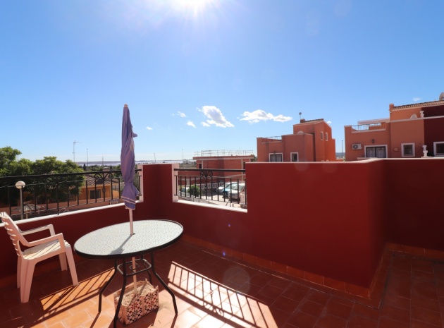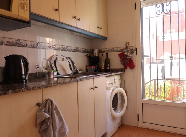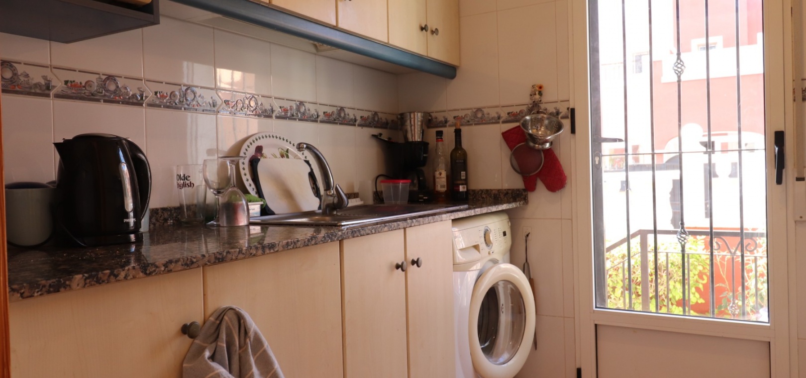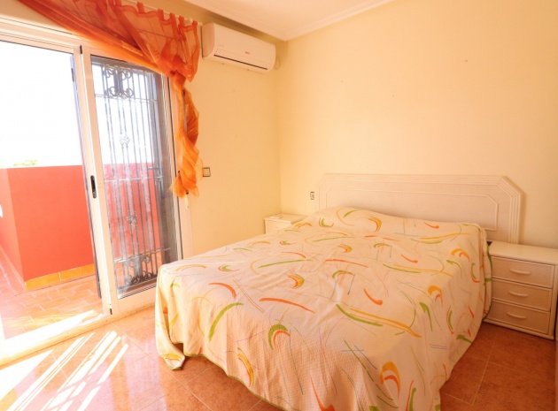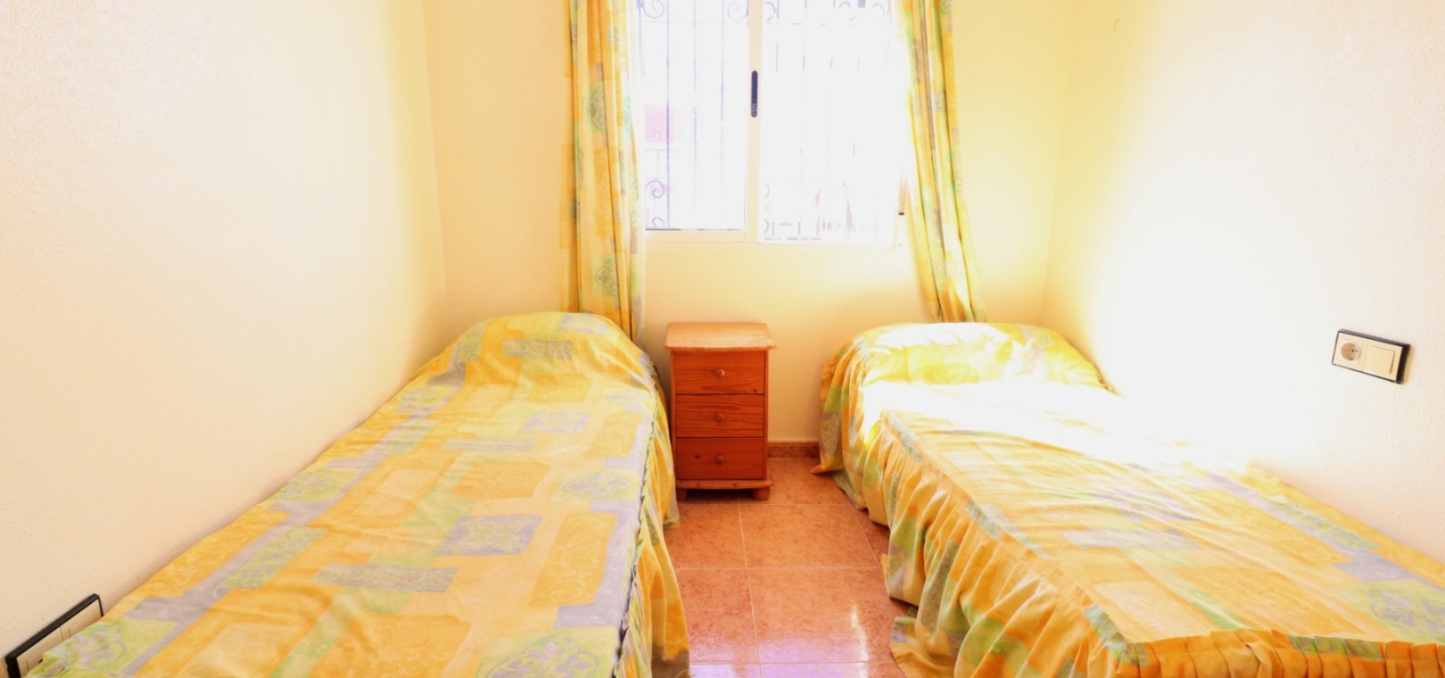 Detta hörn, sydostläge, tre sovrum, parhus i La Herrada, ett populärt bostadsområde med snabbköp och bar bara fem minuters promenad bort. Staden Los Montesinos kan nås till fots på femton minuter, där du kan hitta ett snabbköp, butiker, populära torg, en mängd olika kafébarer och restauranger, skola, teater.. Närmaste golfbana vid Vistabella ligger bara 10 minuter bort. med bil, Quesada, Torrevieja 10—15 minuter bort och stränder 20 minuter. Fastigheten nås via en täckt ingångsterrass, som leder in till vardagsrummet/matsalen, med luftkonditionering; Utrustat kök i amerikansk stil med dörr som leder ut åt sidan; dubbelrum; familjens duschrum. På första våningen finns ytterligare ett dubbelrum och ett familjebadrum. Intern trappa leder upp till andra våningen, med ett dubbelrum som har en terrass utanför, plus det finns en bonus med ett privat solarium. Trädgården är kaklad för enkelt underhåll med planterade bårder och off-road parkering. Fastigheten kommer med fördelen av en gemensam pool som ligger framför fastigheten, som du kan njuta av från terrassen och solariet. Extra inkluderar sovrum med inbyggda garderober och takfläktar, två med mygggardiner och ett förråd.
