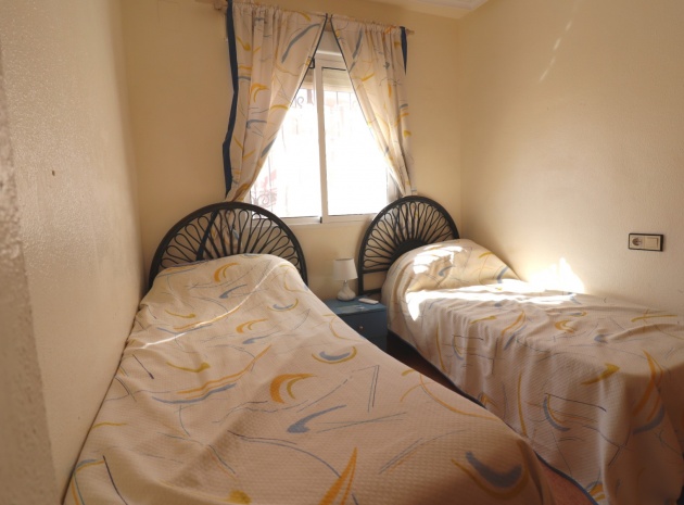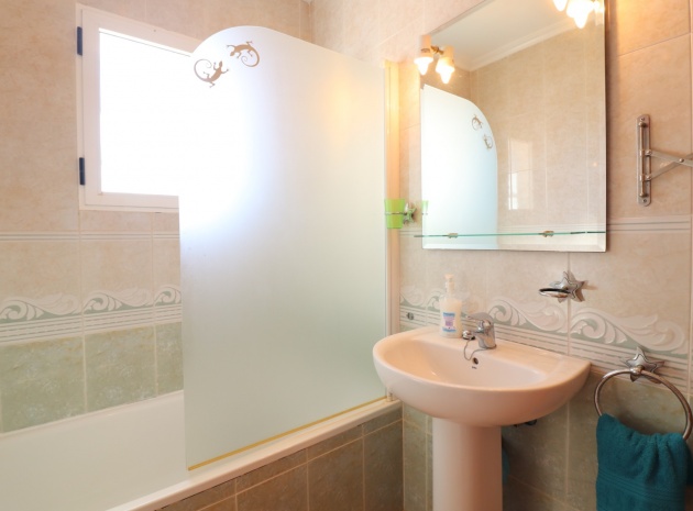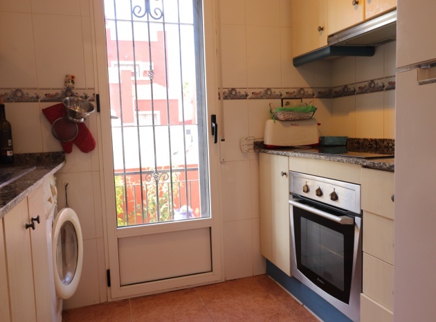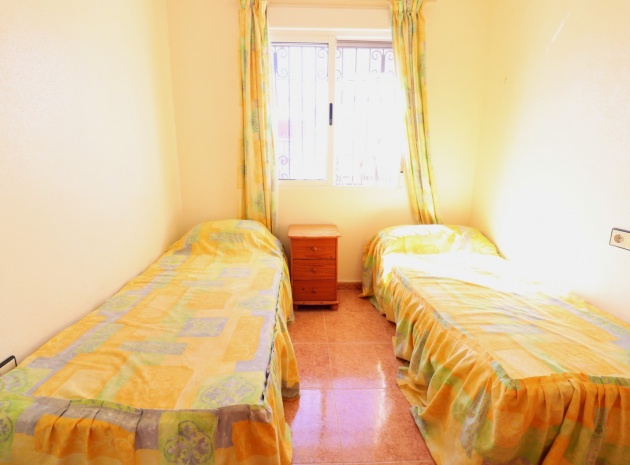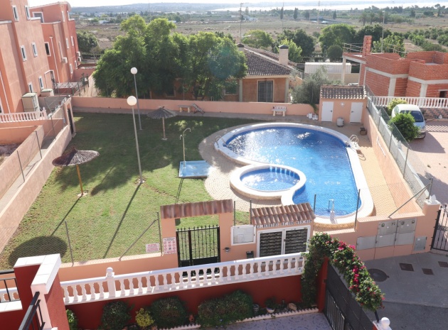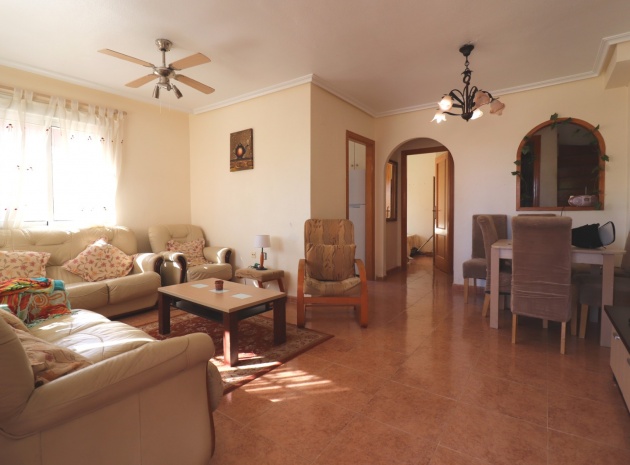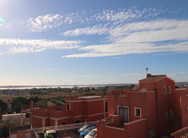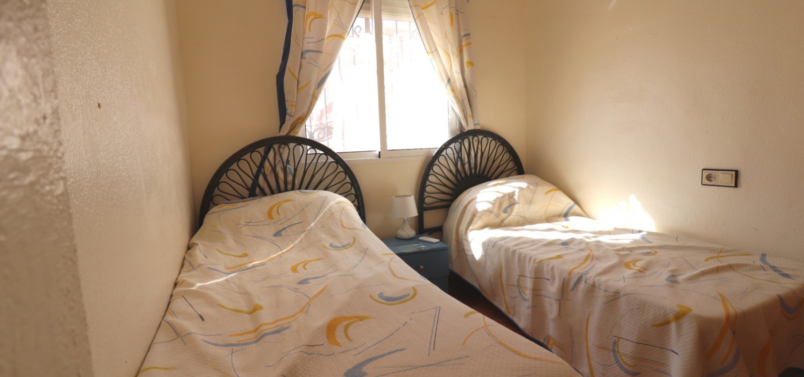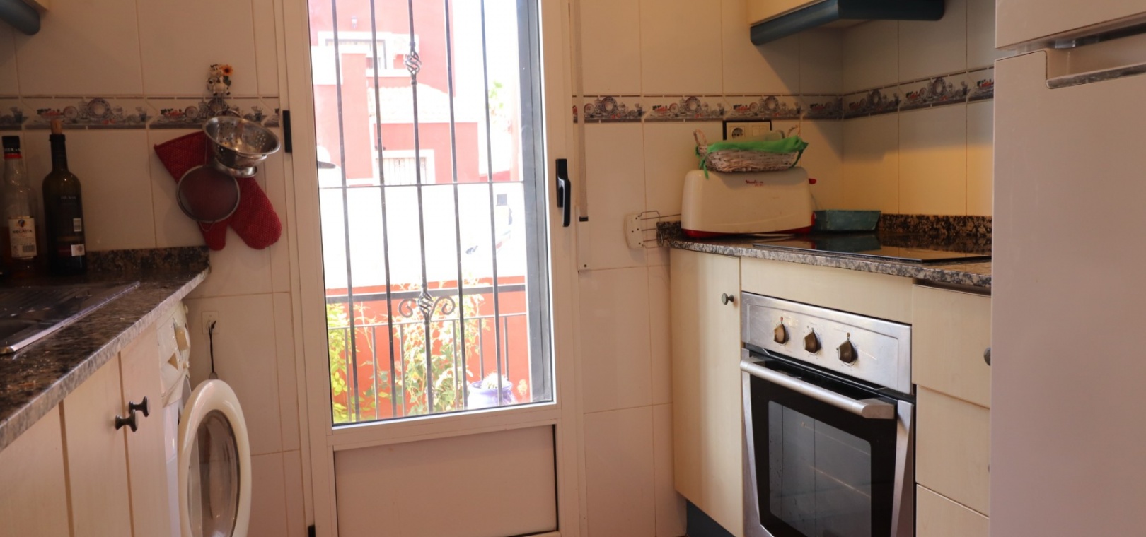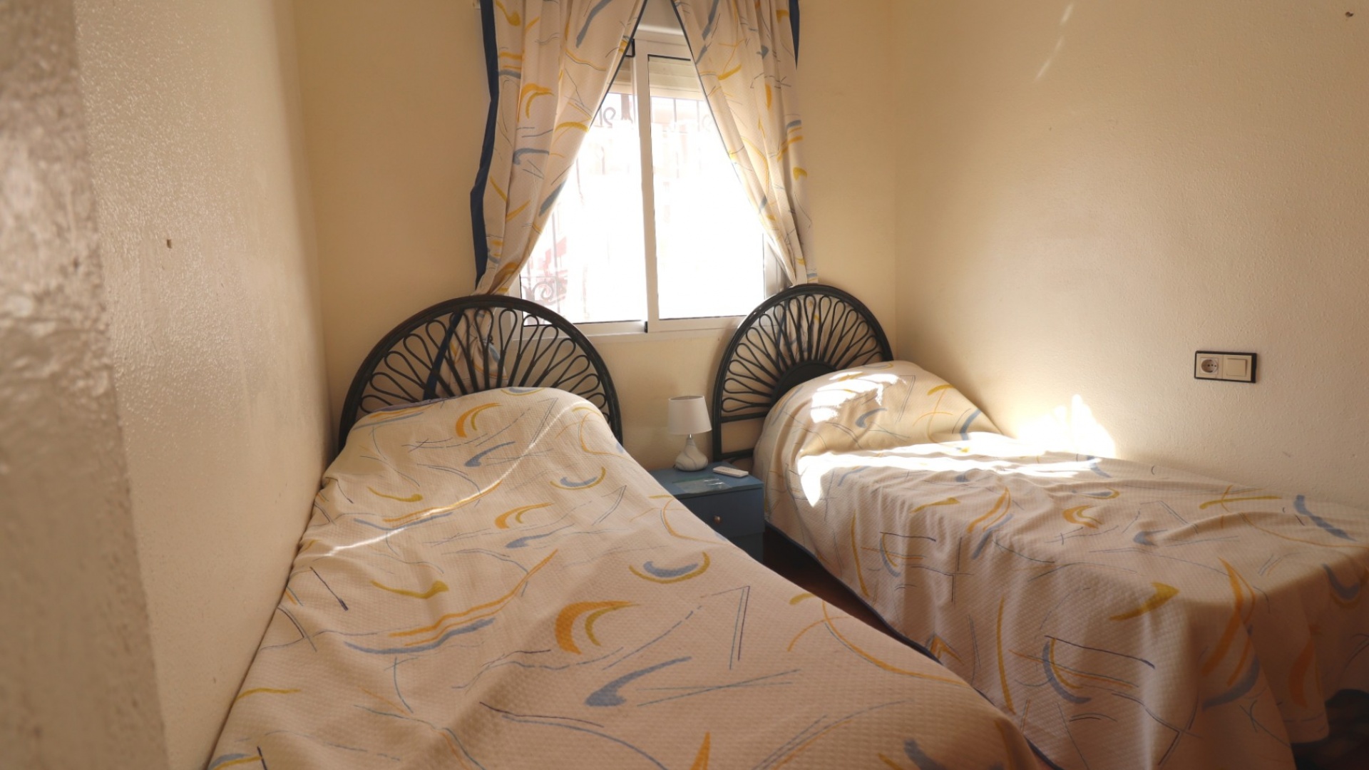 Detta hörn, sydostläge, tre sovrum, parhus i La Herrada, ett populärt bostadsområde med snabbköp och bar bara fem minuters promenad bort. Staden Los Montesinos kan nås till fots på femton minuter, där du kan hitta ett snabbköp, butiker, populära torg, en mängd olika kafébarer och restauranger, skola, teater.. Närmaste golfbana vid Vistabella ligger bara 10 minuter bort. med bil, Quesada, Torrevieja 10—15 minuter bort och stränder 20 minuter. Fastigheten nås via en täckt ingångsterrass, som leder in till vardagsrummet/matsalen, med luftkonditionering; Utrustat kök i amerikansk stil med dörr som leder ut åt sidan; dubbelrum; familjens duschrum. På första våningen finns ytterligare ett dubbelrum och ett familjebadrum. Intern trappa leder upp till andra våningen, med ett dubbelrum som har en terrass utanför, plus det finns en bonus med ett privat solarium. Trädgården är kaklad för enkelt underhåll med planterade bårder och off-road parkering. Fastigheten kommer med fördelen av en gemensam pool som ligger framför fastigheten, som du kan njuta av från terrassen och solariet. Extra inkluderar sovrum med inbyggda garderober och takfläktar, två med mygggardiner och ett förråd.