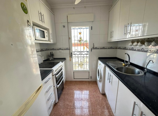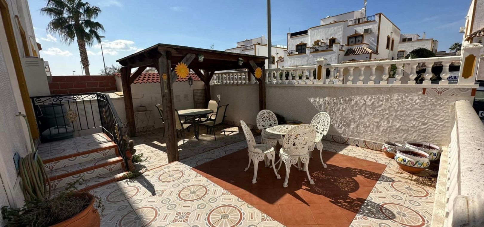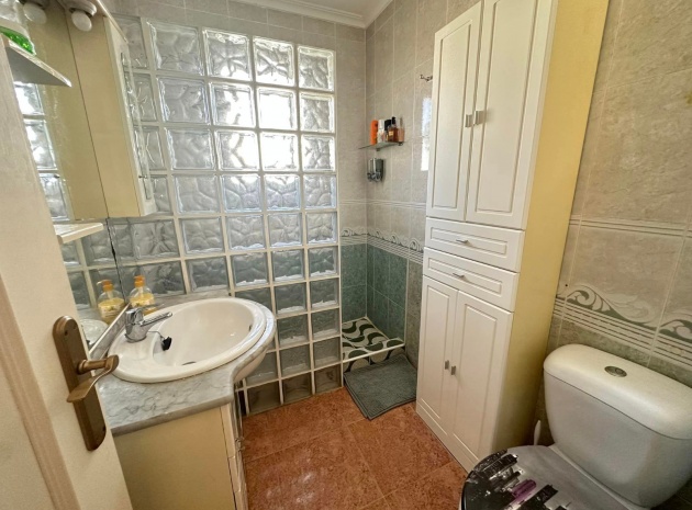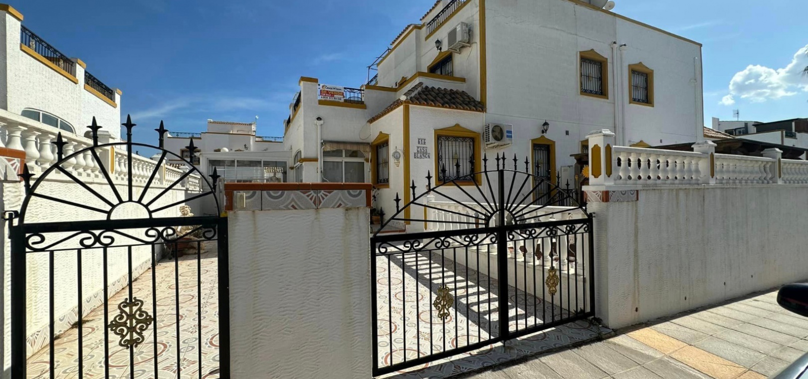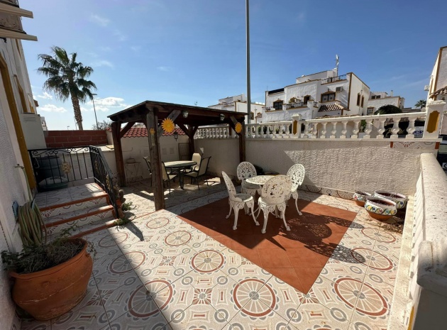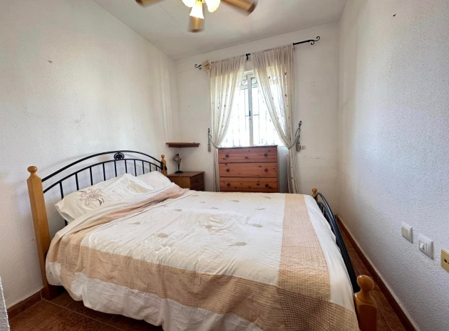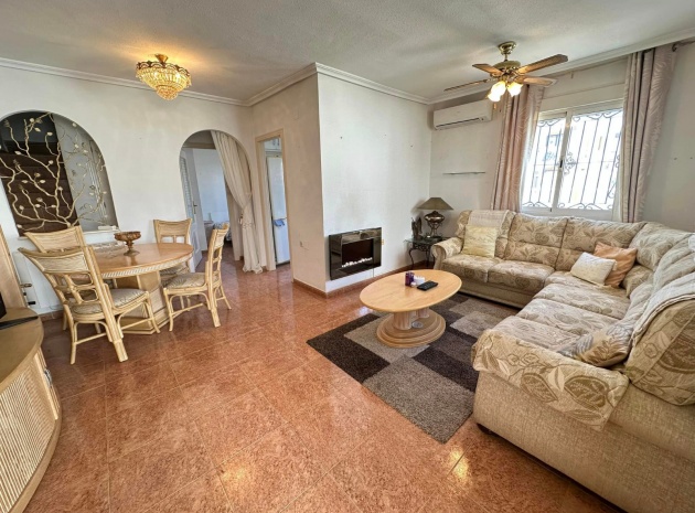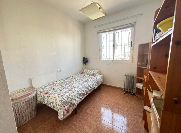 Ett västläge fyrbäddshus med 3 sovrum och 2 badrum med en trädgård på framsidan och sidan beläget i Entre Naranjos (Vistabella Golf), Los Montesinos, södra Costa Blanca. Denna fastighet säljs i gott skick, säljs möblerad och består mycket kortfattat av följande:- På bottenvåningen finns en L-form vardagsrum/matsal med varm och kall luftkonditionering, separat fullt utrustat kök med dörr ut till sidoträdgården, 1 x tvåbäddsrum med inbyggda garderober och 1 x duschrum. På första våningen finns 2 x dubbelrum med inbyggda garderober, det största sovrummet har varm och kall A/C & en privat balkong & 1 x duschrum. Från första våningen leder en inre trappa upp till en liten landning/förvaring och ut till det privata solariet på taket. Utanför finns en täckt terrass, en trädgård på framsidan och sidan med en uppfart för off-road parkering och en härlig gemensam pool. Denna fastighet ligger bara några minuters promenad till två små kommersiella centra där du hittar barer, restauranger, ett apotek och en stor mataffär. Den nya golfbanan Vistabella ligger bara 500 meter bort. De vackra gyllene stränderna vid Guardamar ligger mindre än 20 minuters bilresa bort och det är cirka 35 minuters bilresa till Alicantes flygplats och Murcia Corvera flygplats ligger cirka 50 minuter bort.