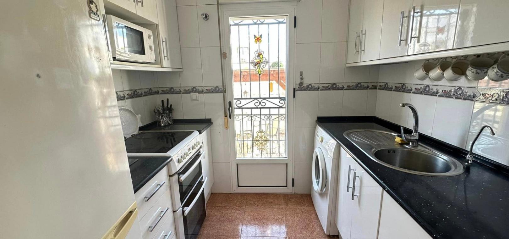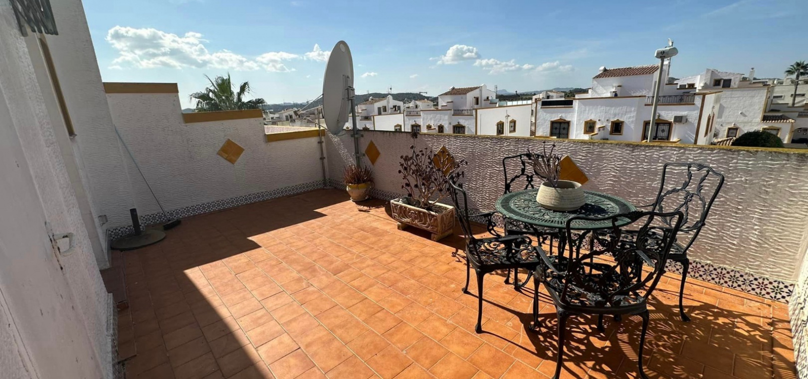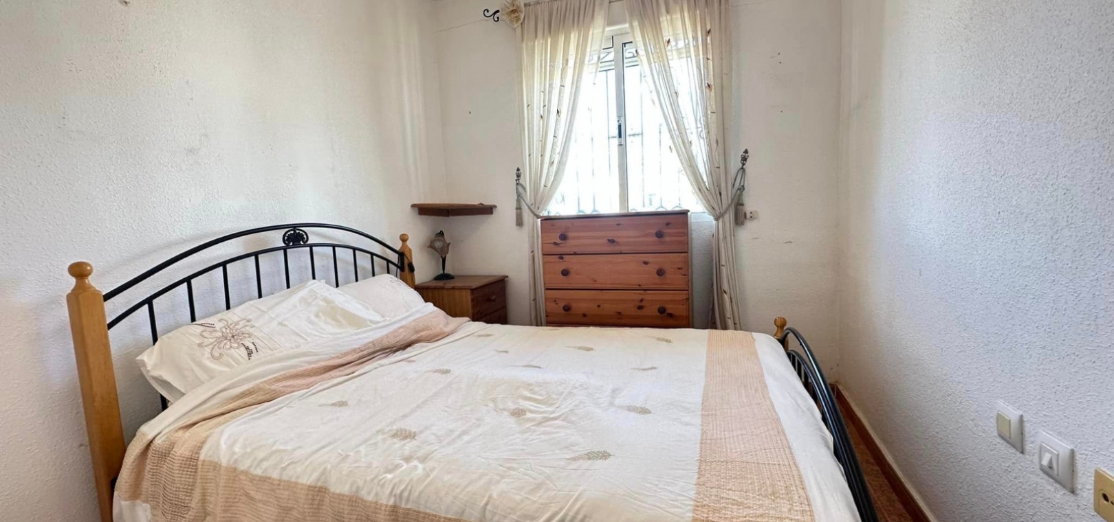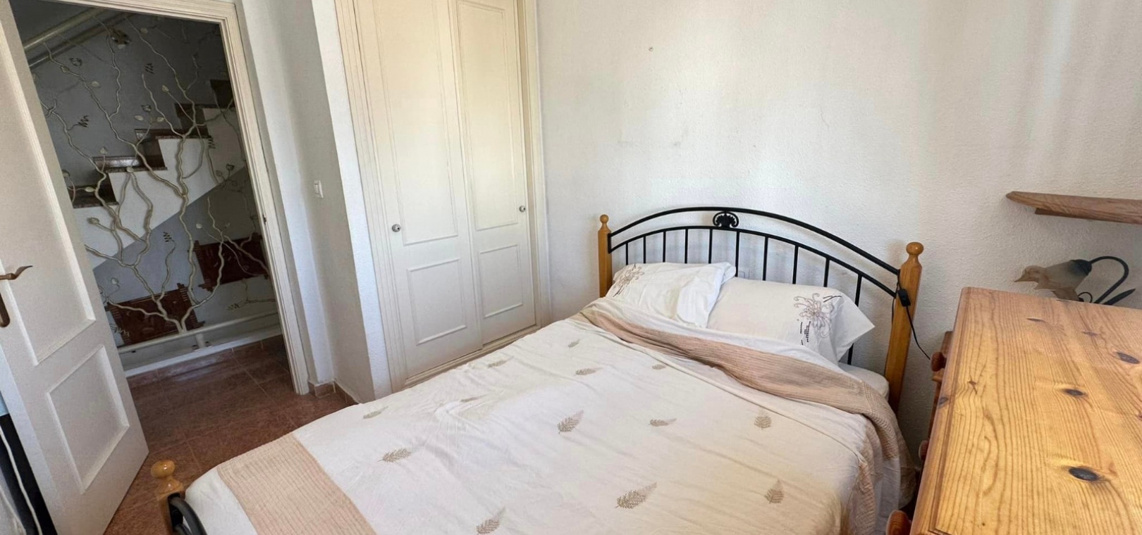 Ett västläge fyrbäddshus med 3 sovrum och 2 badrum med en trädgård på framsidan och sidan beläget i Entre Naranjos (Vistabella Golf), Los Montesinos, södra Costa Blanca. Denna fastighet säljs i gott skick, säljs möblerad och består mycket kortfattat av följande:- På bottenvåningen finns en L-form vardagsrum/matsal med varm och kall luftkonditionering, separat fullt utrustat kök med dörr ut till sidoträdgården, 1 x tvåbäddsrum med inbyggda garderober och 1 x duschrum. På första våningen finns 2 x dubbelrum med inbyggda garderober, det största sovrummet har varm och kall A/C & en privat balkong & 1 x duschrum. Från första våningen leder en inre trappa upp till en liten landning/förvaring och ut till det privata solariet på taket. Utanför finns en täckt terrass, en trädgård på framsidan och sidan med en uppfart för off-road parkering och en härlig gemensam pool. Denna fastighet ligger bara några minuters promenad till två små kommersiella centra där du hittar barer, restauranger, ett apotek och en stor mataffär. Den nya golfbanan Vistabella ligger bara 500 meter bort. De vackra gyllene stränderna vid Guardamar ligger mindre än 20 minuters bilresa bort och det är cirka 35 minuters bilresa till Alicantes flygplats och Murcia Corvera flygplats ligger cirka 50 minuter bort.