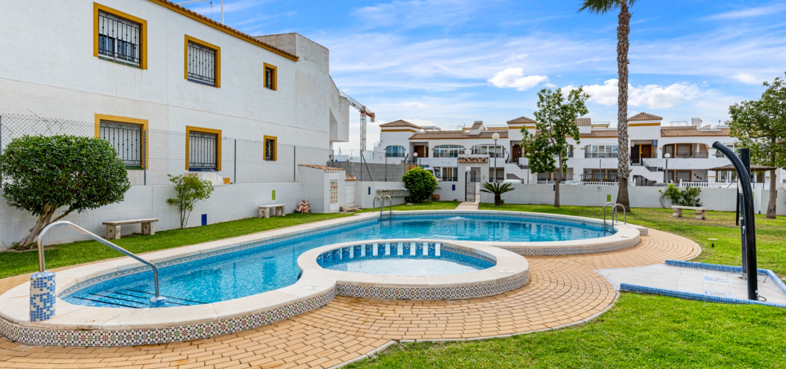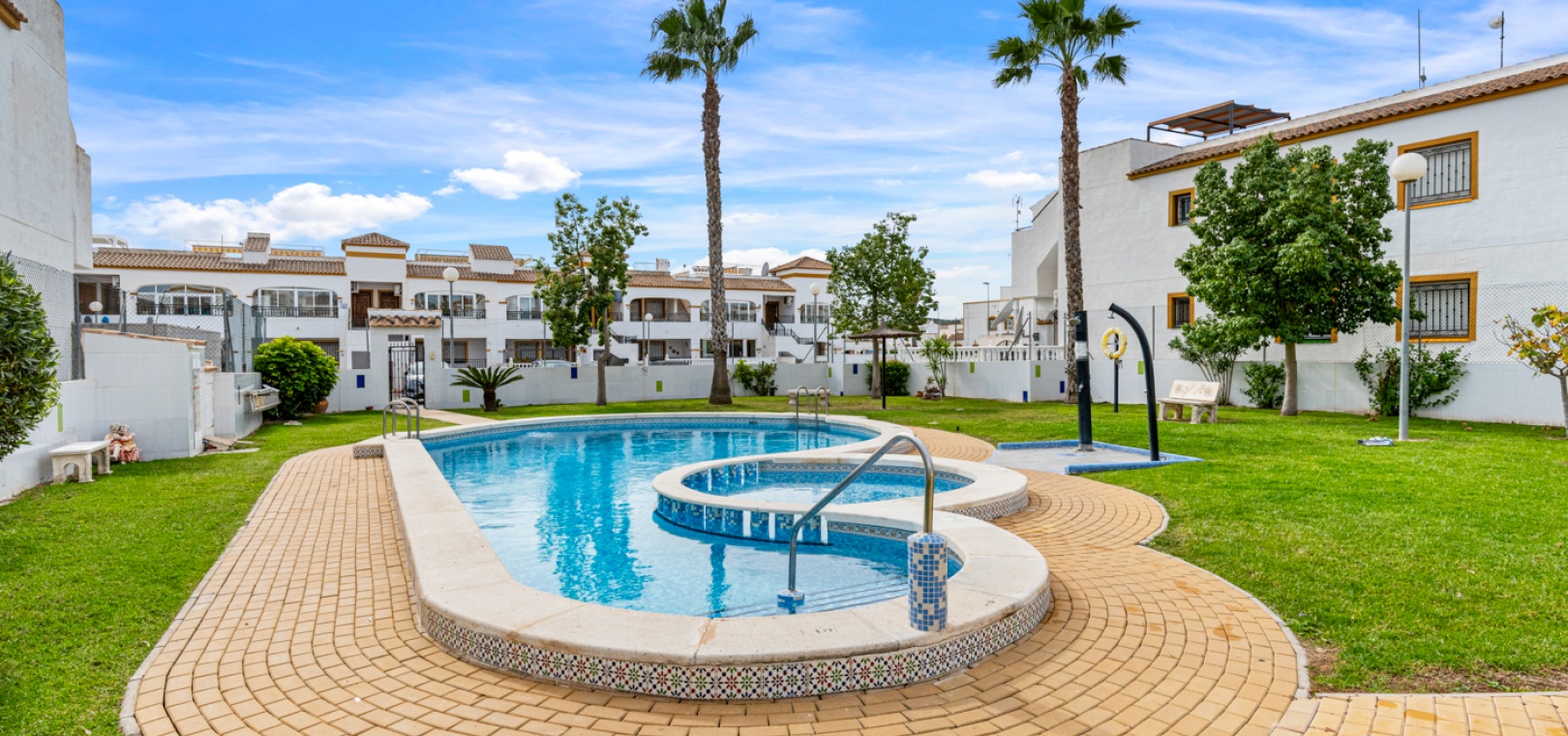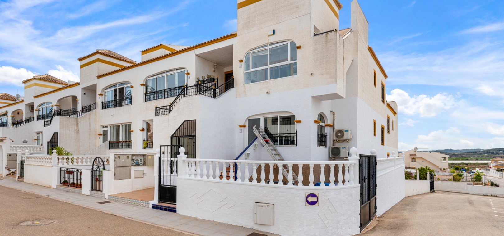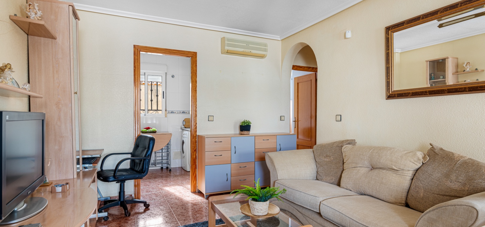 Denna fastighet ligger bara några minuters promenad till två små kommersiella centra där du hittar barer, restauranger, ett apotek och en stor mataffär. Den nya golfbanan Vistabella ligger bara 500 meter bort. De vackra gyllene stränderna vid Guardamar ligger mindre än 20 minuters bilresa bort och det är cirka 35 minuters bilresa till Alicantes flygplats och Murcia Corvera flygplats ligger cirka 50 minuter bort.