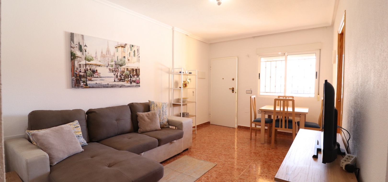 En lägenhet i söderläge med 2 sovrum och 1 badrum på bottenvåningen i Dream Hills I, Los Altos, Costa Blanca. Denna fastighet säljs i gott skick, säljs möblerad och består i korthet av följande: - vardagsrum / matsal, separat kök, 2 x dubbelrum båda med inbyggda garderober och varm och kall A/C, 1 x familjebadrum, täckt terrass på framsidan, trädgård på framsidan med en uppfart för off-road parkering, 2 x gemensamma pooler, gemensam parkering och mycket mer. Denna fastighet ligger mindre än 4 km från stränderna Playa Flamenca och Punta Prima och 50 minuter från Alicantes flygplats. Lokala restauranger, barer, butiker och den lokala busshållplatsen ligger alla inom gångavstånd.