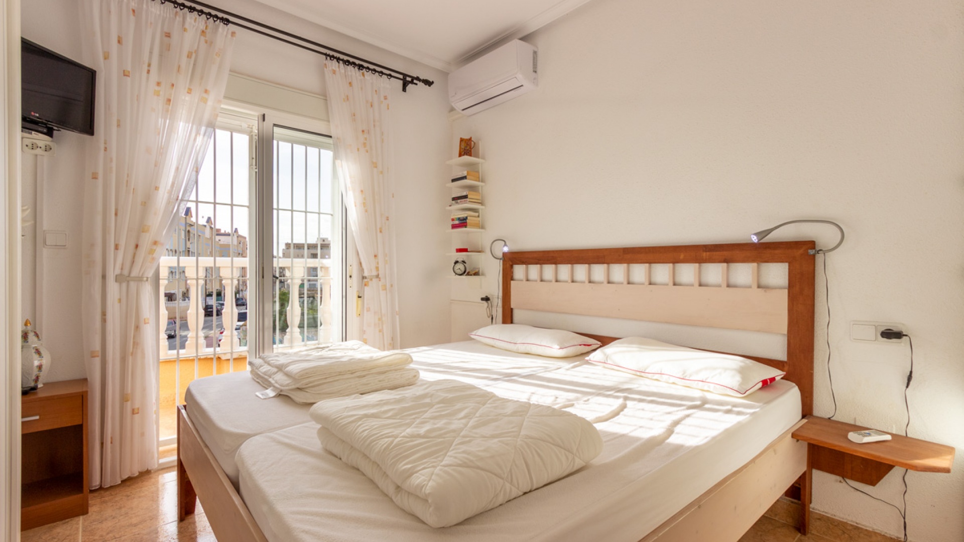 Ett parhus med 2 sovrum och 2,5 badrum som vetter mot sydost, bara 300 meter från havet beläget i La Mata, Costa Blanca South. Denna härliga fastighet säljs i gott skick och består mycket kortfattat av följande:- På bottenvåningen finns en lounge/matsal med varm och kall luftkonditionering, ett öppet kök, 1 x duschrum och 1 x W /C. På första våningen finns 2 x dubbelrum, båda inbyggda garderober och varm och kall A/C, 1 x familjebadrum och en balkong utanför det stora sovrummet. Interna trappor från det stora sovrummet leder upp till en landning och ut till det privata solariet på taket. Utanför finns en terrass, en trädgård och en härlig gemensam pool. Denna fastighet ligger bara några minuters promenad till stranden och cirka 5 minuters promenad till lokala barer, butiker och restauranger. Alicantes flygplats ligger cirka 30 minuters bilresa bort.