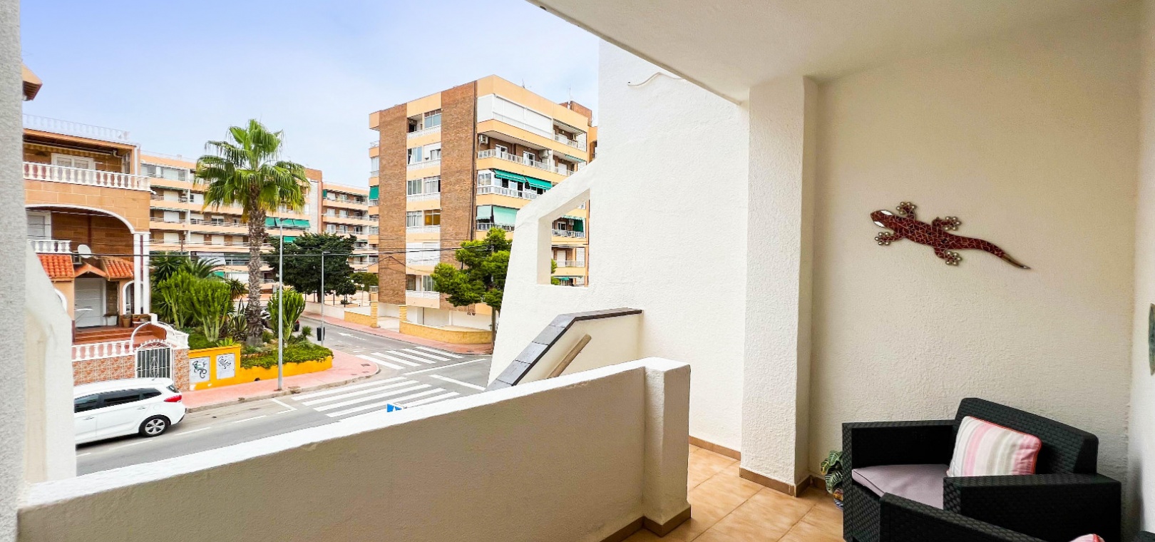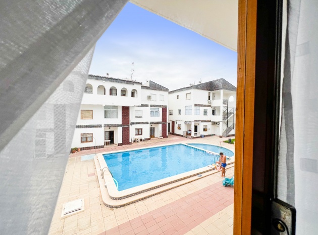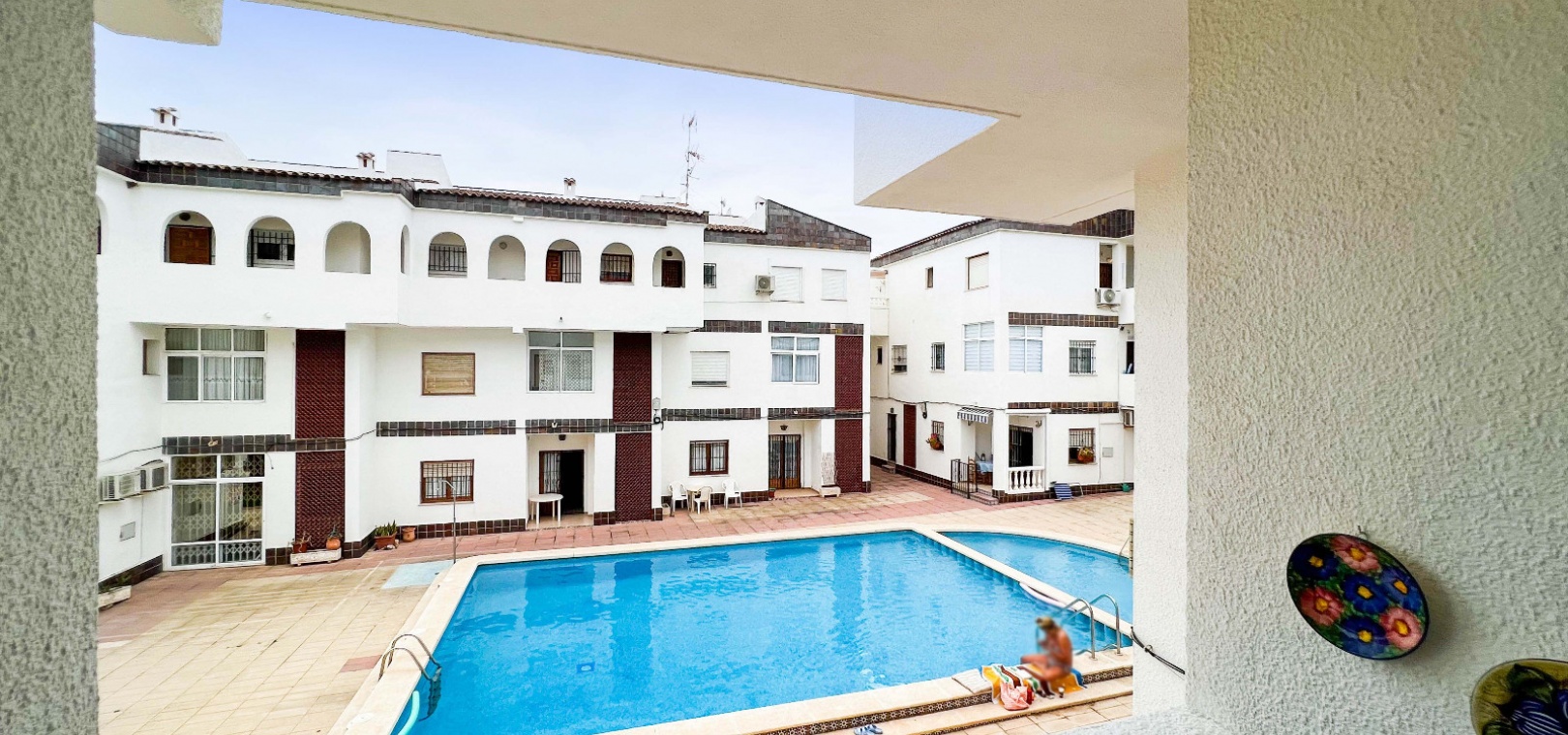 En lägenhet med 2 sovrum och 1 badrum på 1:a våningen bara 500 meter från havet i Punta Prima, Costa Blanca. Denna härliga lägenhet säljs i gott skick, fullt möblerad och består mycket kortfattat av följande: - Lounge / matsal med öppen spis, öppet kök, separat tvättstuga, 2 x dubbelrum med inbyggda garderober, 1 x nyligen utrustat duschrum, terrass på framsidan, trädgård på framsidan, uppvärmd gemensam pool och mycket mer. Denna fantastiska fastighet ligger mindre än 10 minuters promenad från Punta Marinas kommersiella centrum där du hittar många barer, butiker och restauranger och sedan är det bara 500 meter till stranden. Denna fastighet ligger 10 minuters bilresa från 4 mästerskapsgolfbanor och 45 minuter från Alicantes flygplats.