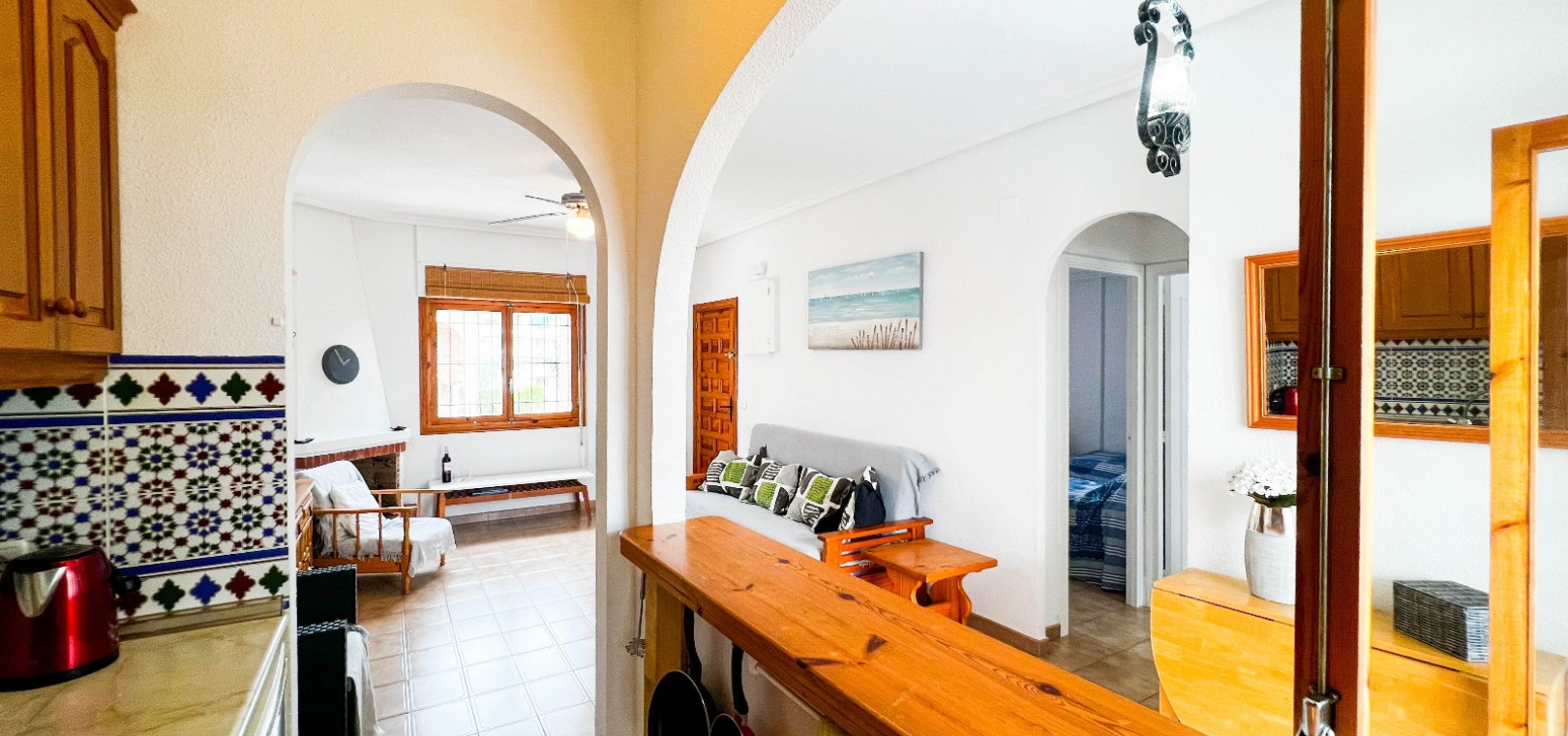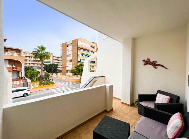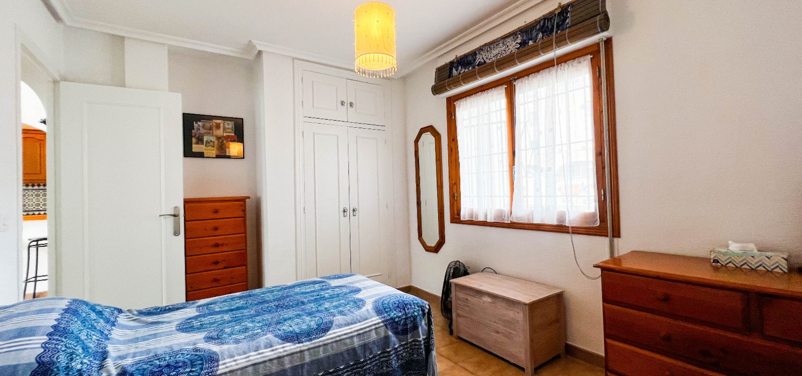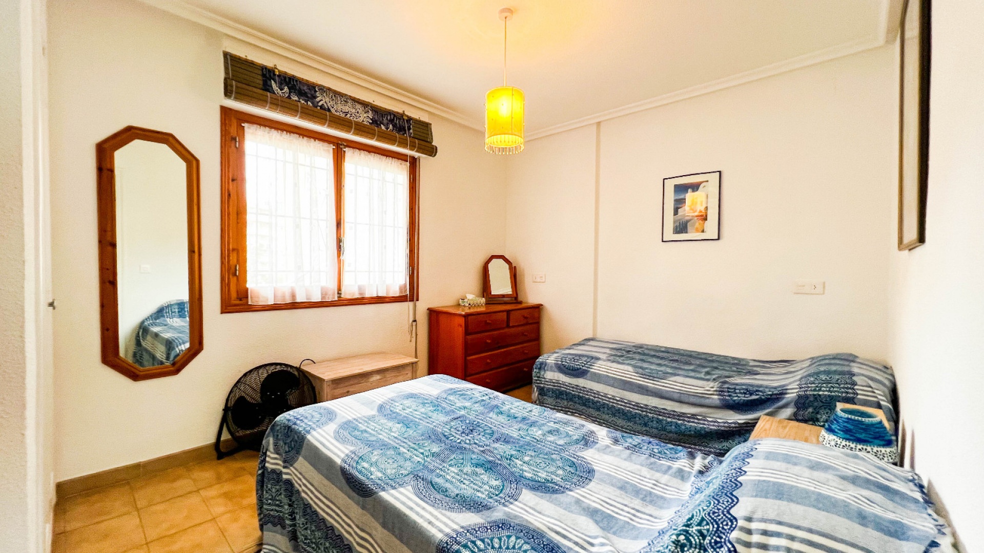 En lägenhet med 2 sovrum och 1 badrum på 1:a våningen bara 500 meter från havet i Punta Prima, Costa Blanca. Denna härliga lägenhet säljs i gott skick, fullt möblerad och består mycket kortfattat av följande: - Lounge / matsal med öppen spis, öppet kök, separat tvättstuga, 2 x dubbelrum med inbyggda garderober, 1 x nyligen utrustat duschrum, terrass på framsidan, trädgård på framsidan, uppvärmd gemensam pool och mycket mer. Denna fantastiska fastighet ligger mindre än 10 minuters promenad från Punta Marinas kommersiella centrum där du hittar många barer, butiker och restauranger och sedan är det bara 500 meter till stranden. Denna fastighet ligger 10 minuters bilresa från 4 mästerskapsgolfbanor och 45 minuter från Alicantes flygplats.
