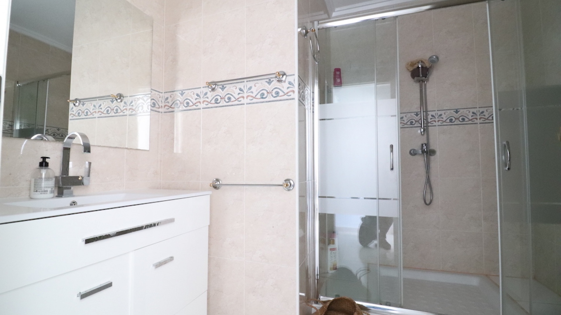På andra våningen finns 2 x dubbelrum båda med inbyggda garderober och varm och kall A/C, det största sovrummet har en privat balkong och 1 x duschrum.