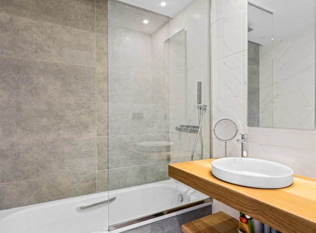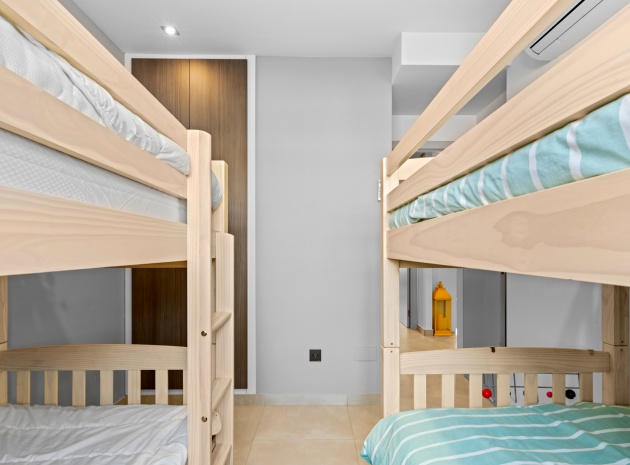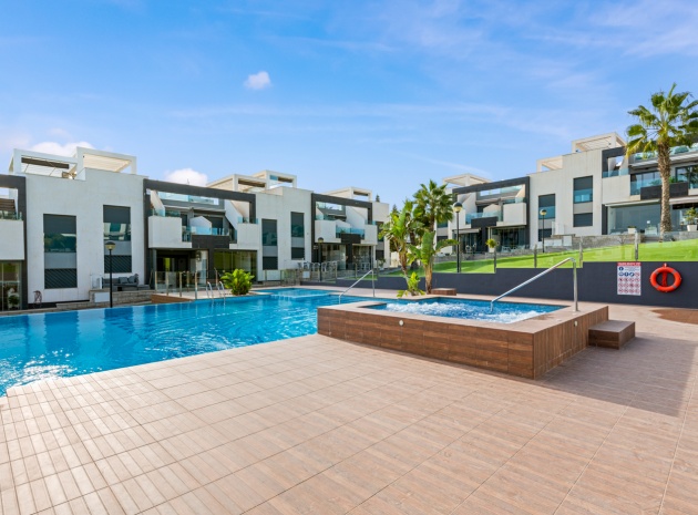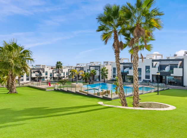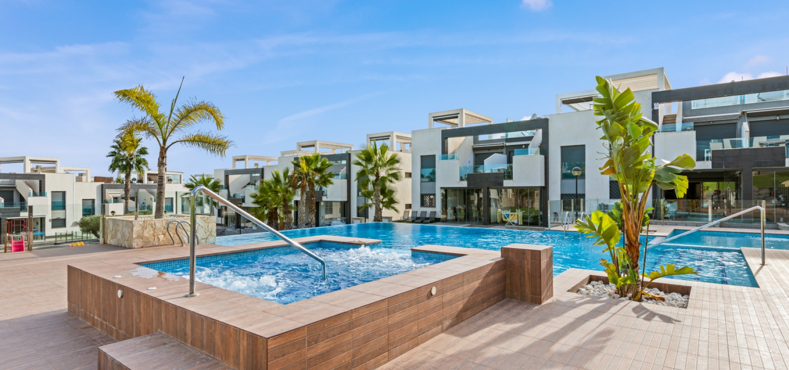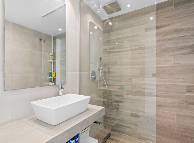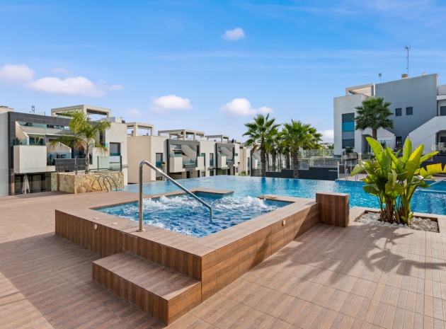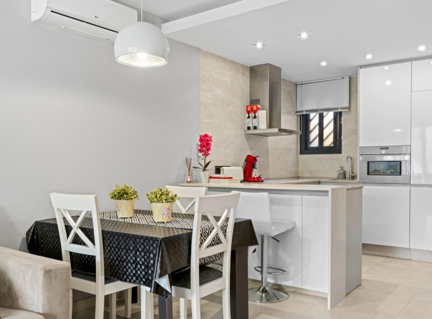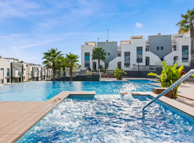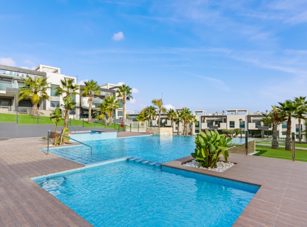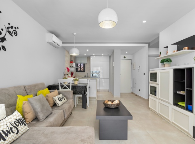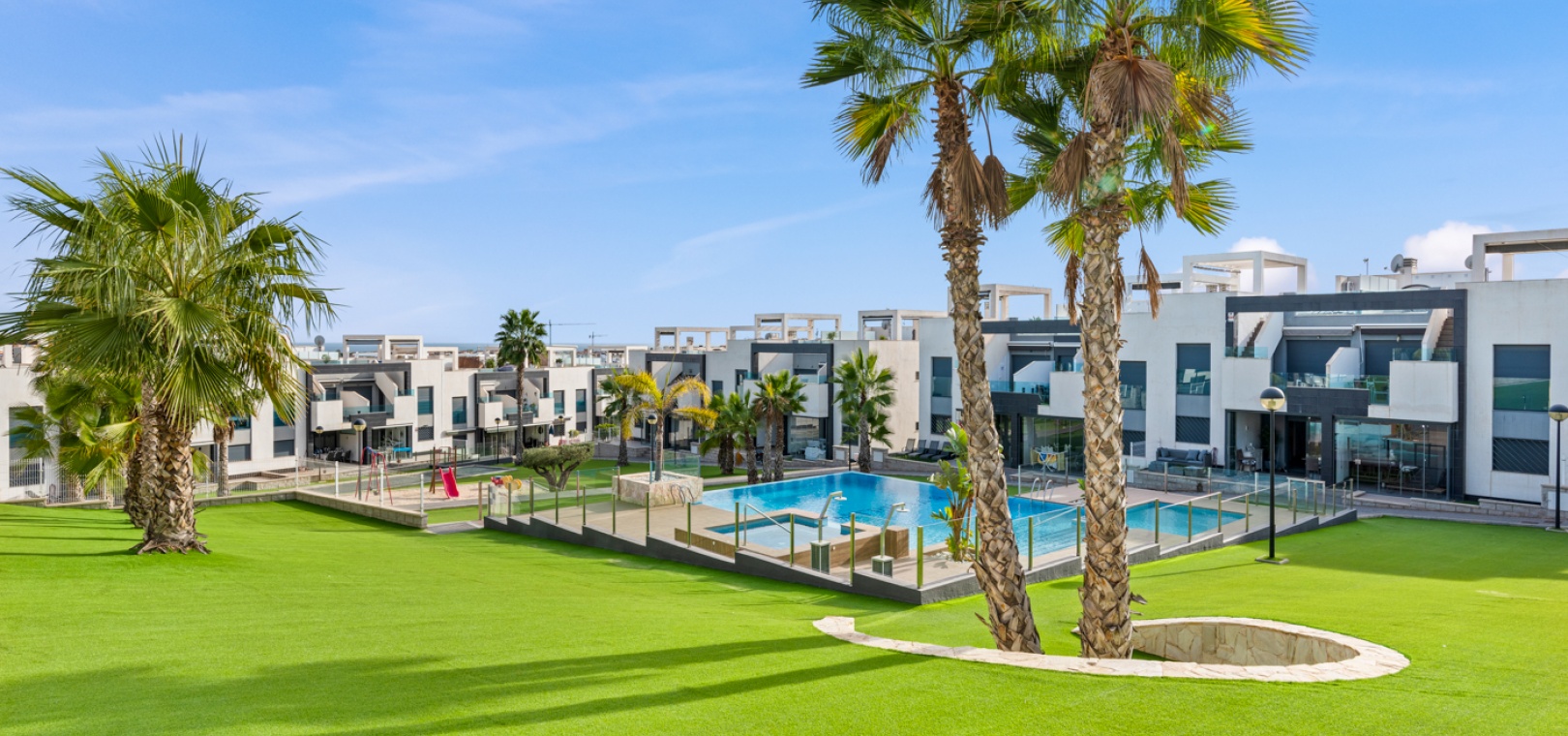 En lägenhet i söderläge med 2 sovrum och 2 badrum i modern stil på bottenvåningen i Res. Oasis Beach, Punta Prima, Costa Blanca.