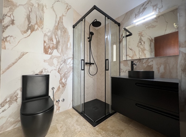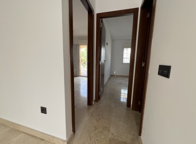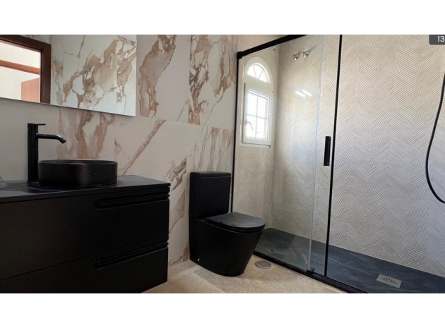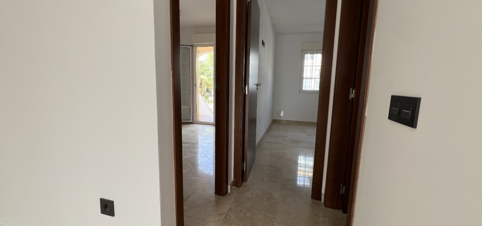 På bottenvåningen finns ett vardagsrum/matrum med varm och kall A/C, ett nyutrustat kök med öppen planlösning med en tvättstuga, 2 x dubbelrum båda med inbyggda garderober och varm och kall A/C, det stora sovrummet har dörrar ut till den bakre terrassen & bakre trädgården & 1 x nyligen utrustade duschrum.